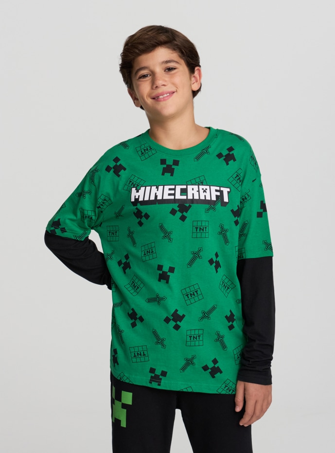 Langärmeliges Kinder-T-Shirt, ideal für einen lässigen und lustigen Look. Es verfügt über einen Minecraft-Aufdruck, perfekt für Fans des Spiels. Die bequeme Passform macht es geeignet für Freizeit und den Alltag. Es lässt sich leicht mit Jeans oder Sporthosen kombinieren für ein praktisches und modisches Outfit.