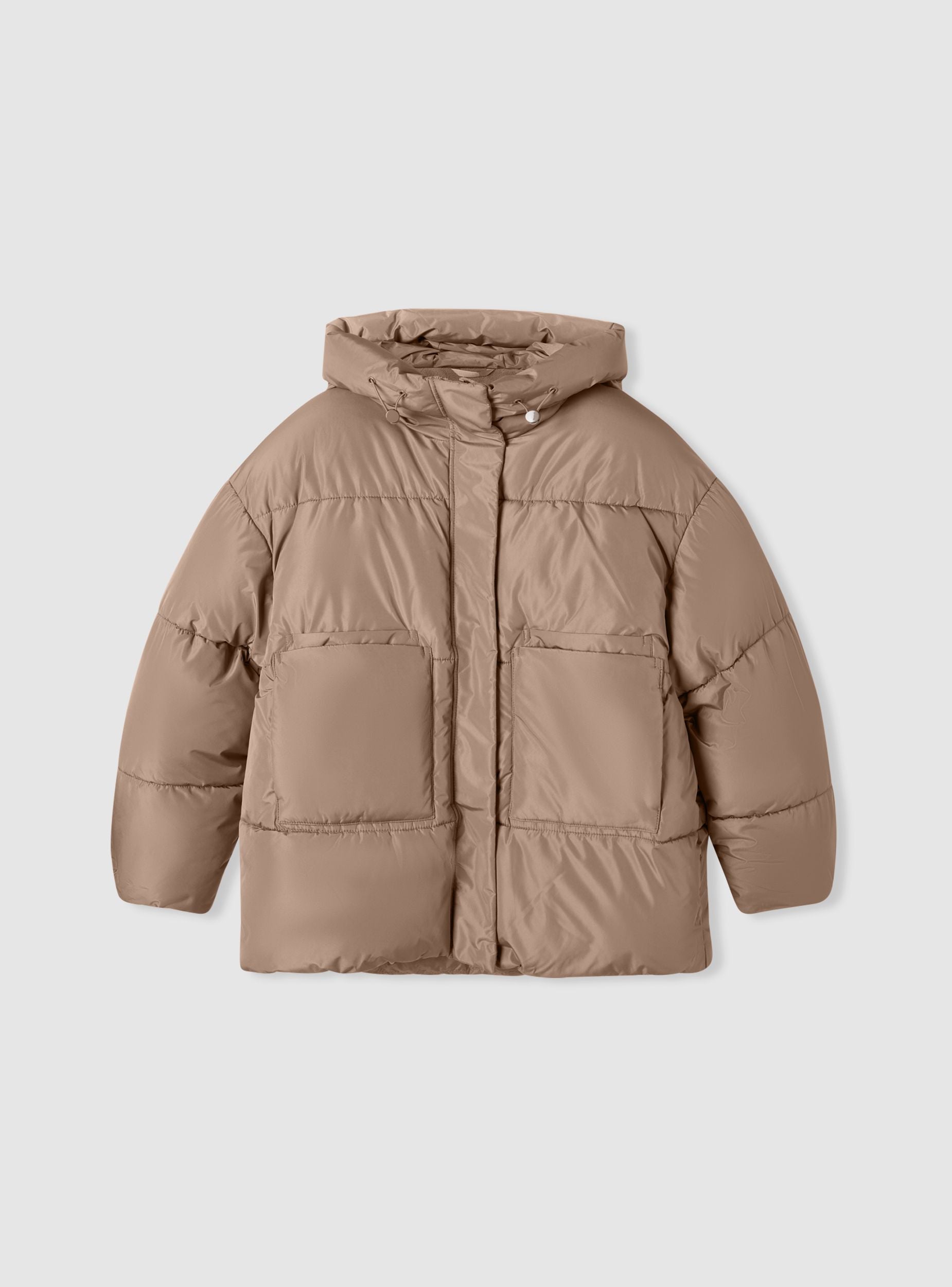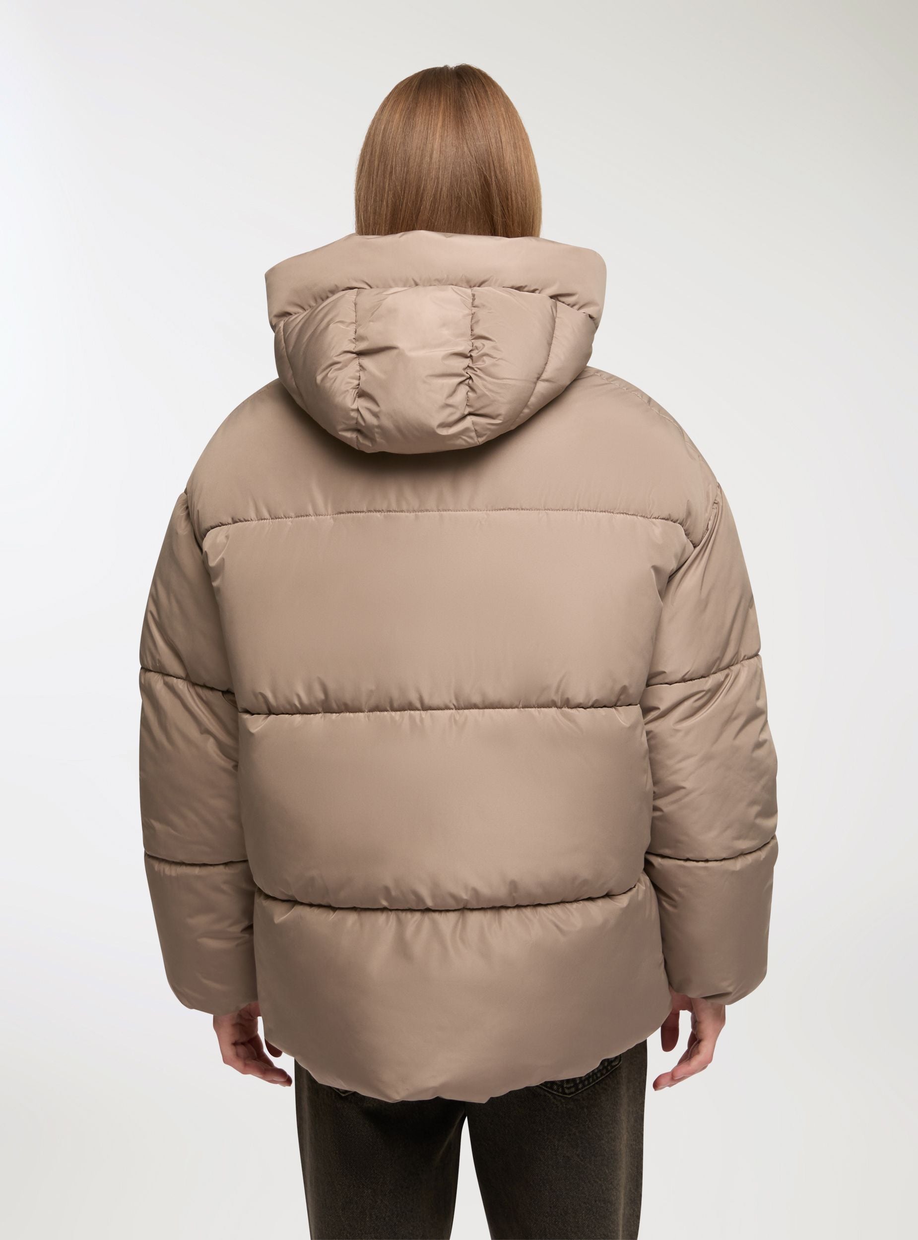 Дамско подплатено яке с качулка, идеално за студените дни със стил. Разполага с цип и тик-так копчета за затваряне, осигурявайки удобство и защита. Големите предни джобове добавят функционалност, а свободната кройка го прави перфектно за носене върху пуловери или суичъри. Модерен и универсален дизайн, подходящ за ежедневни и неформални визии.Детайли