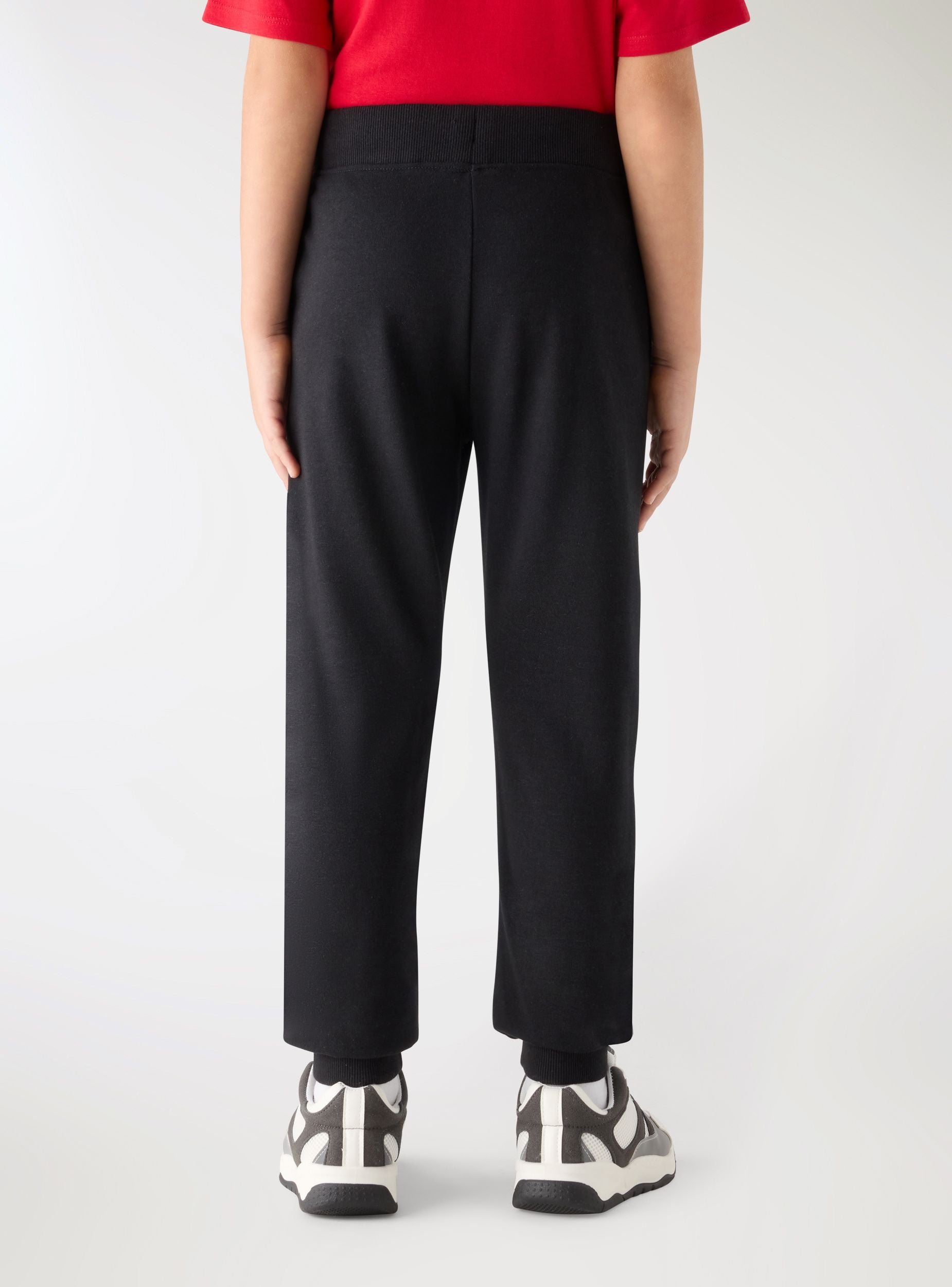 Детски спортен панталон в едноцветен дизайн с страничен принт. Дълъг модел с маншети на глезените и колан с връзки, идеален за училище и свободно време. Вложени странични джобове за удобство, редовно прилягане и прав крачол. Лесен за комбиниране с тениска и суичър за спортна и ежедневна визия. Лек плат.Детайли