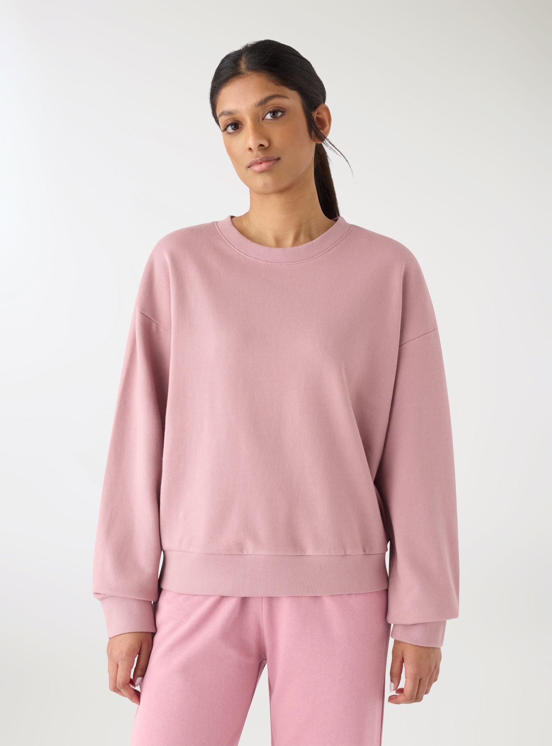 Дамска блуза без качулка и цип, едноцветна. Рипсен обиколник, дълги ръкави с еластични маншети и долна част с плетена лента за удобна прилягаща форма. Минималистичен дизайн, идеален за свободното време и за ежедневни визии с дънки или спортни панталони, също така перфектна под палто или яке. Леки плат.Детайли