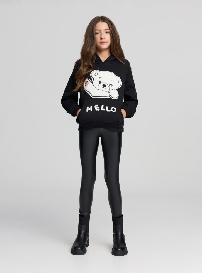 Детски клинове с дълъг дизайн и прилепнала кройка. Идеални за модерен и универсален вид, те се съчетават перфектно с широки тениски или суичъри. Високата талия осигурява комфорт и стил, а материалът от синтетична кожа придава лъскав и съвременен завършек. Перфектни за ежедневни поводи или за допълване на модерни тоалети.