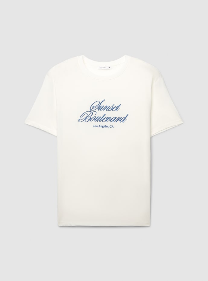 Дамска тениска с редовно прилягане и кръгло деколте, с бродиран надпис в колежански стил. Къси ръкави и универсален силует, перфектна за ежедневни визии с дънки, къси панталони или дънкова пола. Идеална за свободното време и за добавяне на градски акцент към ежедневните ти тоалети.
