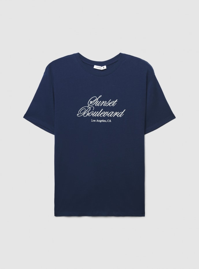 Дамска тениска с редовно прилягане и кръгло деколте, характеризираща се с бродиран надпис в колежански стил. Къси ръкави и универсална силуета, перфектна за ежедневни визии с дънки, къси панталони или дънкова пола. Идеална за свободното време и за добавяне на градски щрих към ежедневните ти тоалети.