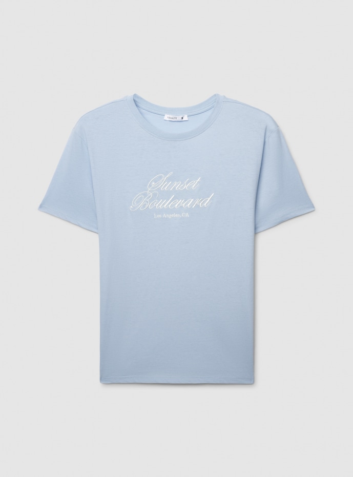 Дамска тениска с редовно прилягане и кръгло деколте, характеризираща се с бродиран надпис в колежански стил. Къси ръкави и универсална силуета, перфектна за ежедневни визии с дънки, къси панталони или дънкова пола. Идеална за свободното време и за добавяне на градски щрих към ежедневните ти тоалети.