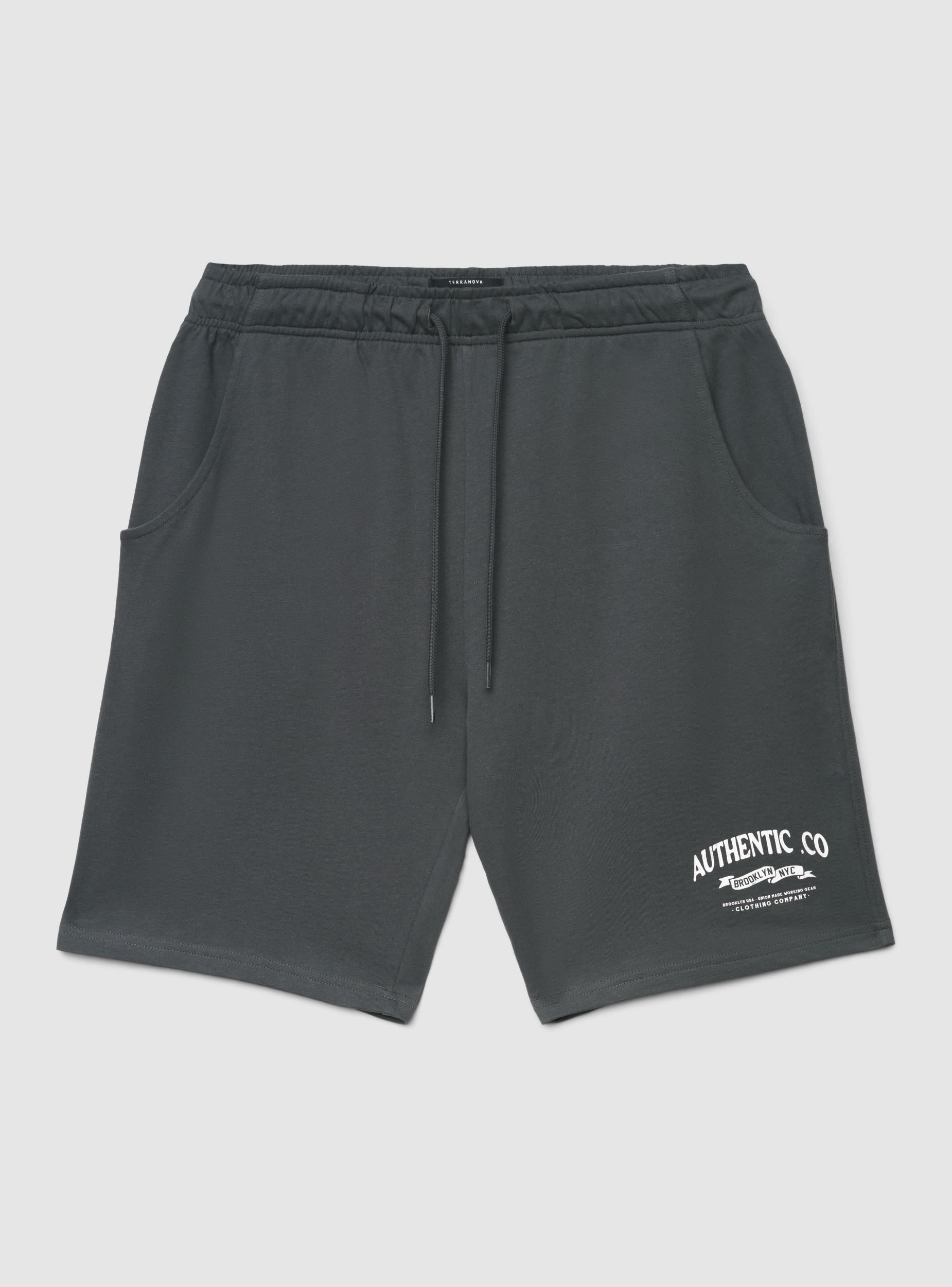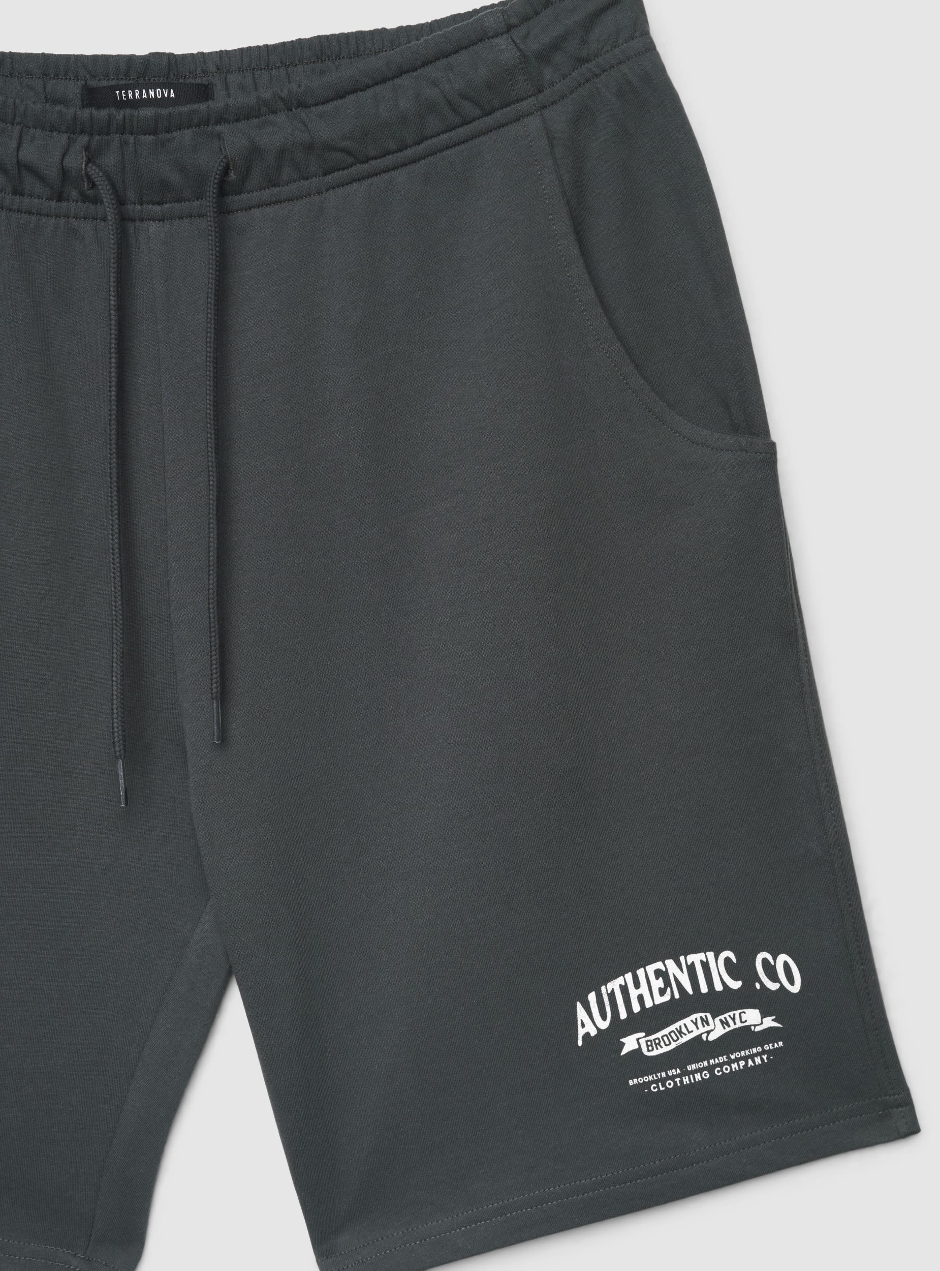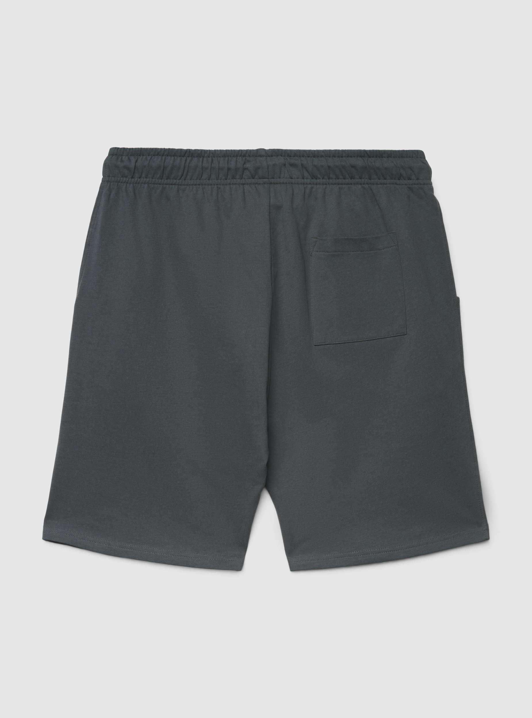 Muške jednobojne kratke hlače, dizajnirane za slobodno vrijeme i trening. Elastični pojas sa vezicom za praktično podešavanje, bočni džepovi i dodatni zadnji džep. Dužina iznad koljena i regularan kroj, idealne uz majice i patike. Grafički detalj sa natpisom na donjem dijelu nogavice koji dodaje urbani štih. Lagani materijal.Detalji