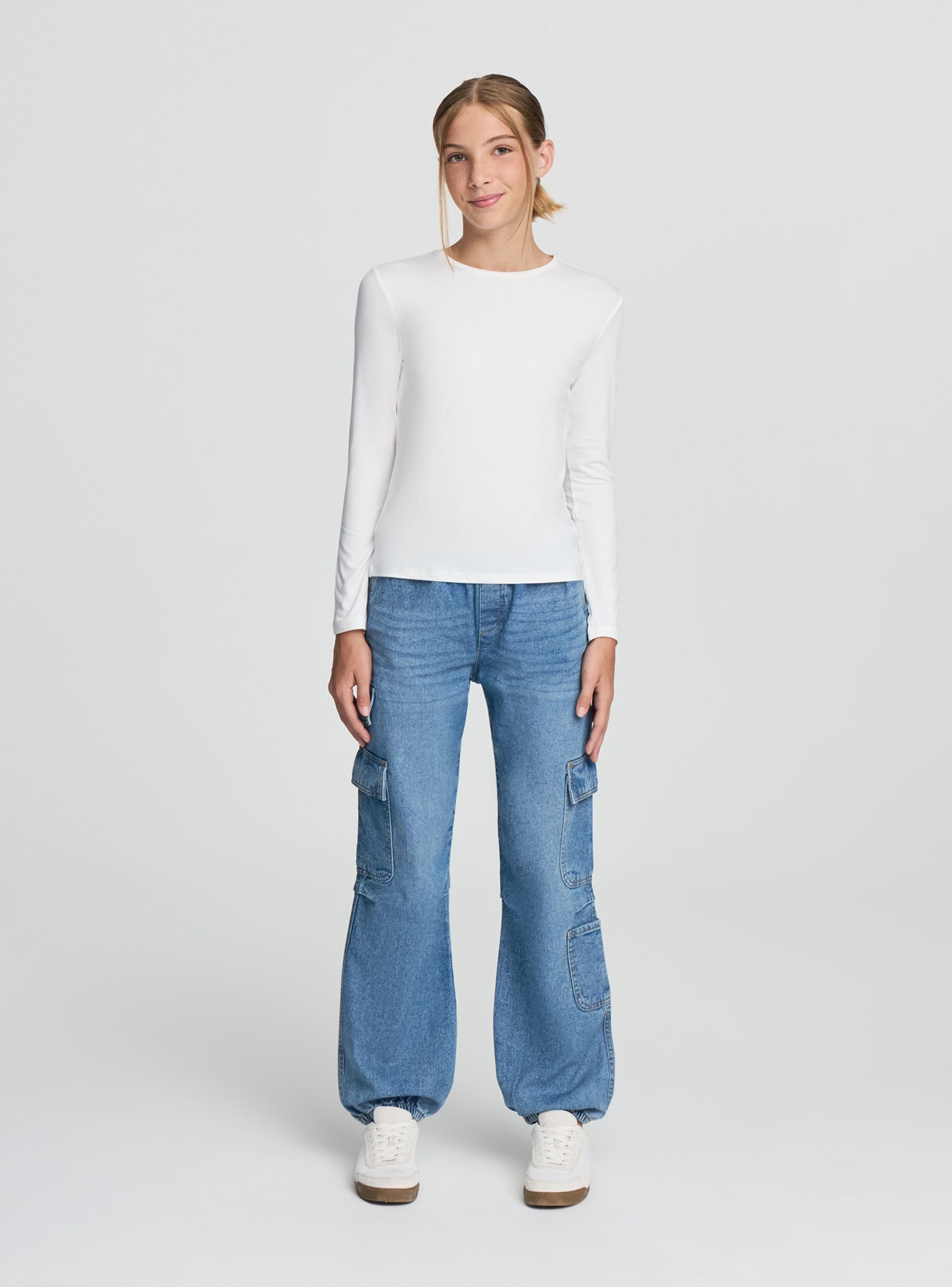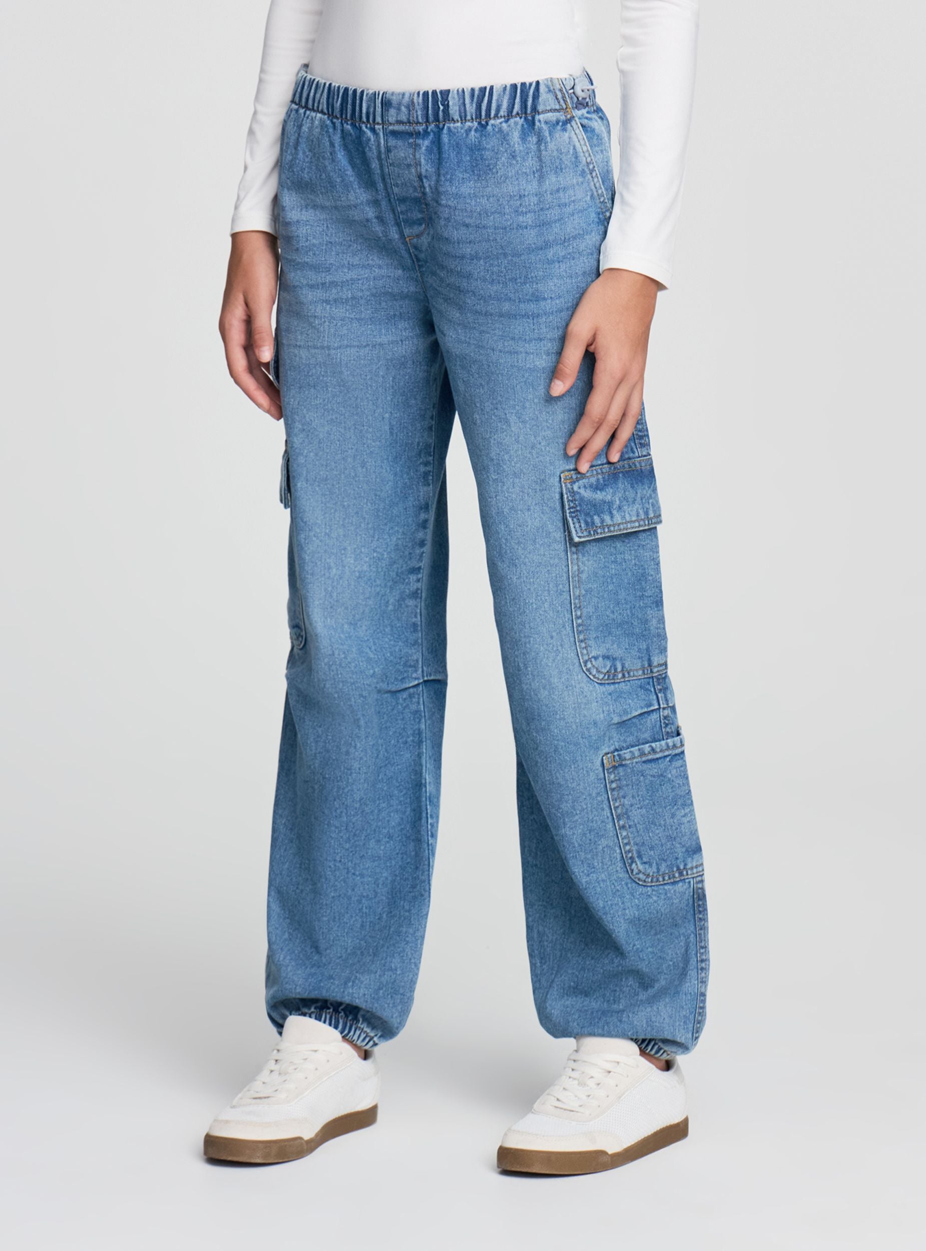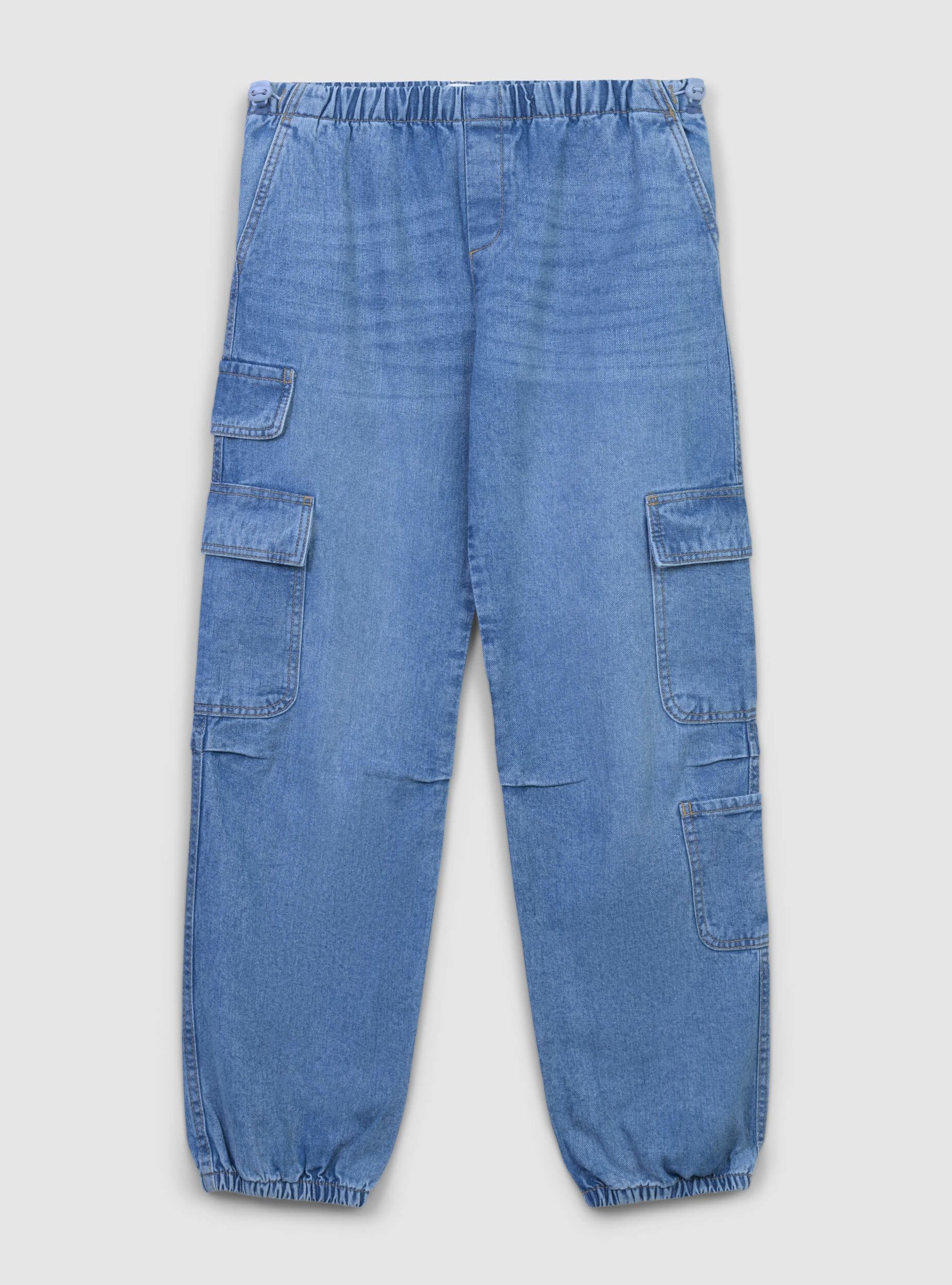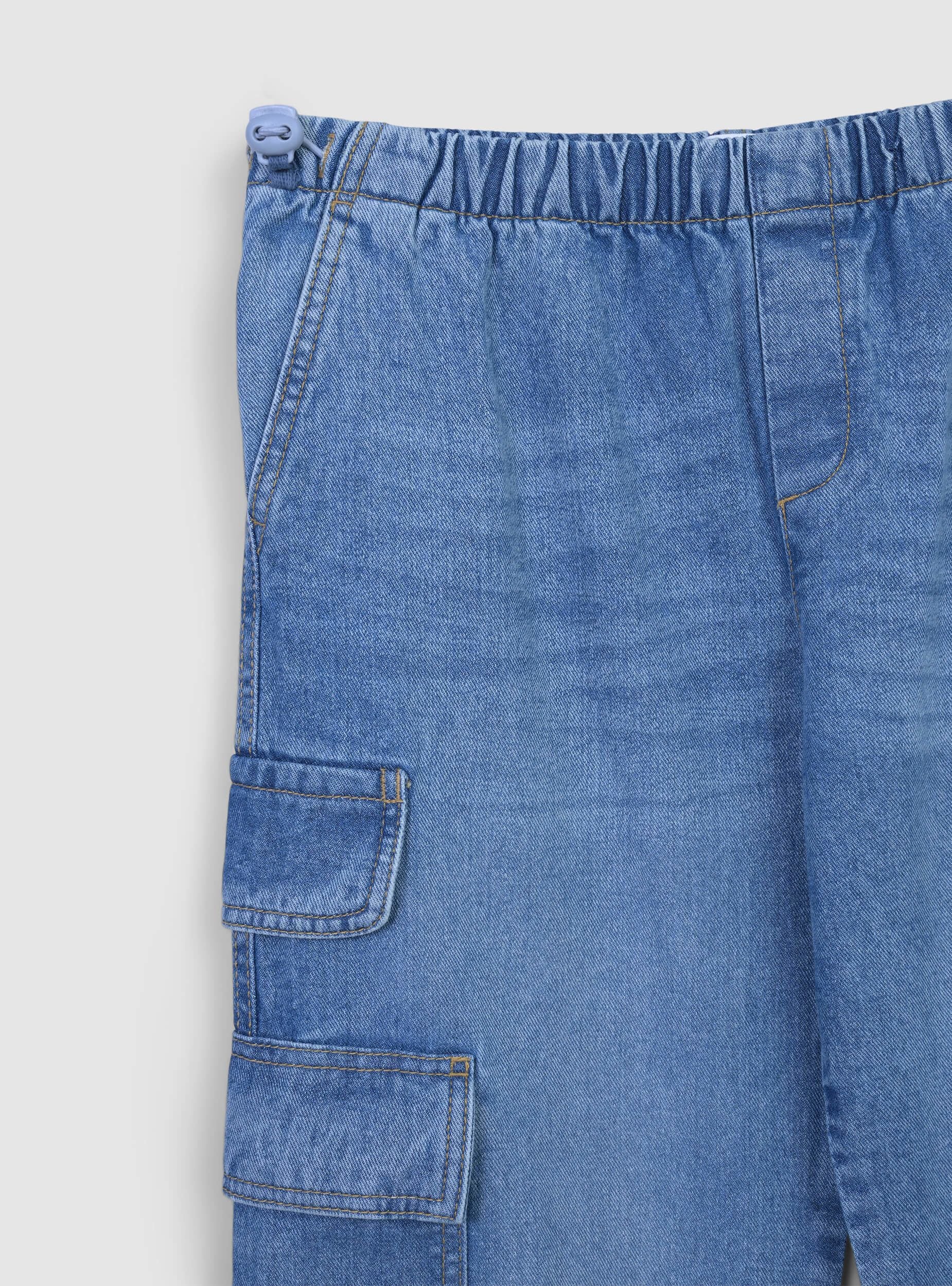 Dječje traperice širokog kroja, idealne za ležeran i svestran izgled. Imaju elastičan pojas za maksimalnu udobnost i aplikacijske cargo džepove sa strane koji dodaju praktičan i trendi dodir. Elastični donji dio nogavica naglašava siluetu i čini ih savršenima za kombiniranje s tenisicama ili duksericama za slobodno vrijeme.Detalji