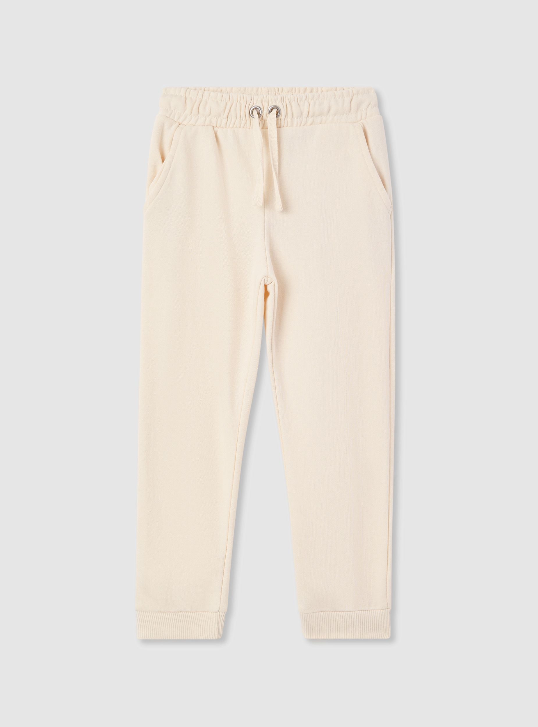 Lahke dječje trenirke hlače idealne za slobodno vrijeme i svakodnevne aktivnosti. Imaju regularan kroj i jednobojni dizajn, s elastičnim pojasom i podesivim vezicama za optimalnu udobnost. Opremljene su praktičnim bočnim džepovima i elastičnim manžetnama na gležnjevima, savršene za stvaranje ležernih i udobnih kombinacija.Detalji