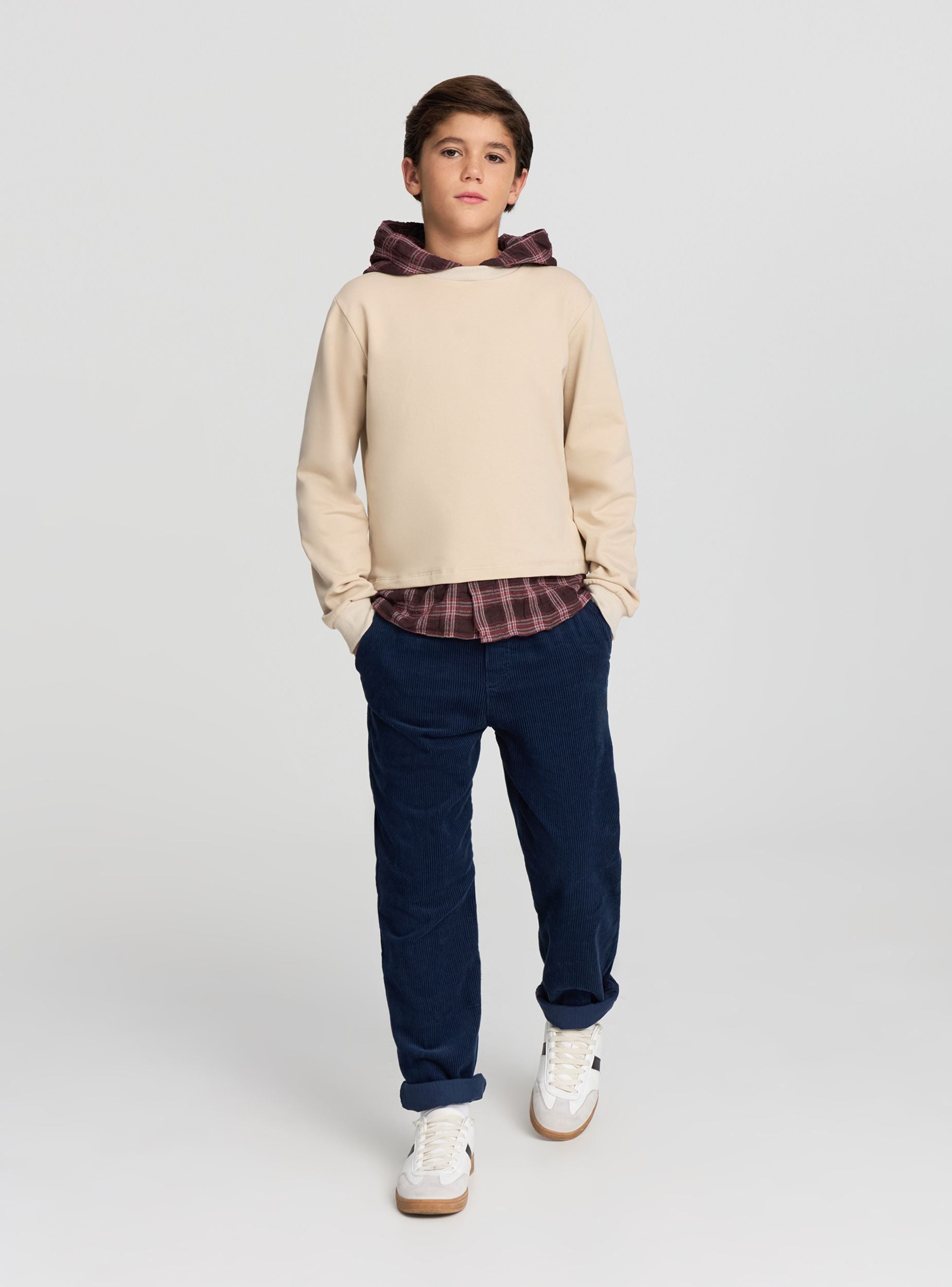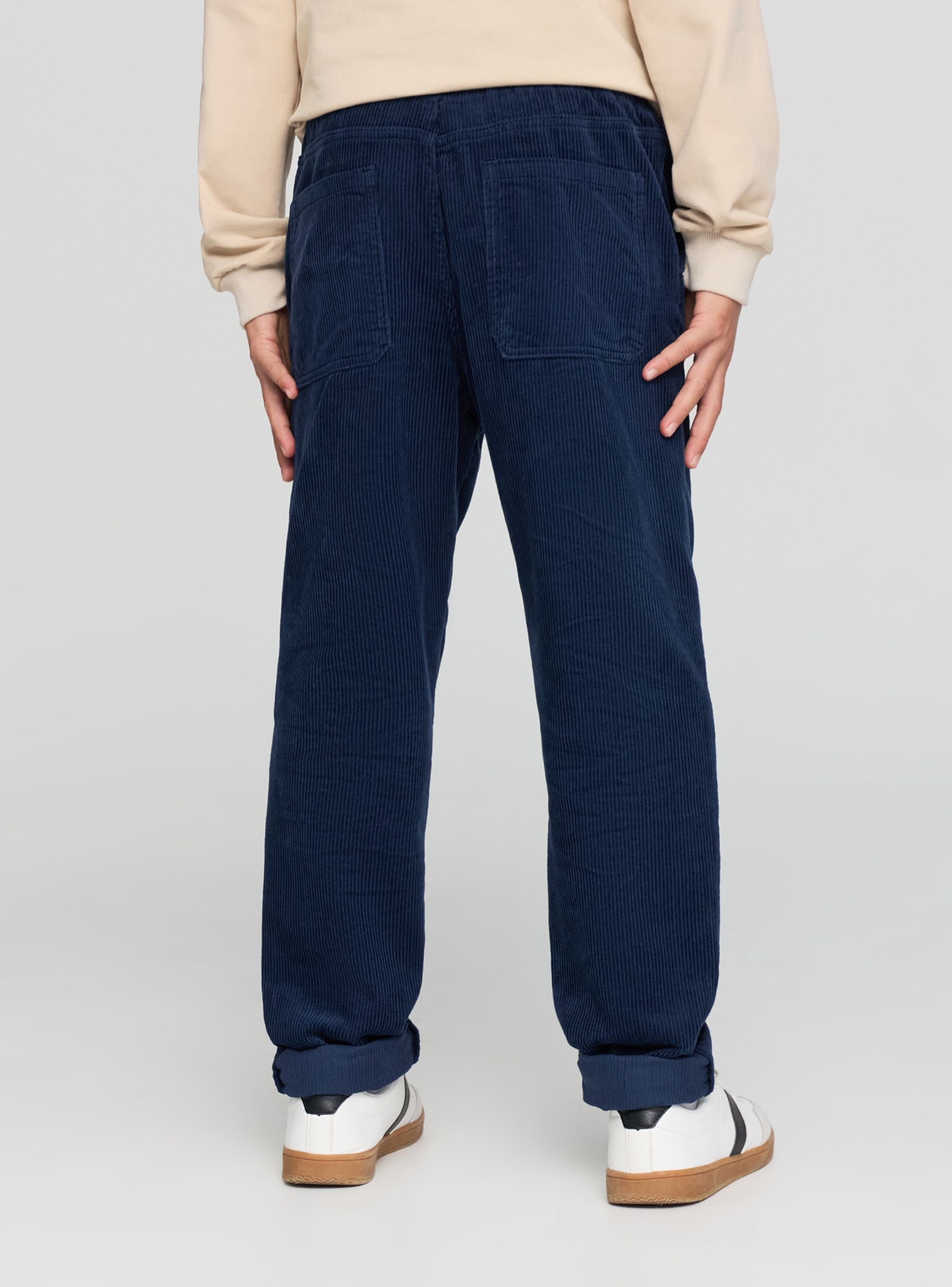 Dječije duge pantalone jednobojne, savršene za školu i slobodne aktivnosti. Elastični pojas sa vezicom za podesivu i udobnu prilagodbu. Prava nogavica sa obrubom koji se lako kombinuje sa duksevima i džemperima. Bočni džepovi na francuski način i dodatni džepovi pozadi za veću praktičnost. Idealne uz patike za urbani i svakodnevni izgled.Detalji