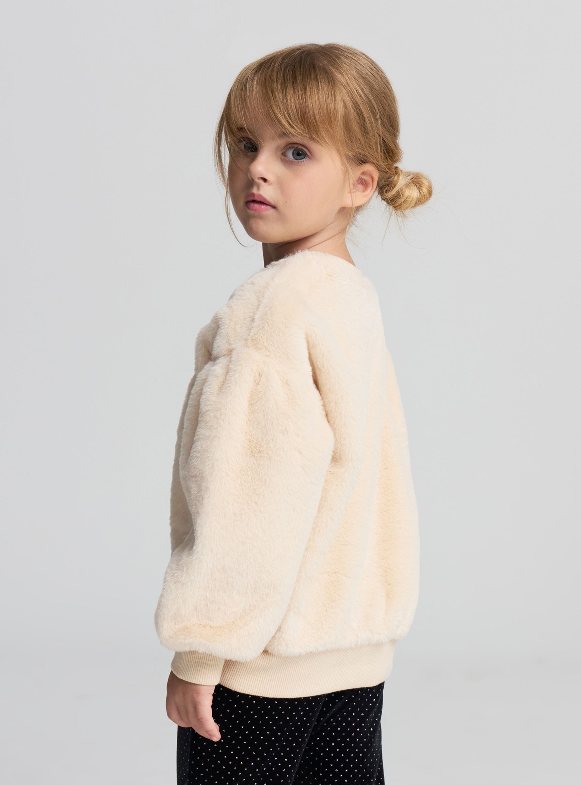 Dječija dukserica sa okruglim izrezom i dugim rukavima, u potpunosti sa mekanim i nježnim izgledom. Jednobojni dizajn je obogaćen aplikacijama od šljokica i dekorativnim natpisom sprijeda, za sjajni efekat koji osvjetljava svaki outfit. Donji dio i manžetne su rebrasti, što osigurava udobno pristajanje. Idealna za školu, slobodno vrijeme i kombinovanje sa farmerkama ili helankama.Detalji