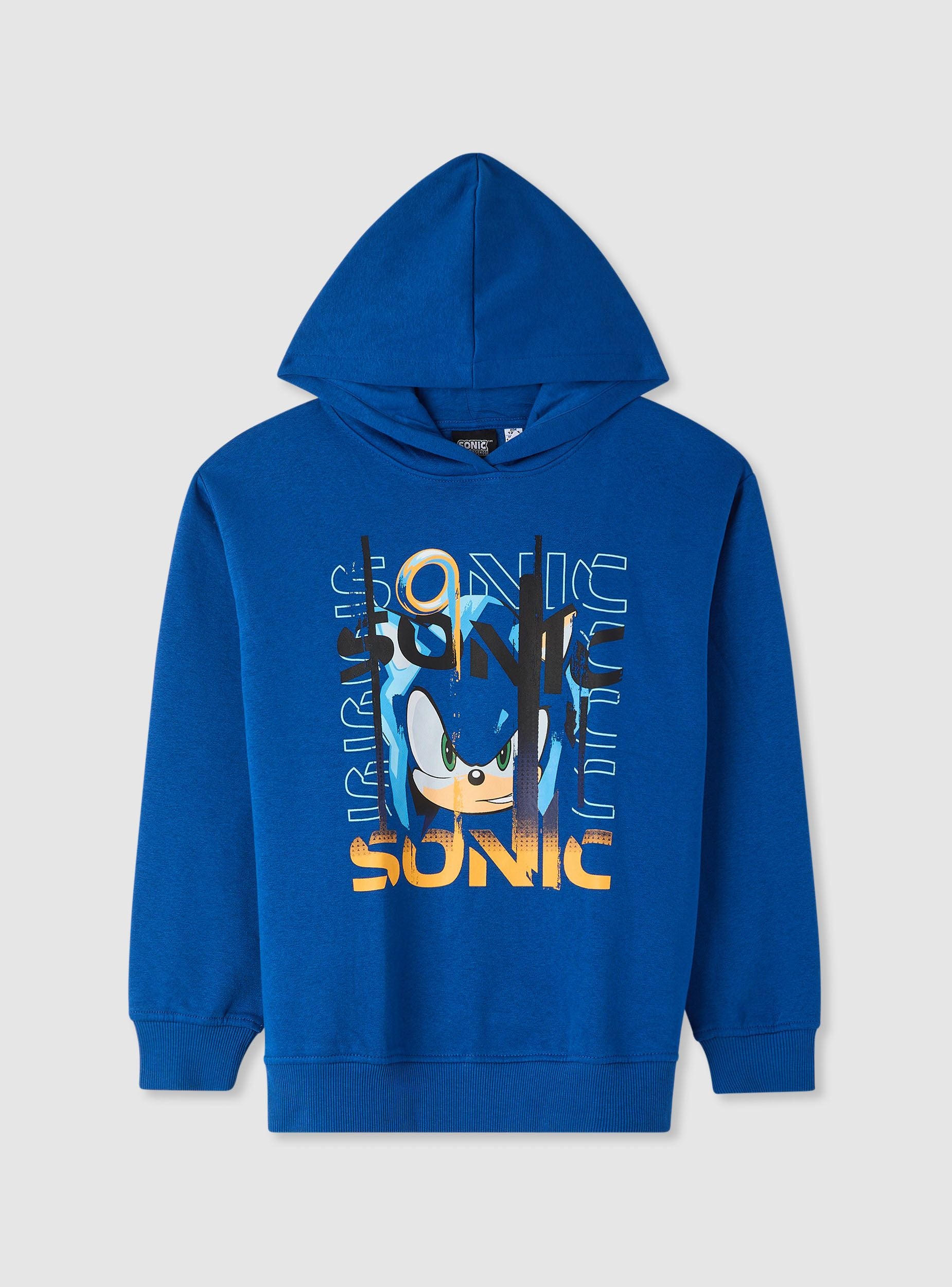 Dječija dukserica s kapuljačom, savršena za slobodno vrijeme i školu. Model bez rajsferšlusa s dugim rukavima i rebrastim manžetnama, regularnog kroja. Sprijeda se ističe print sa Sonic® likom, idealan za kombinovanje s farmerkama ili trenerkom za ležerni izgled.Detalji
