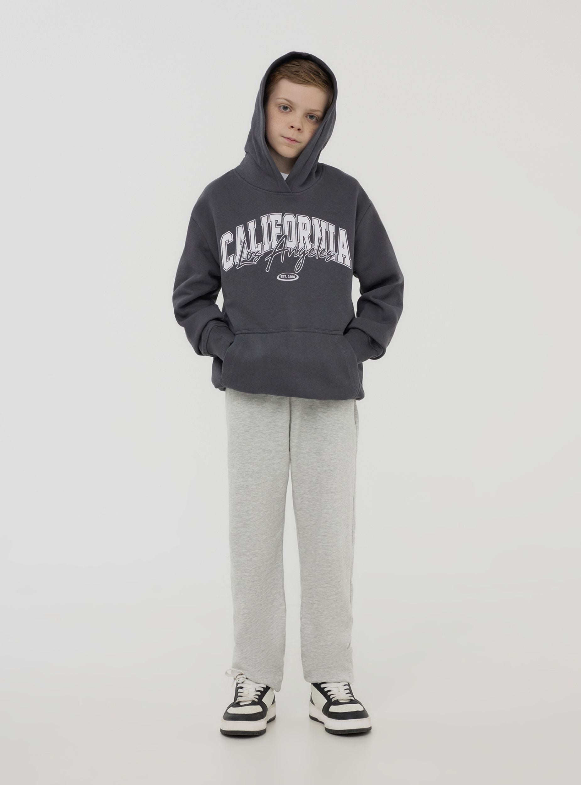 Teška dječja dukserica idealna je za stylish suočavanje s hladnijim danima. Model bez zatvarača s obavijenom kapuljačom i prednjim džepom nudi udobnost i praktičnost. Dekorativni natpis dodaje dozu stila, savršeno za dinamičan izgled. Lako se kombinira s trapericama ili jogger hlačama, savršena je za školu i slobodno vrijeme.Detalji