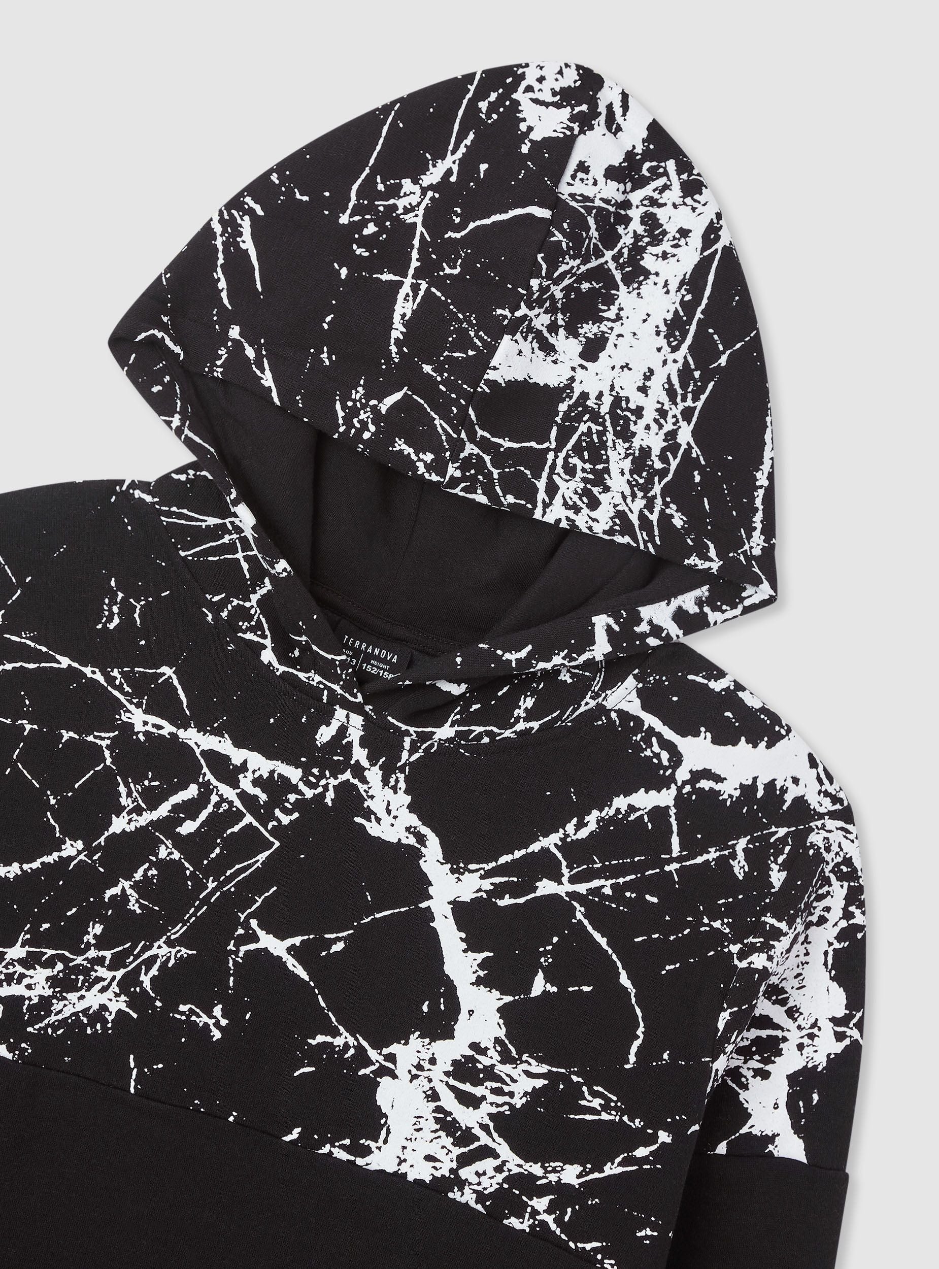 Teška dječija dukserica s kapuljačom, bez rajsferšlusa, idealna za ležeran i moderan izgled. Ima upečatljiv grafički print koji dodaje jedinstven stil. Opremljena je kengur džepom za veću praktičnost i udobnost. Savršena za slobodno vrijeme ili za upotpunjavanje sportskih outfita. Udoban kroj i svestran dizajn, pogodan za različite prilike.Detalji