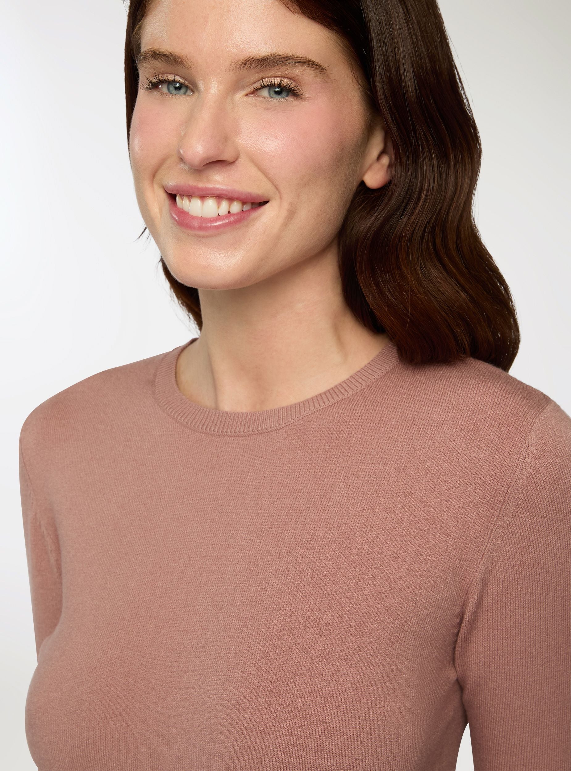Ženska osnovna majica dugih rukava s okruglim izrezom i rebrastim detaljima. Ova majica je esencijalni i bezvremenski komad, osmišljen da se prilagodi svakoj sezoni i prigodi. Minimalistički dizajn s okruglim izrezom i dugim rukavima čini je savršenom za nošenje samostalno ili kao sloj ispod jakni, kardigana ili sakoa. Rebrasti detalji na ovratniku, donjem rubu i manžetama dodaju pažljivo i diskretno obilježje koje ističe jednostavnost modela. Mekana, svestrana i udobnog kroja, to je osnovna majica koju uvijek treba imati pri ruci u svakodnevnom ormaru, savršena za stvaranje ležernih ili elegantnijih outfita s iznimnom lakoćom.Detalji