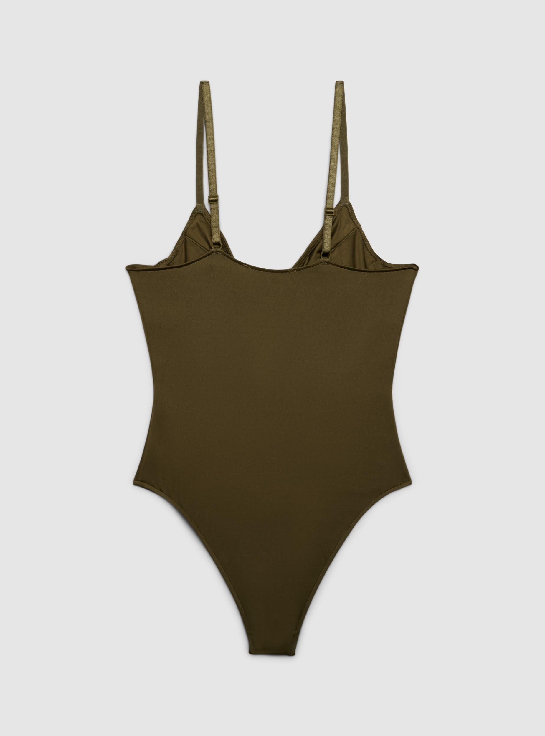 Ženski bodi u jednobojnoj varijanti sa oblikovanim košaricama i žicama za definisanu podršku. Tanke podesive naramenice. Praktično donje zatvaranje, tijesno pristajanje koje prati obline. Savršen ispod blejzera i farmerki za večernji izgled, ili sa palazzo pantalonama za elegantne prilike.Detalji