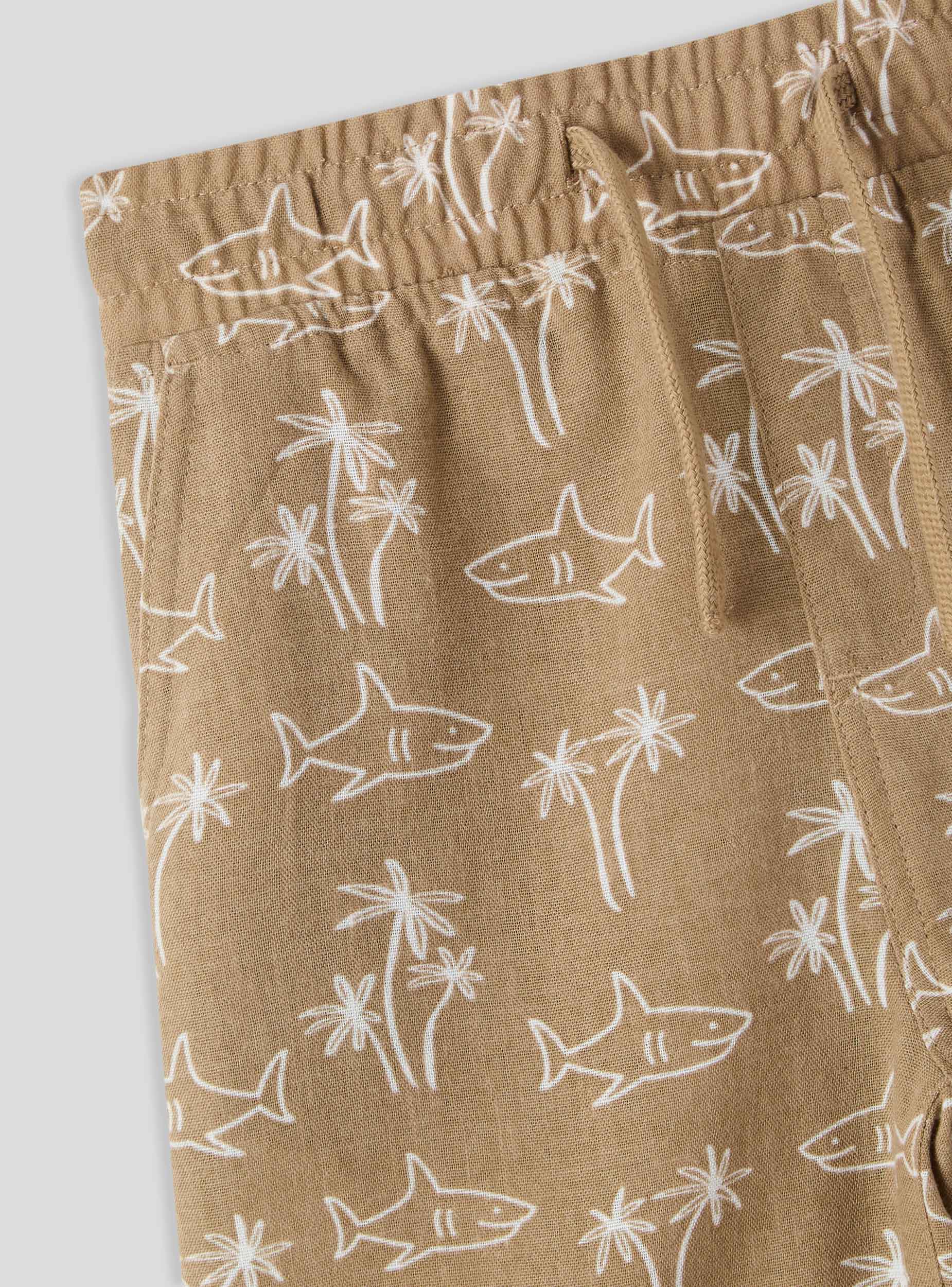 Kratke i lagane dječje trenirke, savršene za ljetne dane zahvaljujući lanenom efektu koji pruža svježinu i udobnost. Regulirajuća vezica u struku osigurava optimalno pristajanje, dok uzorak s morskim psima dodaje zabavan i dinamičan dodir. Opremljene praktičnim džepovima, idealne su za slobodno vrijeme i avanture na otvorenom. Savršeno se kombiniraju s majicom i sandalama za opušteni izgled, ili s laganom duksericom i tenisicama za sportskiji outfit.Detalji