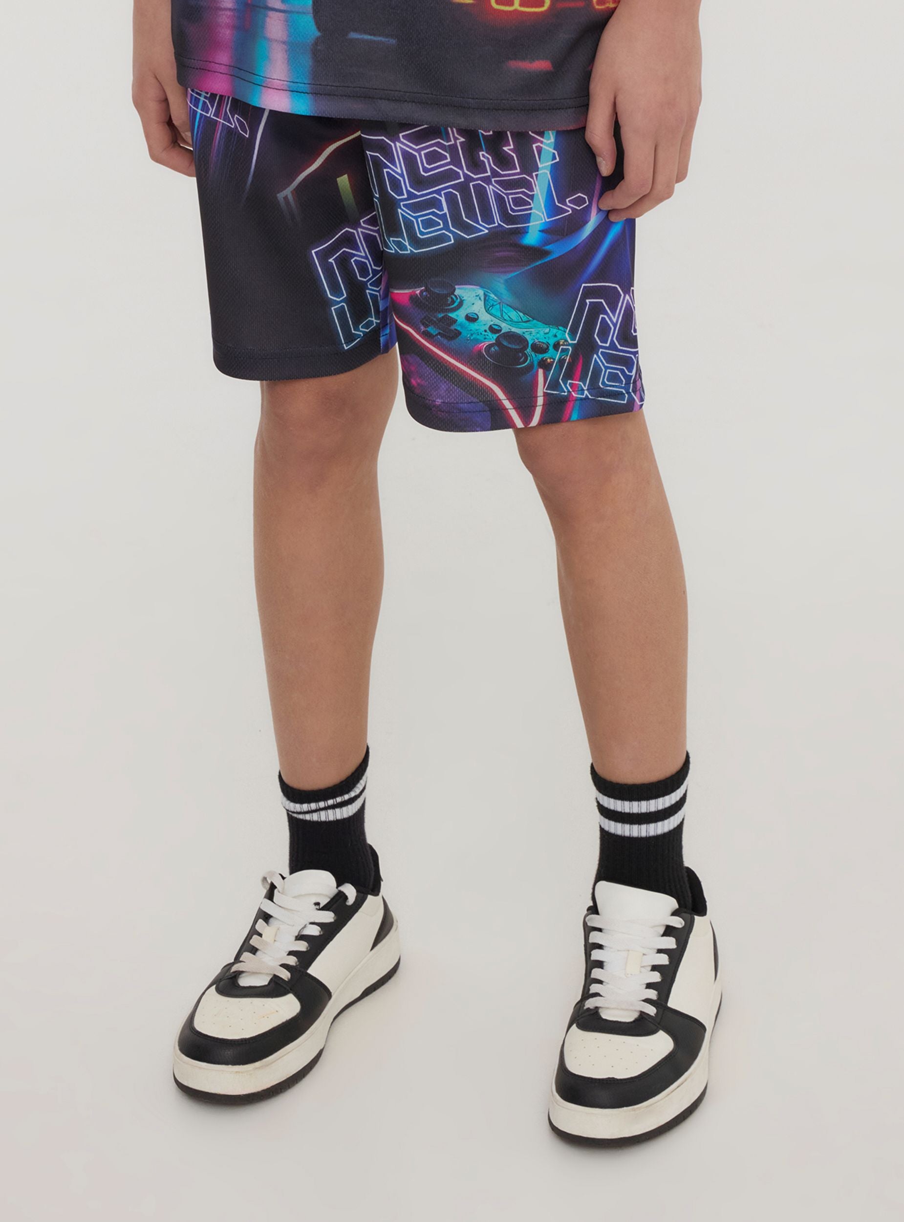 Dječji sportski kratki hlače idealni za dinamične i sportske aktivnosti. Imaju regularnu fit i privlačan dizajn s printom inspiriranim svijetom igara. Savršeni za slobodno vrijeme ili za ležeran i moderan izgled, nude udobnost i stil u svakoj prilici.Detalji