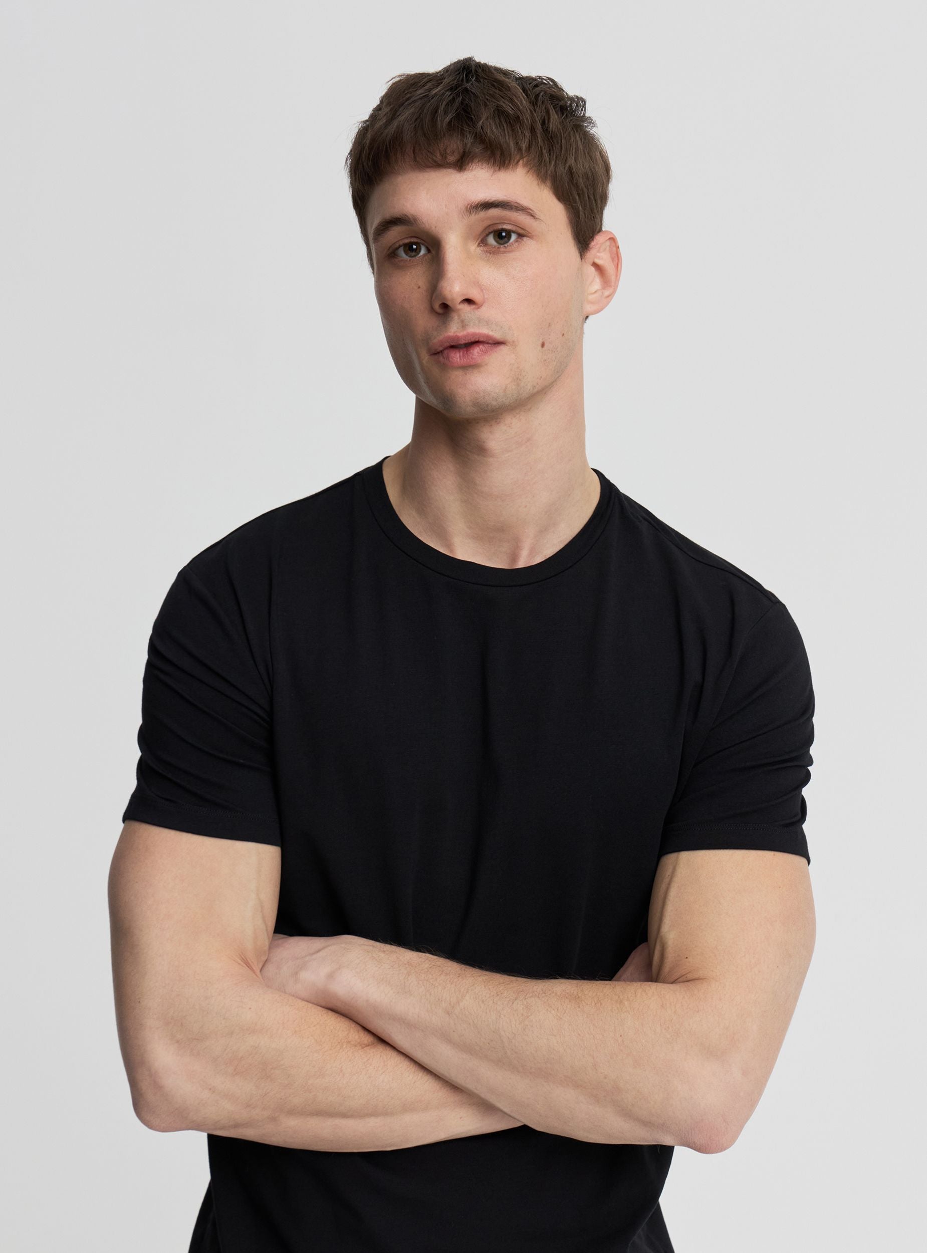 Pakovanje se sastoji od 2 muške jednobojne majice, idealne kao donje rublje ili za svakodnevno nošenje. Jednostavan kroj sa okruglim izrezom i kratkim rukavima, bez džepova i zatvarača. Regularan kroj i rastezljiva završna obrada koja prati pokrete, savršene ispod košulja i dukseva ili uz farmerke i chino pantalone.Detalji