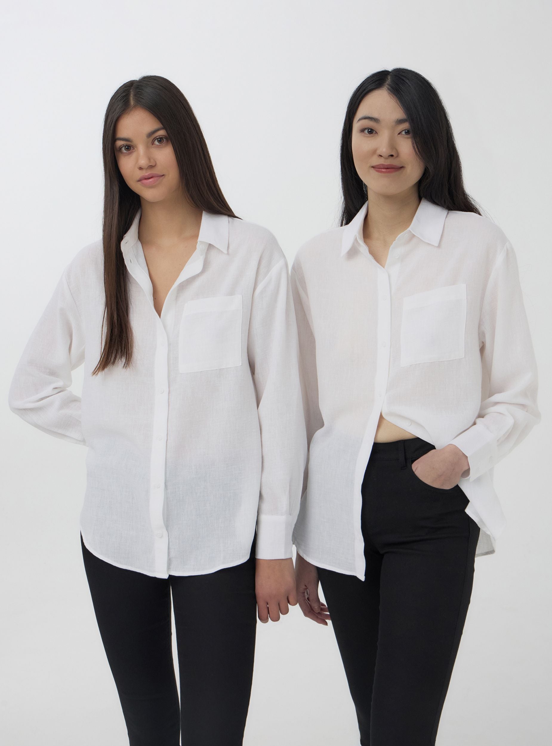 Pakiranje se sastoji od 2 ženske košulje, savršene za ured ili sofisticirani ležerni izgled. Karakterizirane su jednobojnim dizajnom, imaju duge rukave s dugmadima na manžetama, elegantan efekt lana i praktično zatvaranje na gumbe. Struktuirani ovratnik i prednja džep dodaju funkcionalnu i svestranu detalj, idealno za kombiniranje s trapericama ili formalnim hlačama.Detalji
