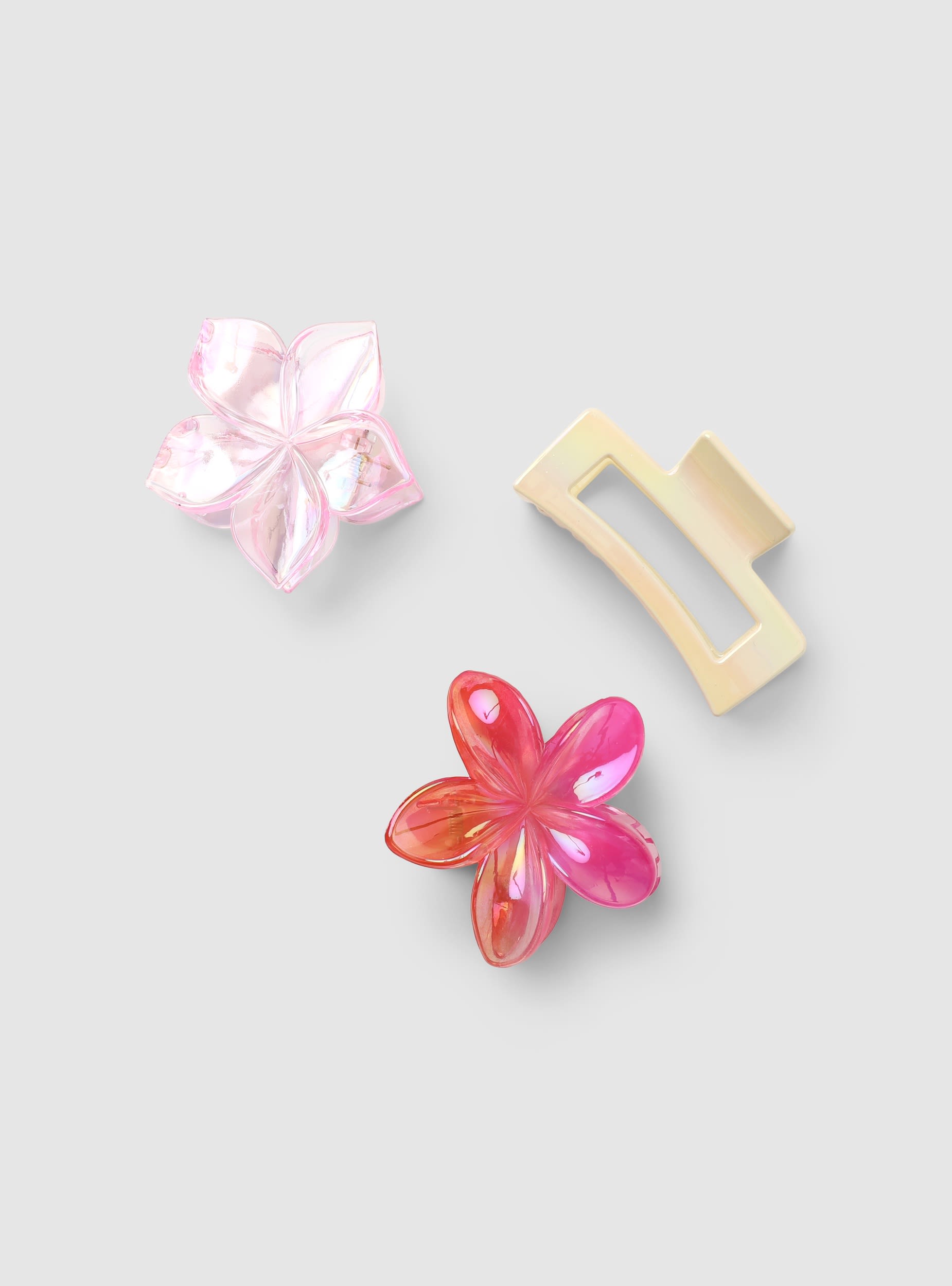 Ženski modni dodaci za stilizovanje kose, pakovanje od tri šnale sa printom i jednobojnim dezenom. Svaka šnala ima oprugu i zube koji osiguravaju čvrst stisak, idealno za brze punđe ili polupodignutu kosu. Zabavni oblici poput cvijeta, leptira ili voća dodaju trendi notu svakodnevnim i ležernim prilikama. Lako se kombinuju sa majicom i farmerkama ili sa ženstvenijim outfitima.Detalji