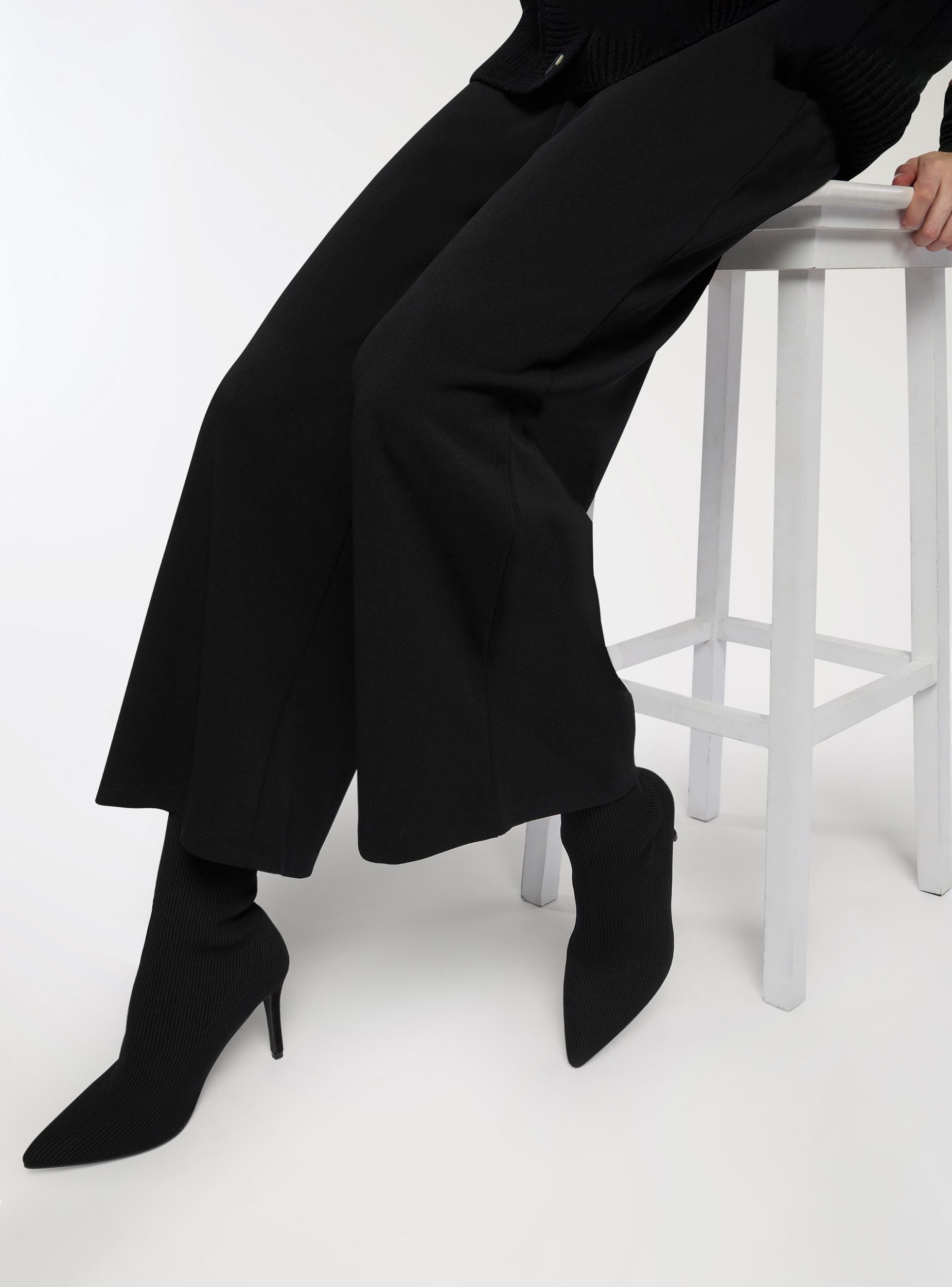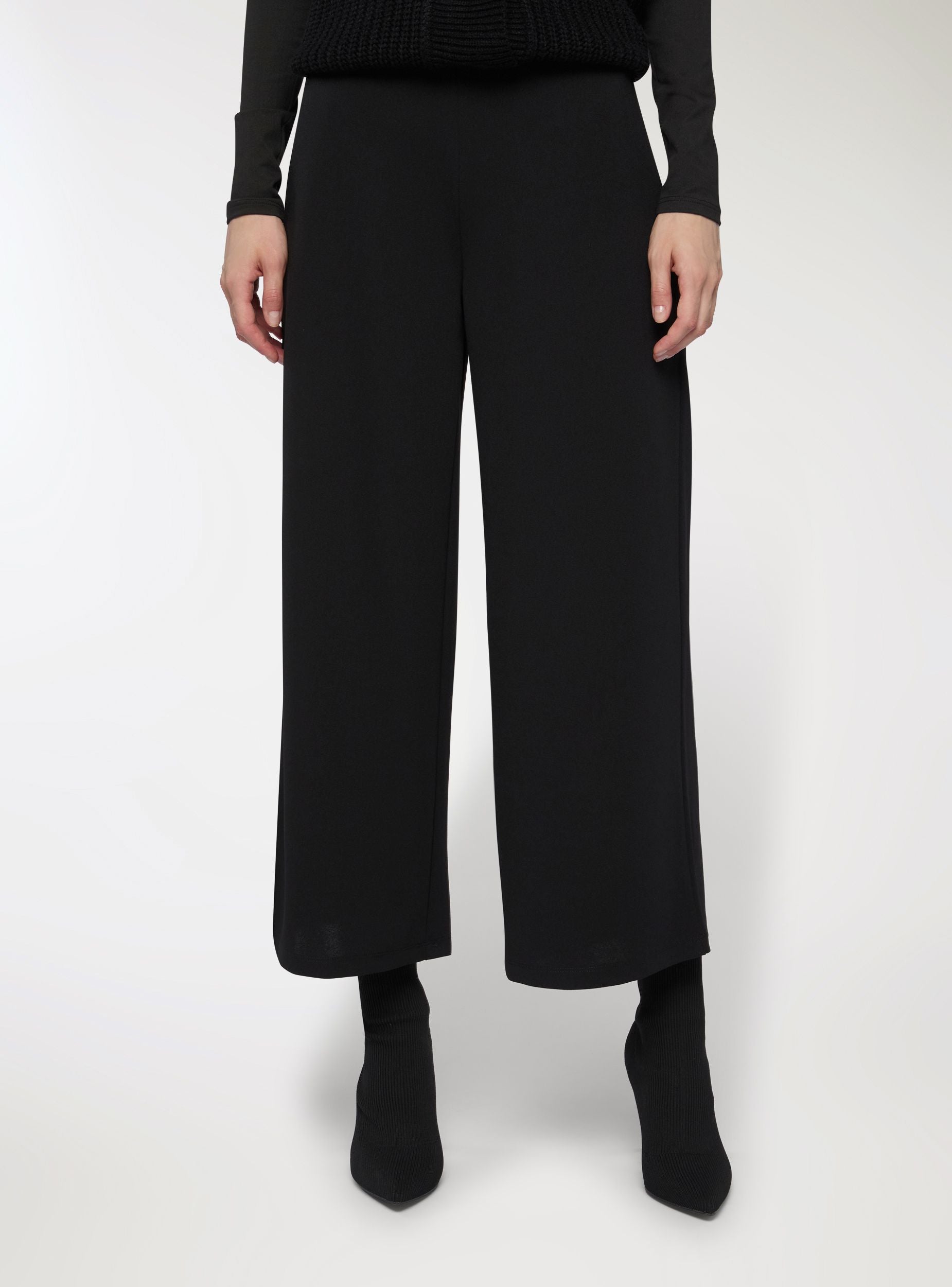 Ženske culotte hlače širokih nogavica, idealne za elegantan i moderan izgled. Savršene za formalne prilike ili poslovni outfit, lako se kombiniraju s košuljama i bluzama. Širok kroj osigurava udobnost i stil, dok minimalistički dizajn čini ove hlače svestranim za različite kombinacije. Neophodan komad za suvremeni ormar.Detalji