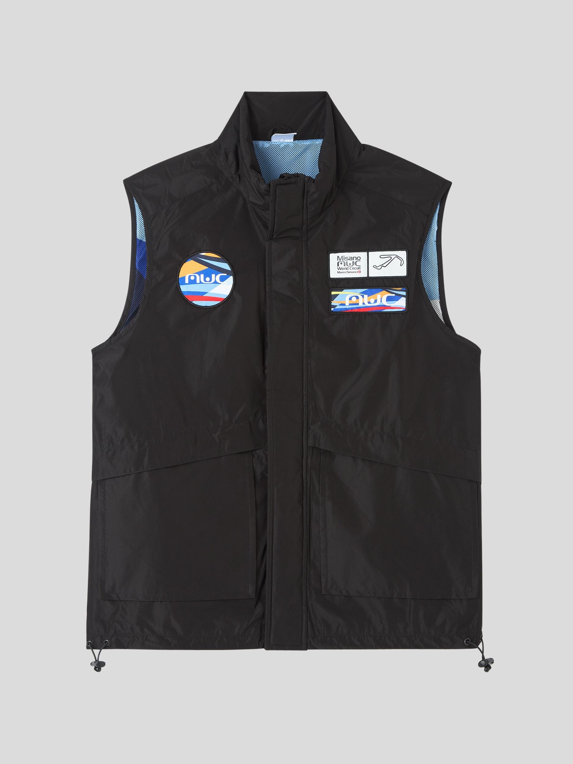 Muški prsluk. Tkanina u jednobojnoj boji s logom Misano World Circuit sprijeda i straga. Model s zatvaranjem na patentni zatvarač, prednjim džepovima i stražnjim džepom s patentnim zatvaračem. Regular fit.Detalji