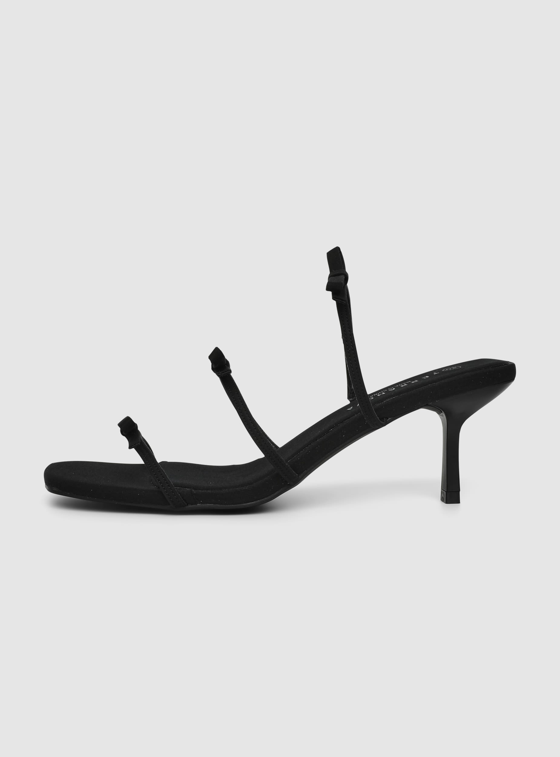 Ženske sandale sa niskom štiklom u stiletto stilu i kvadratnim vrhom, karakterizirane tankim trakama koje se skladno omotavaju oko stopala i gležnja, ukrašene nježnim dekorativnim mašnama. Zadnje zatvaranje sa vezicama koje se vežu u mašnu daje romantičan i ženstven dodir cjelokupnom izgledu. Jednobojne za bezvremensku svestranost. Savršene za sofisticirane ljetne kombinacije, uparene sa mini haljinama, suknjama širokog kroja ili palazzo pantalonama za posebne prilike i elegantne večeri.Detalji