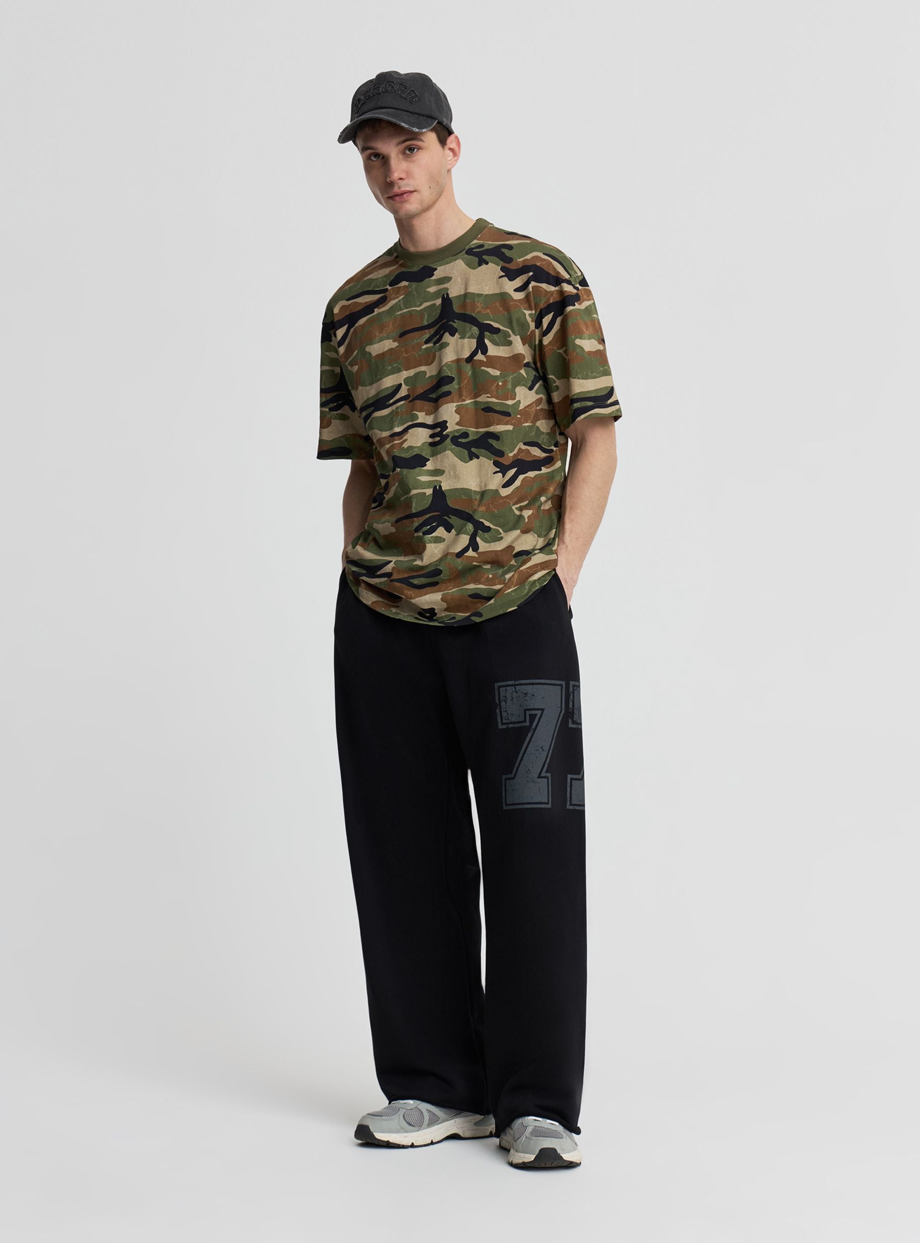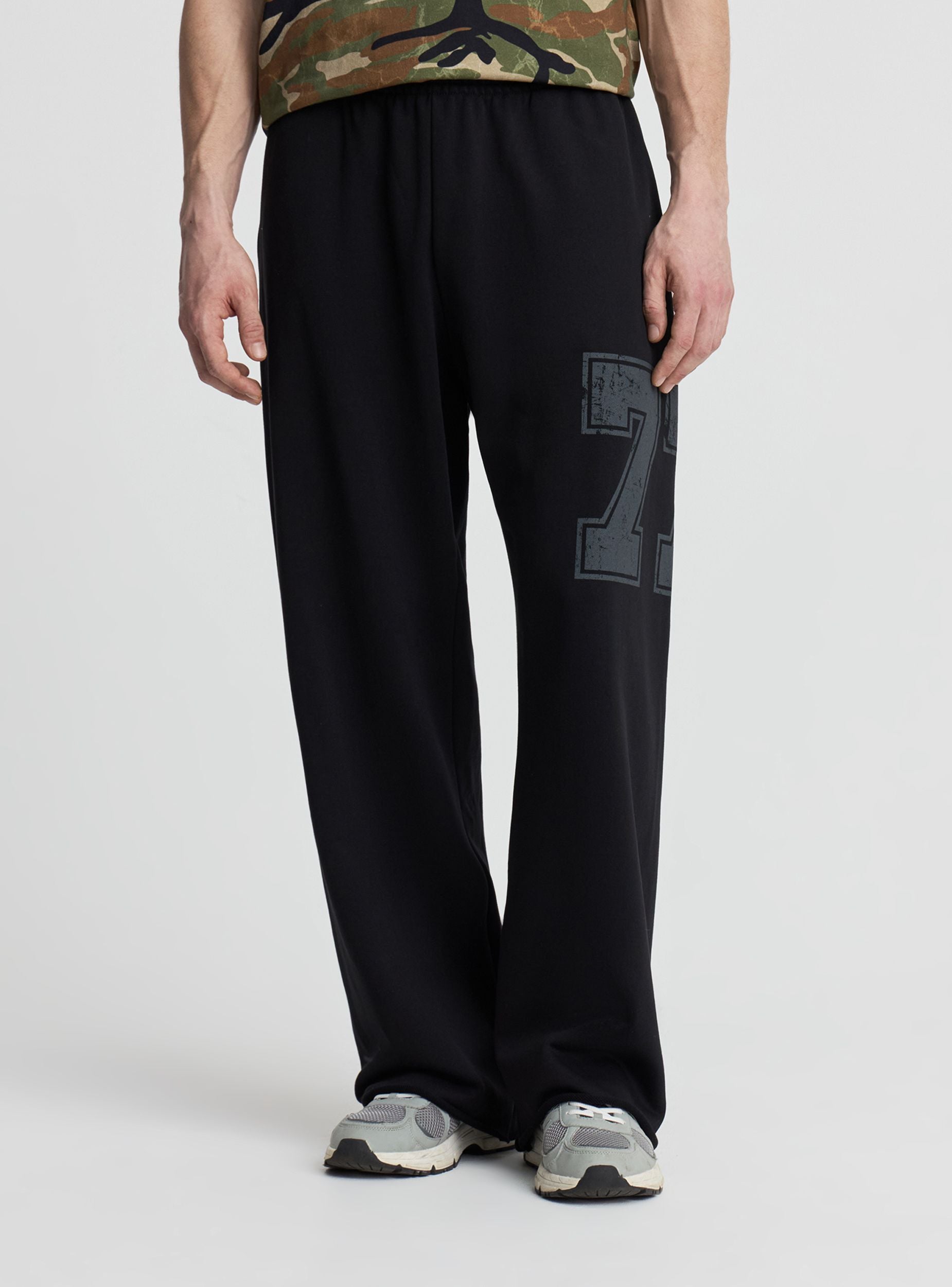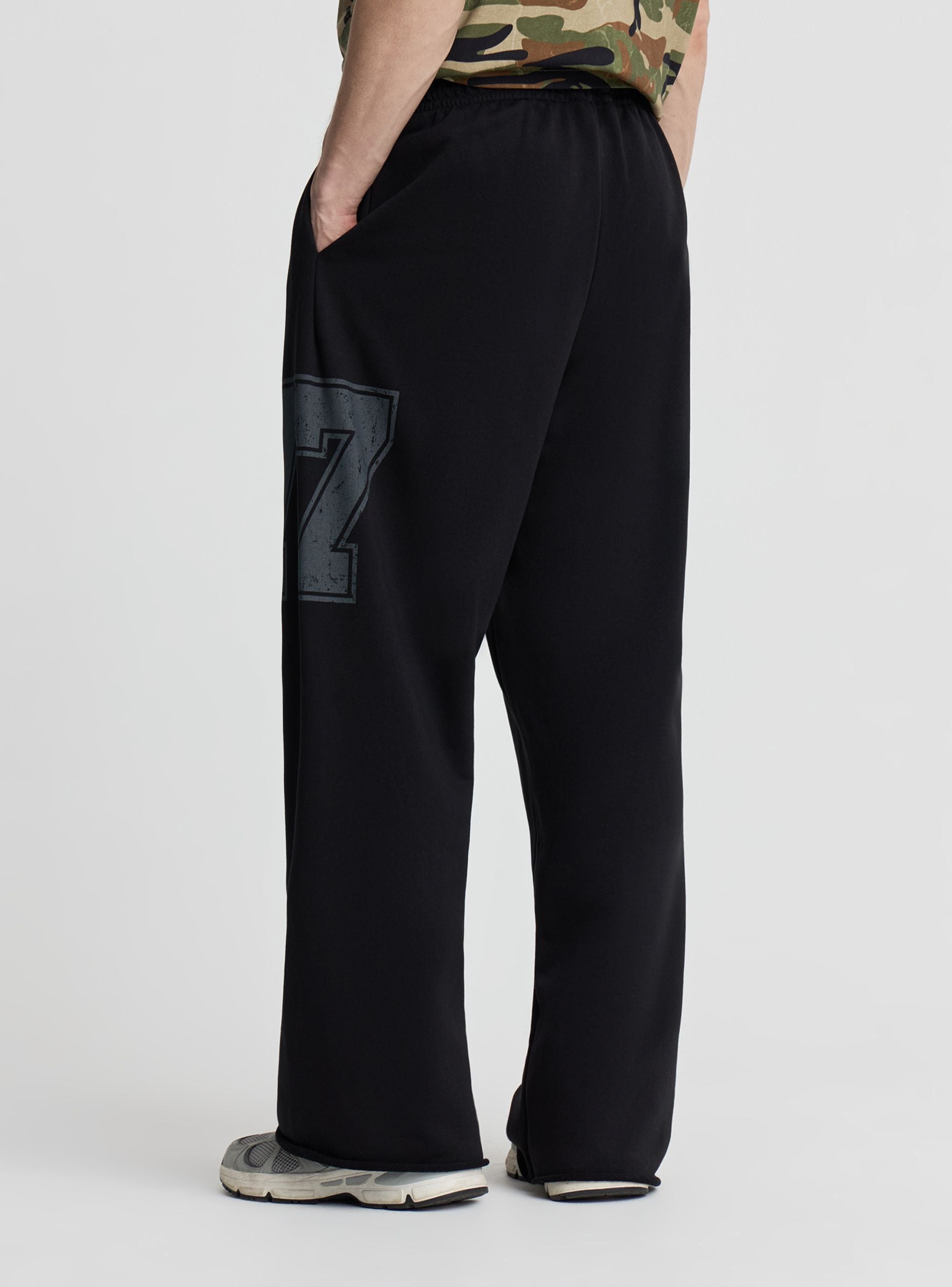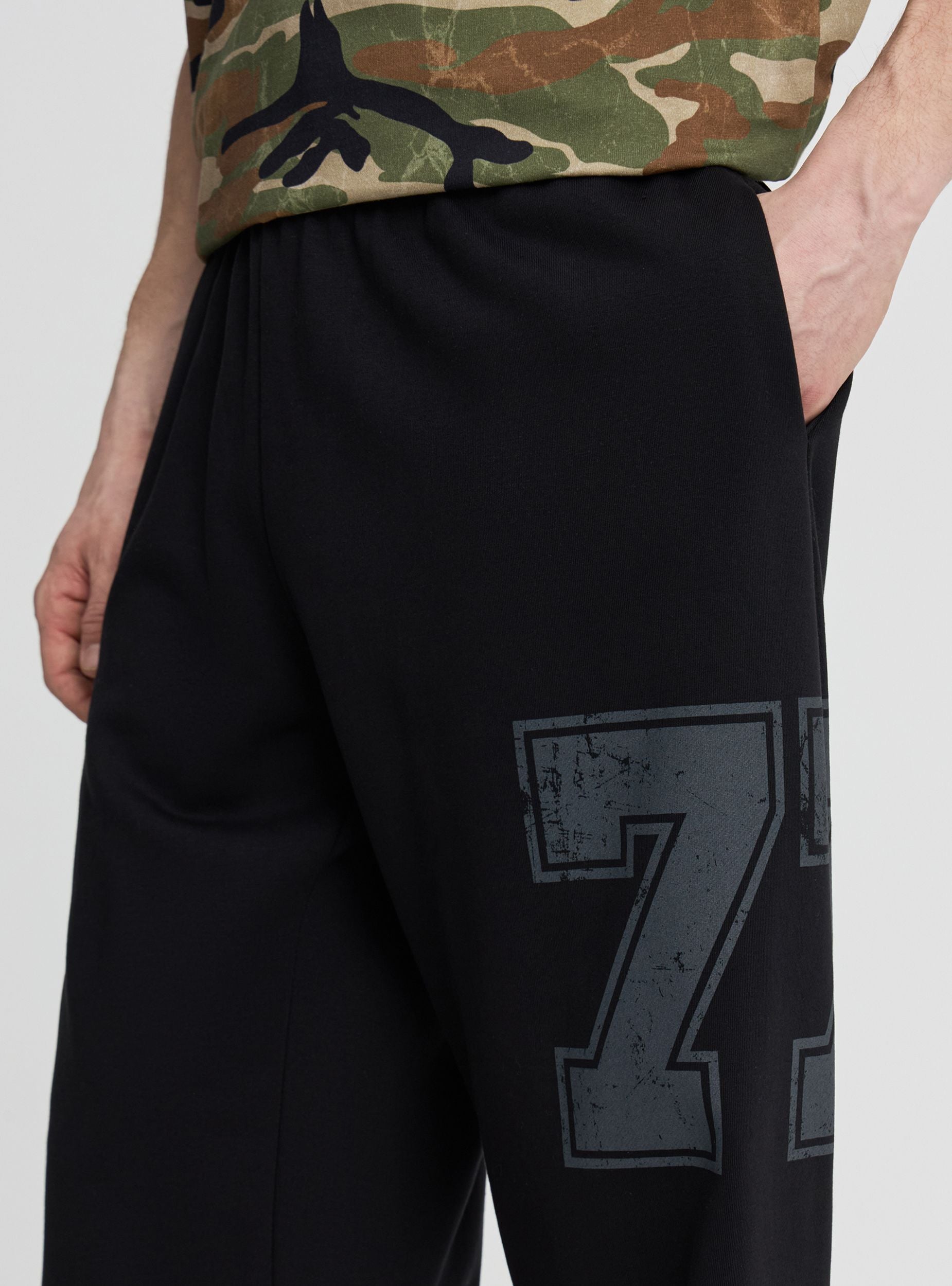 Muške trenerke s kontrastnim numeričkim printom, dizajnirane za sportski i ulični stil. Elastični pojas osigurava udobnost pri pokretima, dok široke i duge nogavice stvaraju opuštenu liniju koja se lako kombinuje s duksericama i patikama. Idealne za slobodno vrijeme, putovanja i lagane treninge.Detalji