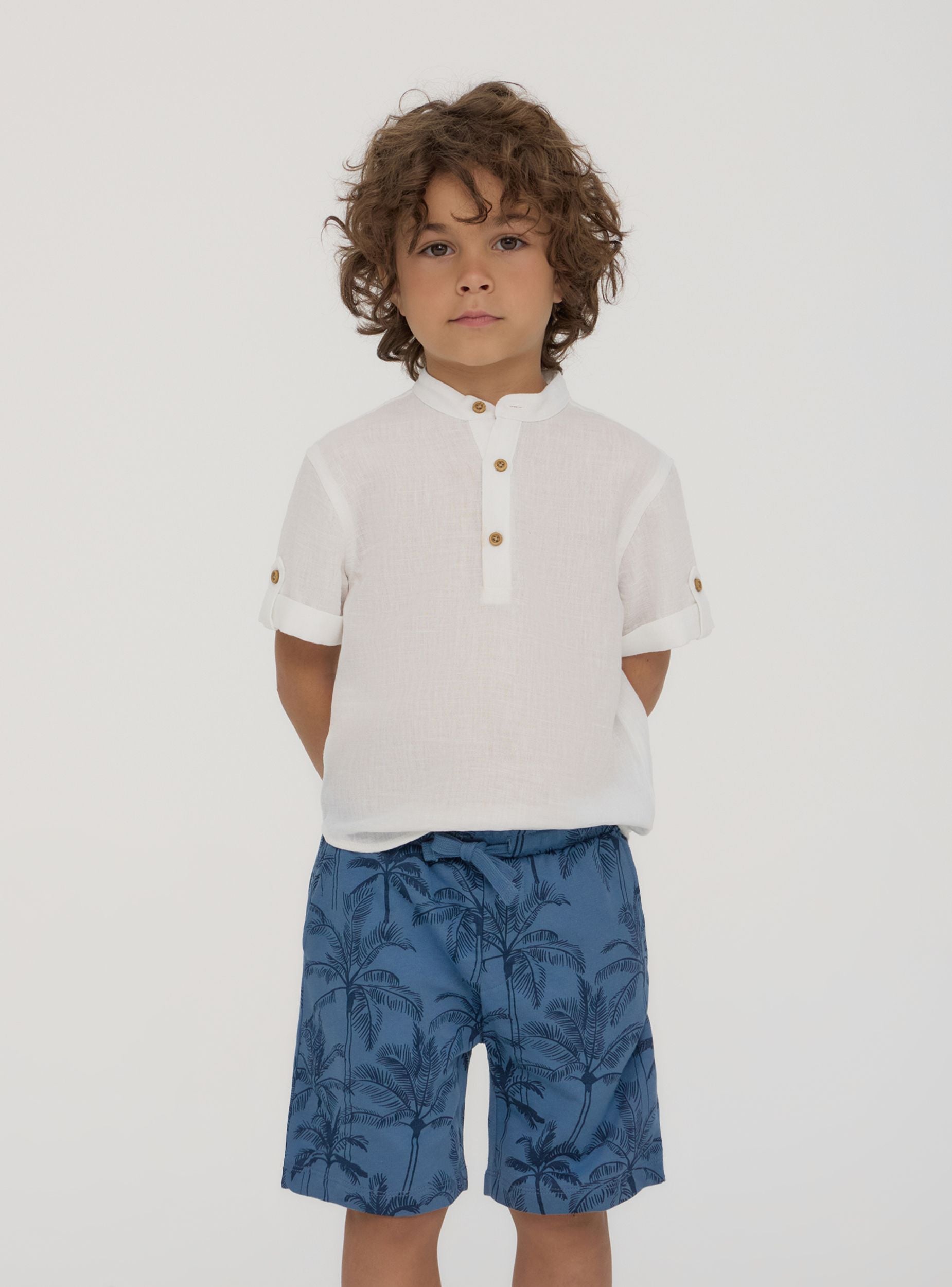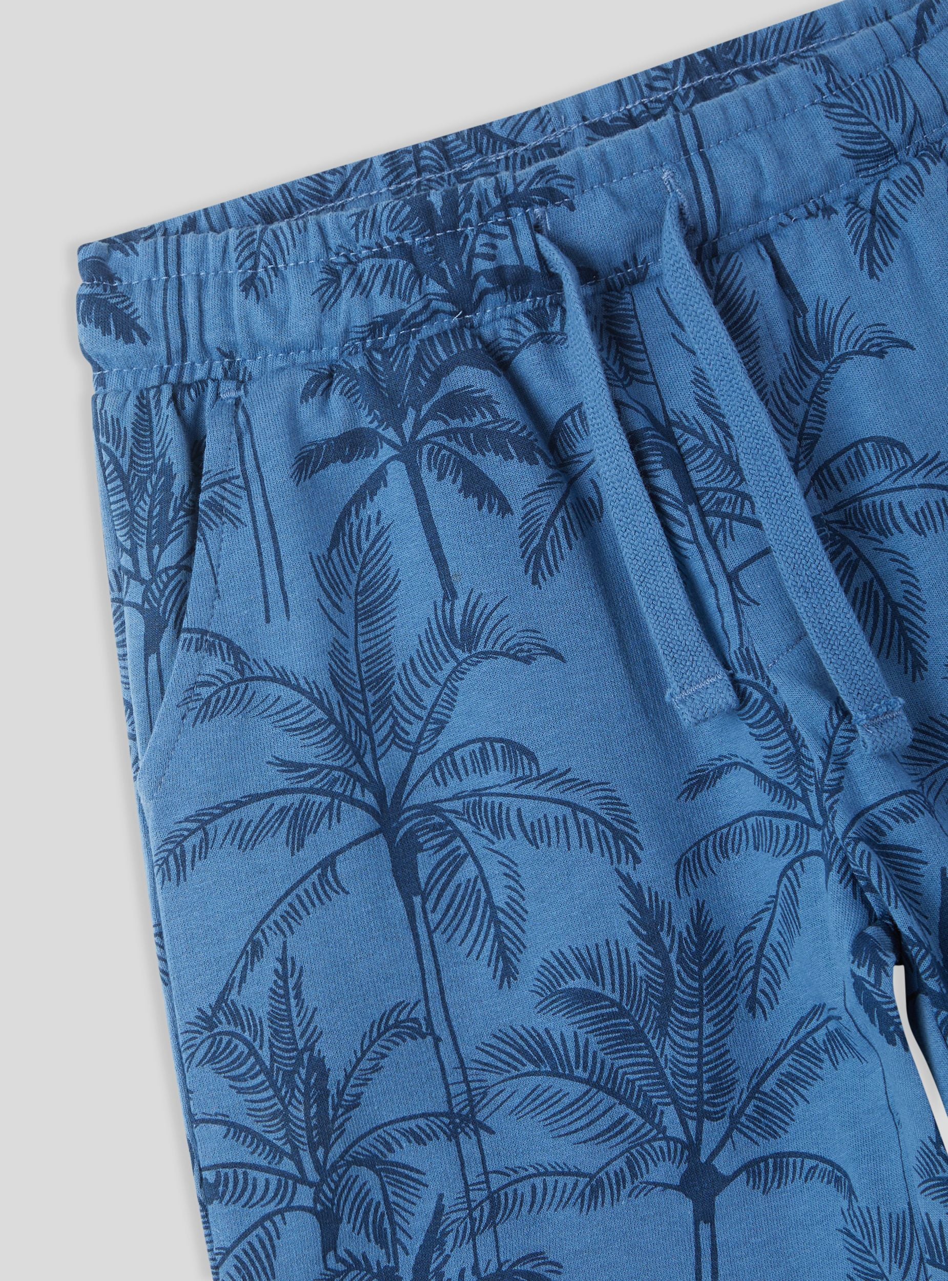 Lagani dječji trenirci, savršeni za ljetne dane zahvaljujući udobnom dizajnu i uzorku palmi koji dočarava odmor. Podesiva vrpca u struku osigurava optimalno prianjanje, dok bočne džepove nude praktičnost za svaku aktivnost. Idealni za slobodno vrijeme i igru, savršeno se kombiniraju s majicom i sandalama za svjež izgled, ili s laganom duksericom i tenisicama za ležeran i udoban outfit.Detalji