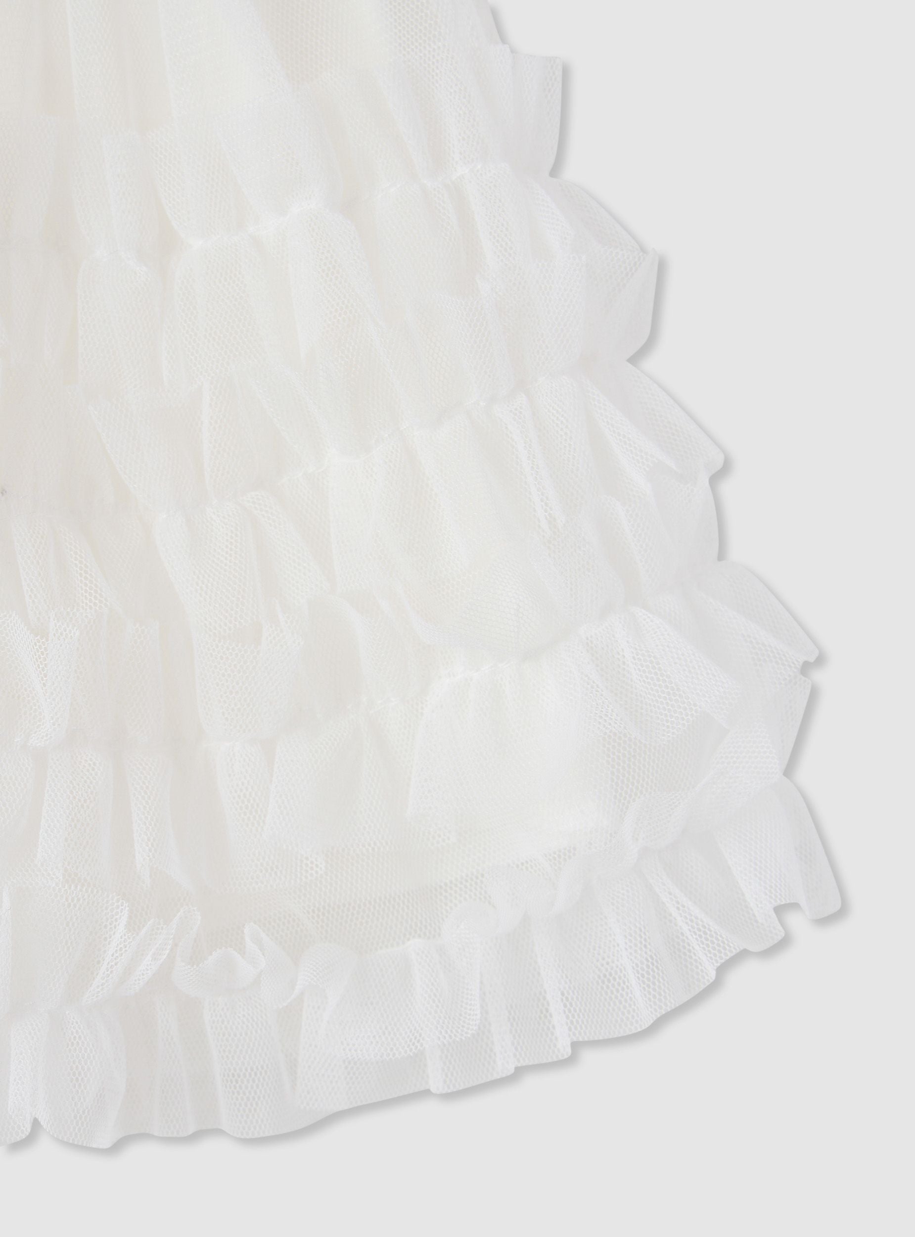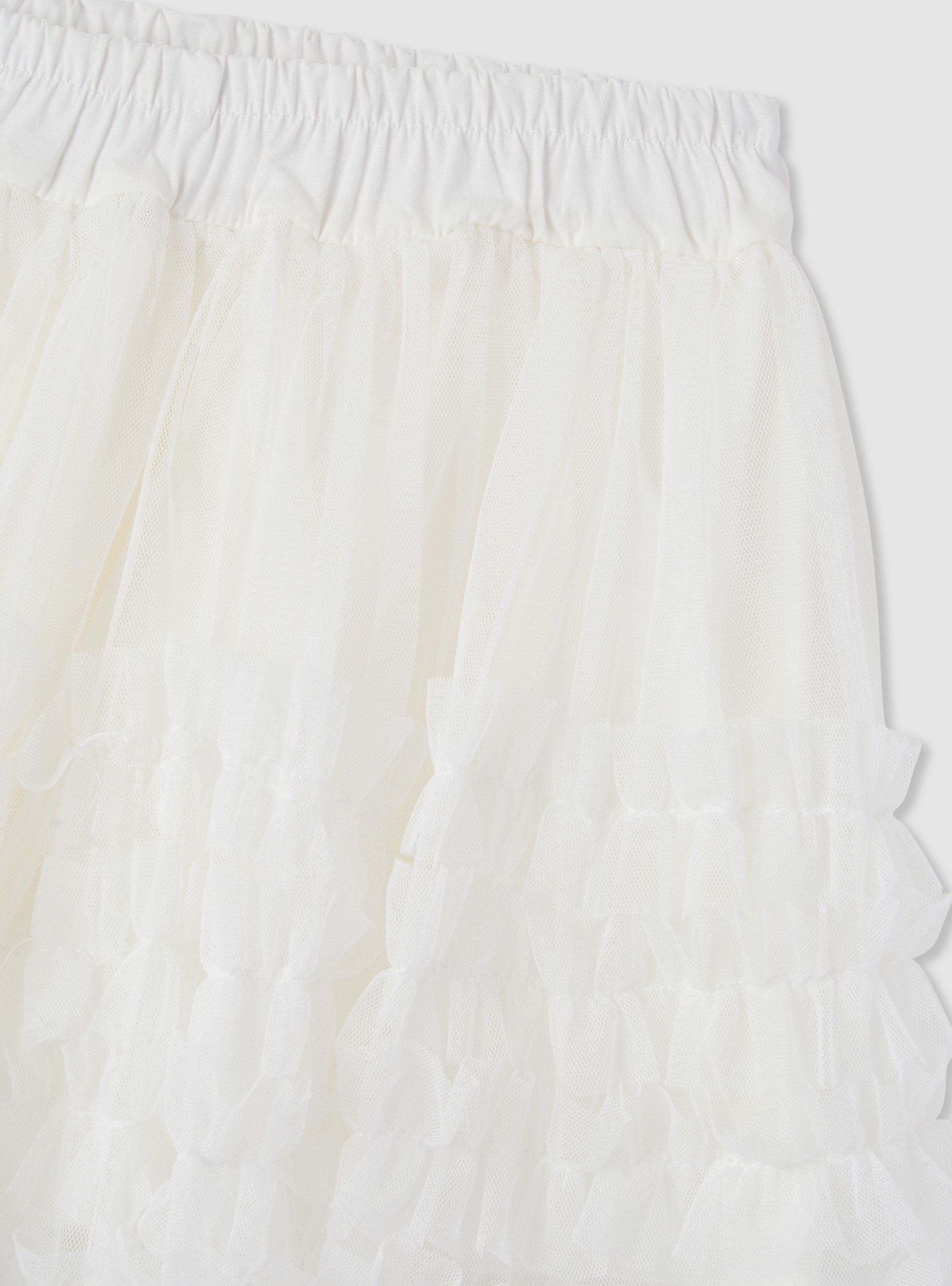 Suknja za djevojčice u jednobojnoj varijanti, dizajnirana za zabave i ceremonije, ali jednostavna za kombinovanje i sa majicama i kardiganima. Struk sa elastičnom trakom osigurava udobnost i praktičnost nošenja, dok kratka suknja ima slojevite volane koji daju volumen i pokret. Idealna uz patike ili balerinke za uvijek dotjeran izgled.Detalji