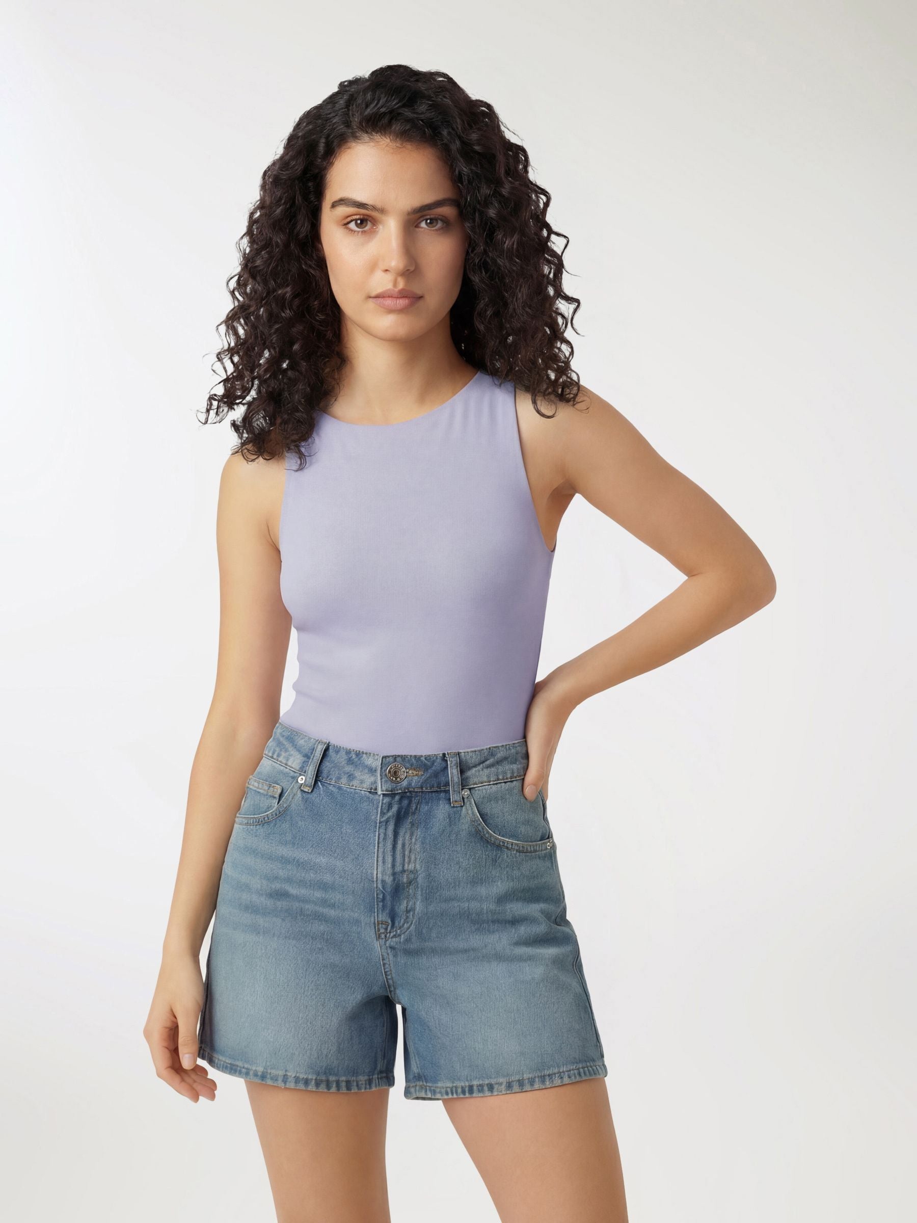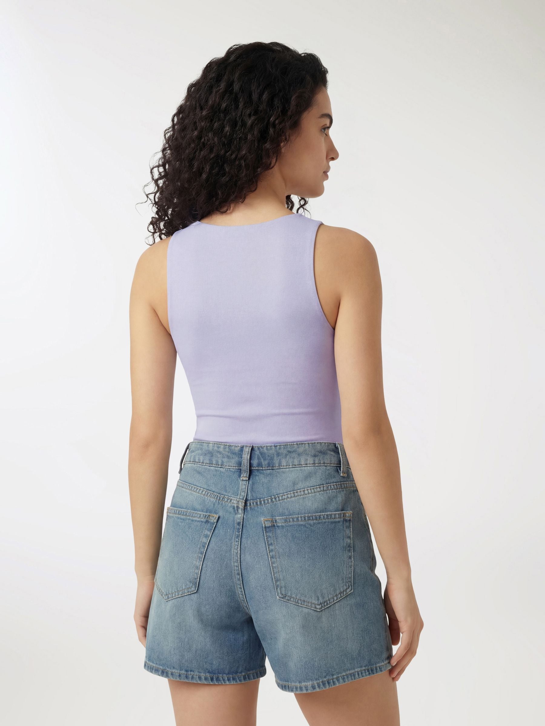 Ženski bodi u jednobojnoj varijanti s američkim izrezom i širokim naramenicama. Zatvaranje na drukere u području prepona radi praktičnosti. Priljubljen kroj koji prati liniju tijela, idealan ispod blejzera ili košulja za uredan izgled, ali također savršen s trapericama ili suknjama za ležerne kombinacije.Detalji