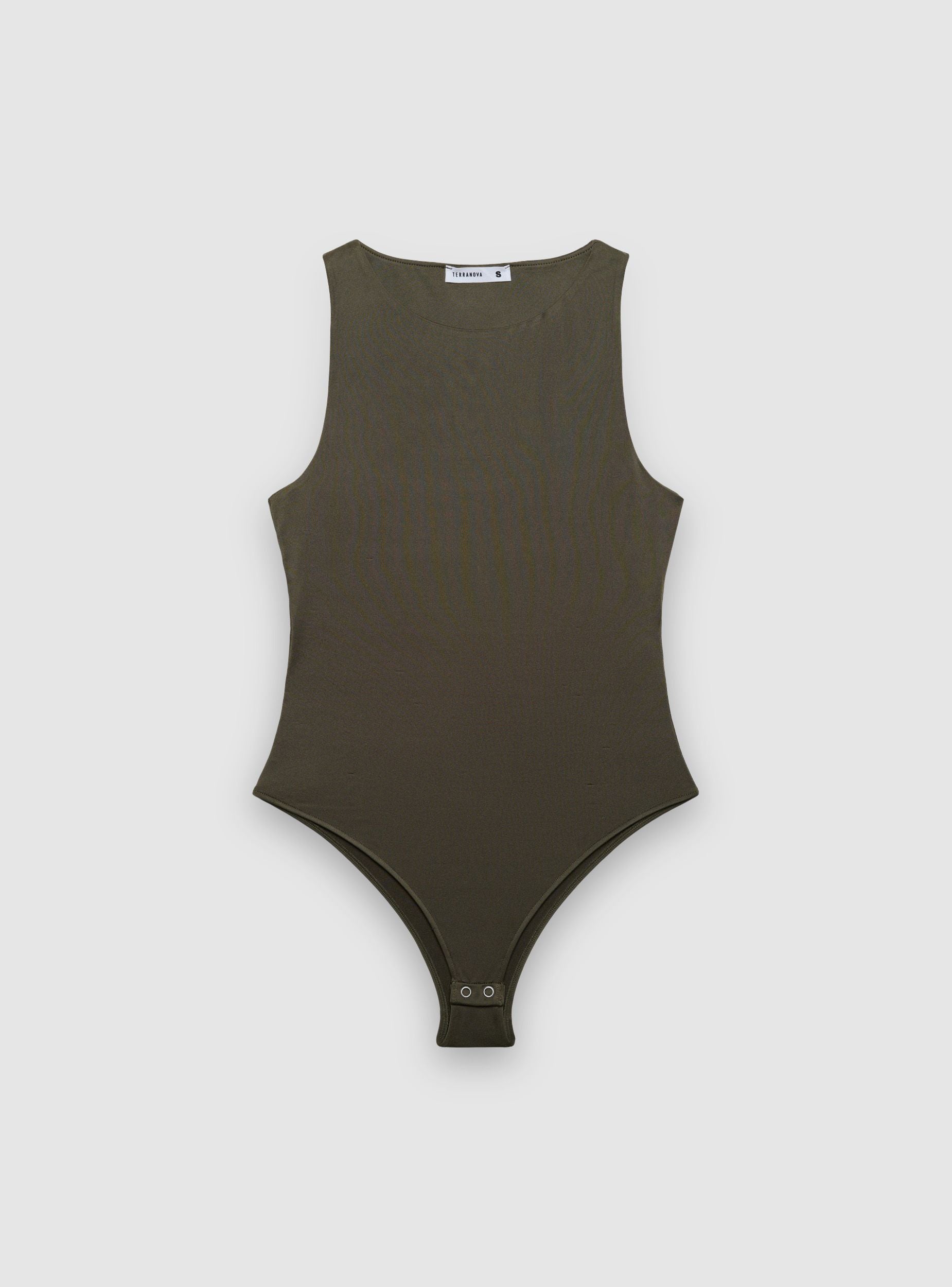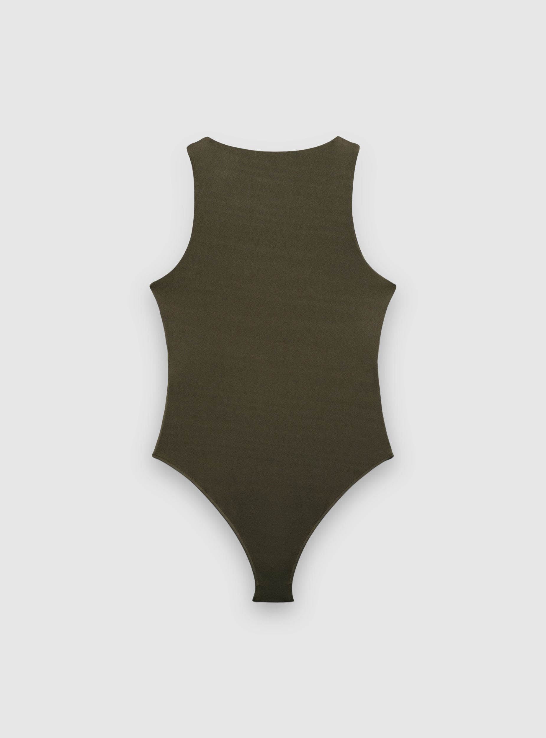 Ženski bodi u jednobojnoj varijanti sa američkim izrezom i širokim naramenicama. Zatvaranje na pritisak dugmadi u preponama za praktičnost. Uski kroj koji prati liniju tijela, idealan ispod blejzera ili košulja za uredan izgled, ali također savršen uz farmerke ili suknje za ležerne kombinacije.Detalji