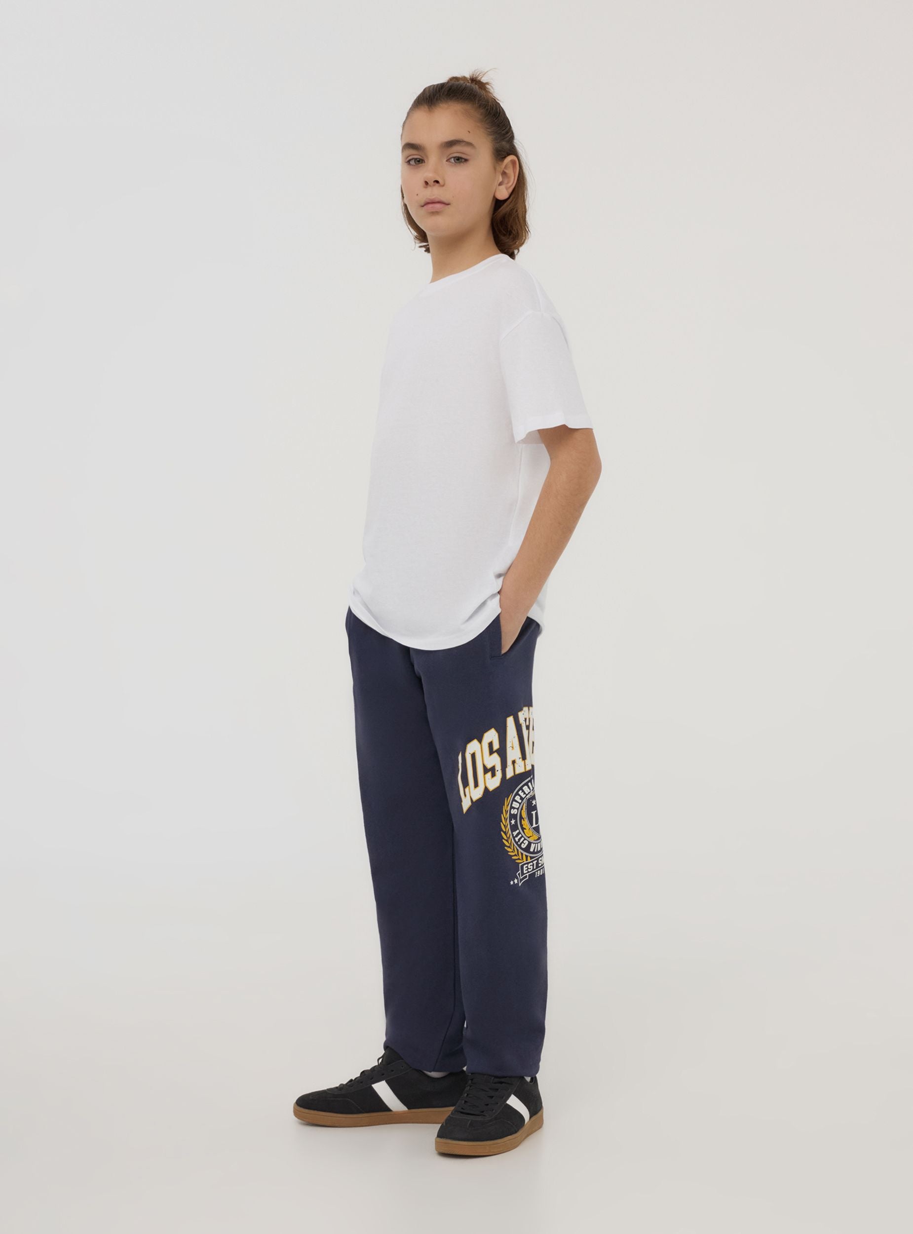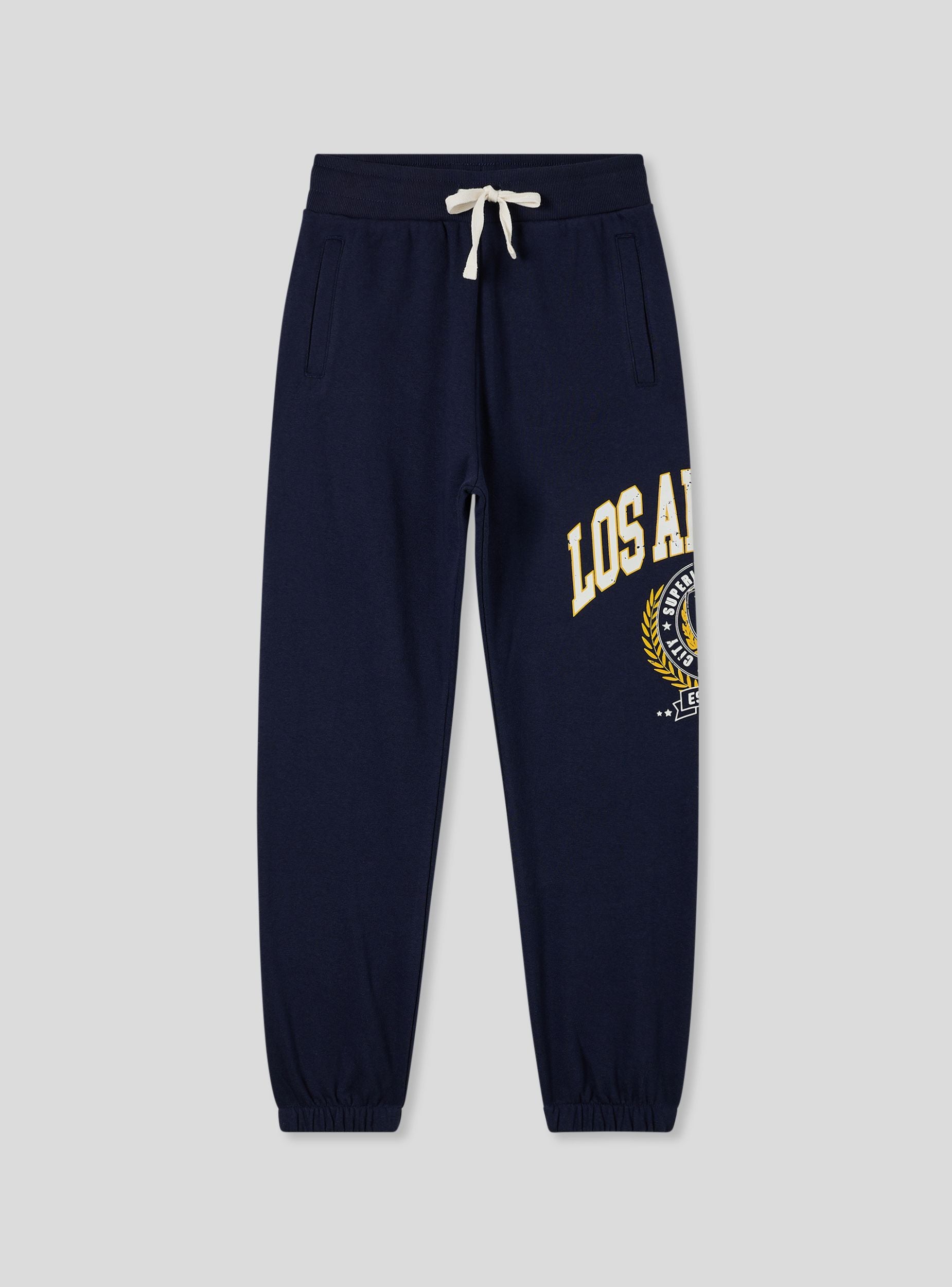 Lagani dječji trenirci sportskog i udobnog dizajna, savršeni za slobodno vrijeme i svakodnevne aktivnosti. Dugi model osigurava udobnost, dok elastična traka u struku omogućuje savršeno prilagođavanje. College stil otisak daje odvažan dodir, idealan za ležeran i trendi izgled. Savršeni su za kombiniranje s duksericama i tenisicama za praktičan i dinamičan outfit.Detalji