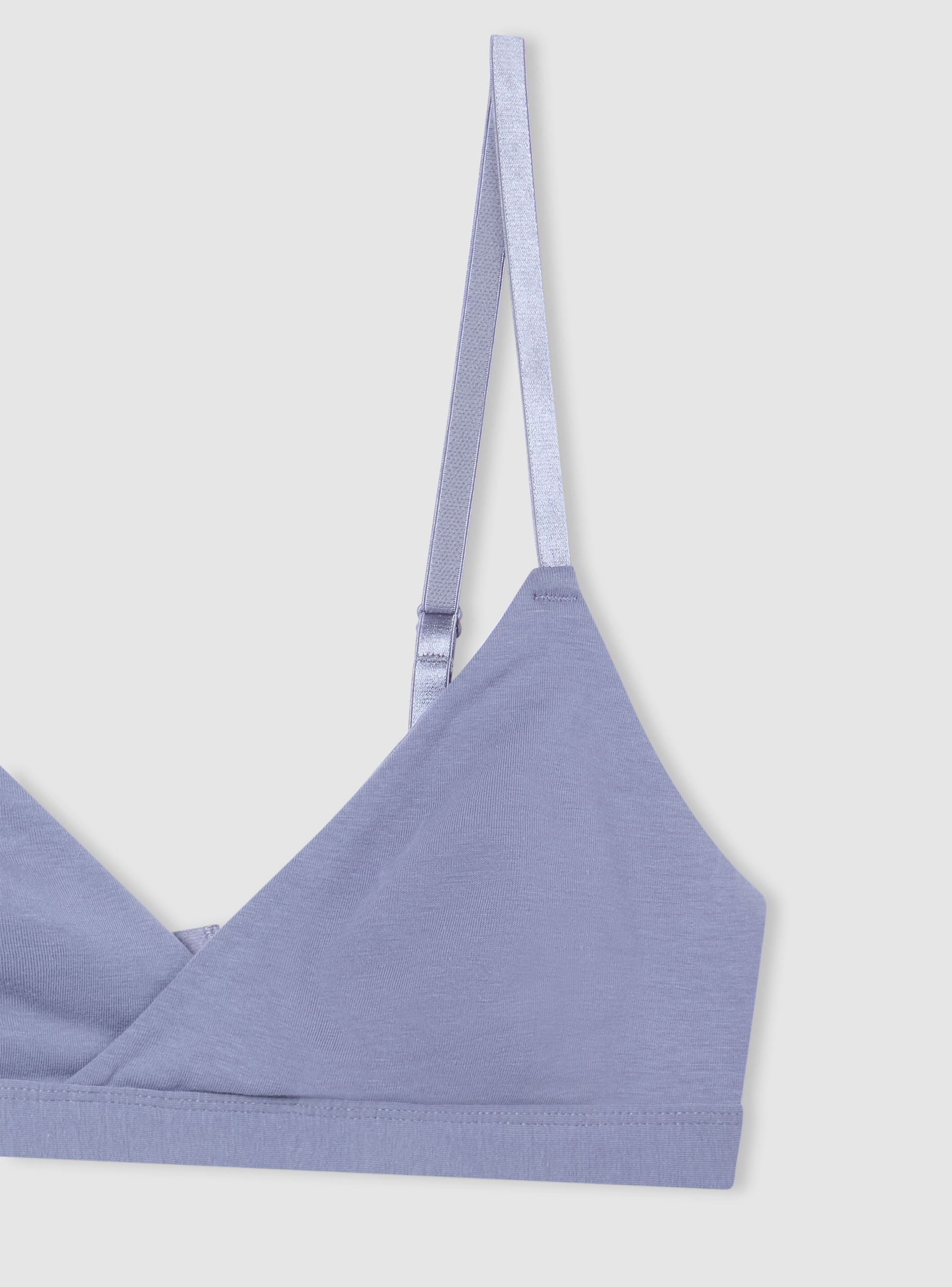 Ženski grudnjak u obliku trokuta idealan za svakodnevnu udobnost. Dizajn bez žice i tanke, podesive naramenice čine ga savršenim za nošenje ispod uskih majica ili laganih haljina. Stražnje zatvaranje s kopčom i jednobojni dizajn za jednostavan i svestran stil. Prilagođava se različitim prilikama, osiguravajući laganu potporu i slobodu kretanja.Detalji
