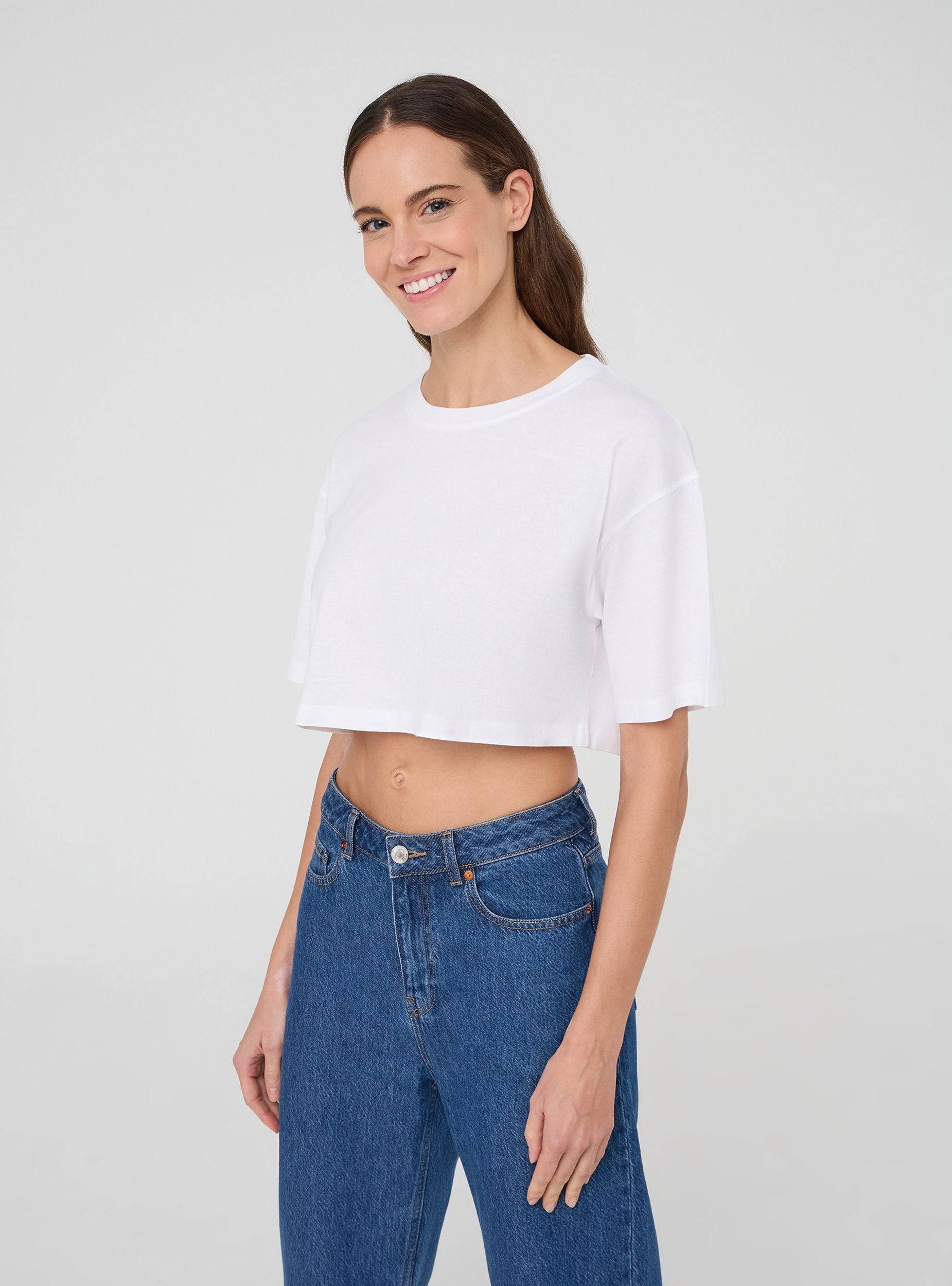 Balení se skládá ze dvou dámských triček jednobarevných s crop střihem a volným střihem. Krátký design a široké rukávy činí tato trička ideálními pro ležérní a uvolněný vzhled, perfektní pro kombinace s vysokým pasem nebo pro bezstarostný letní styl.Detaily