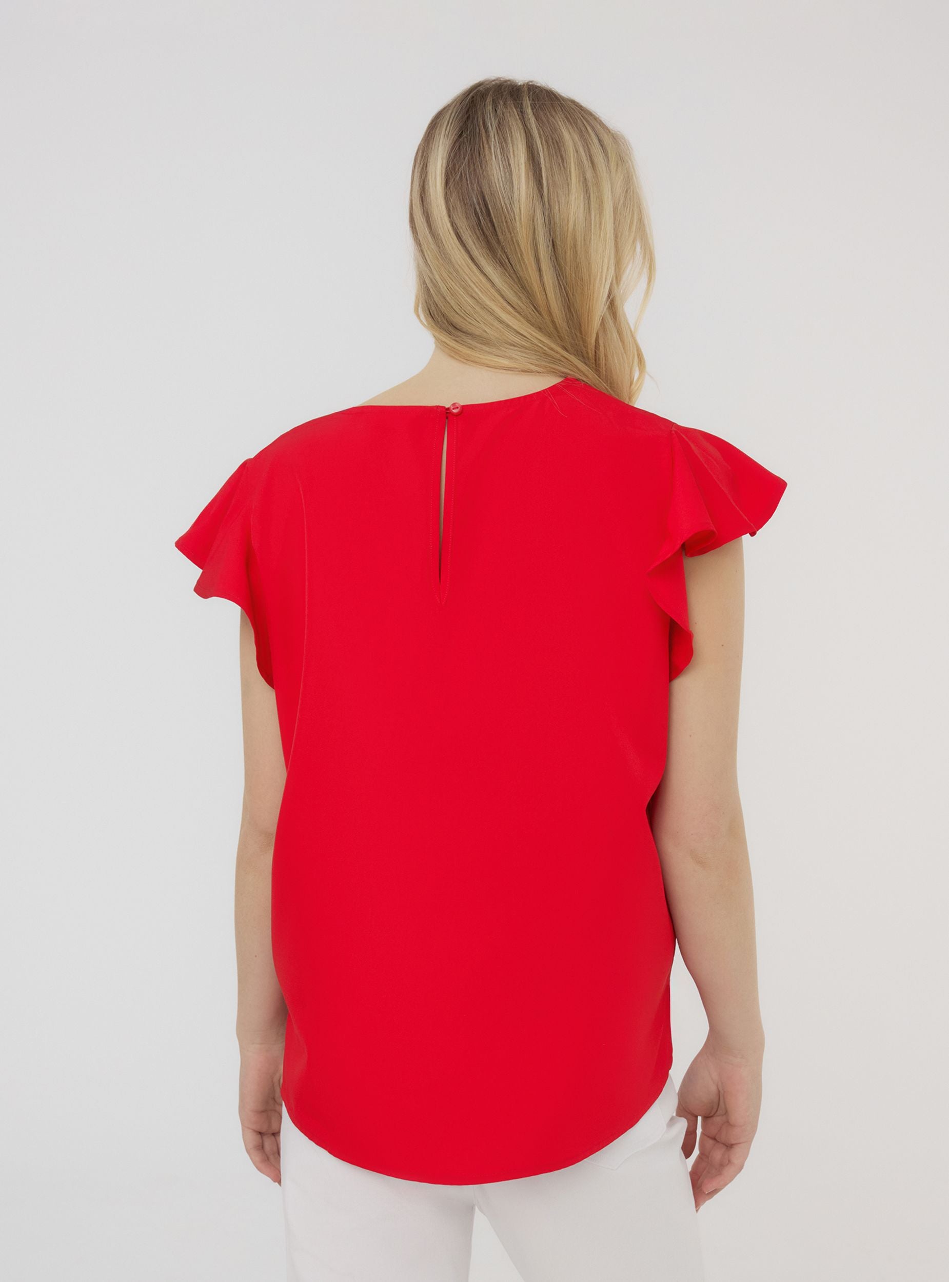Dámská blůza s jednoduchým a rafinovaným designem, charakterizovaná širokým a pohodlným střihem. Má elegantní jednobarevný odstín, který zvyšuje její univerzálnost. Je vybavena zadním knoflíkem pro jemné zapínání a krátkými rukávy. Ideální pro doplnění casual nebo formálnějšího vzhledu, tato blůza se hodí na různé příležitosti díky svému jednoduchému, ale vybranému stylu.Detaily