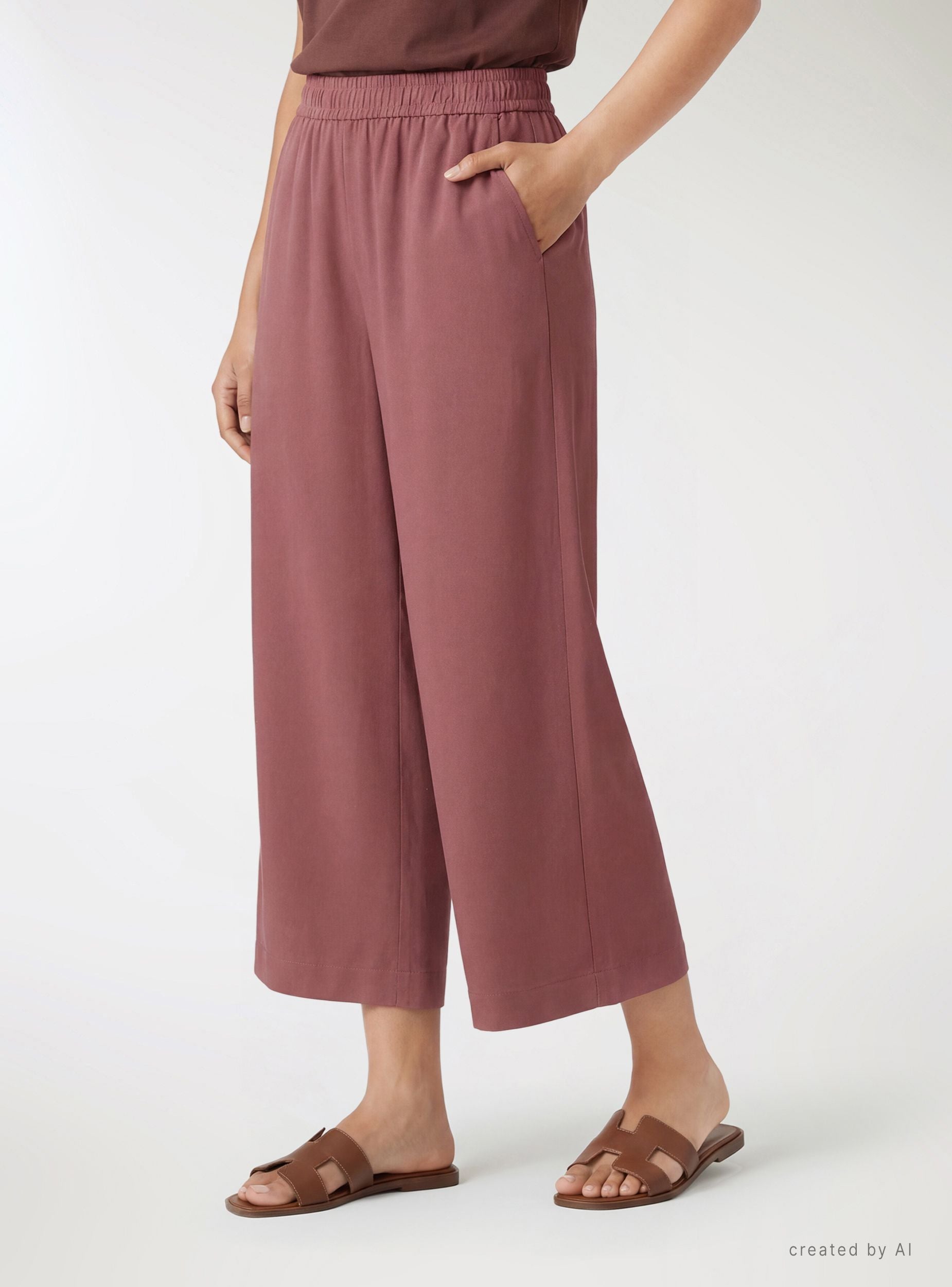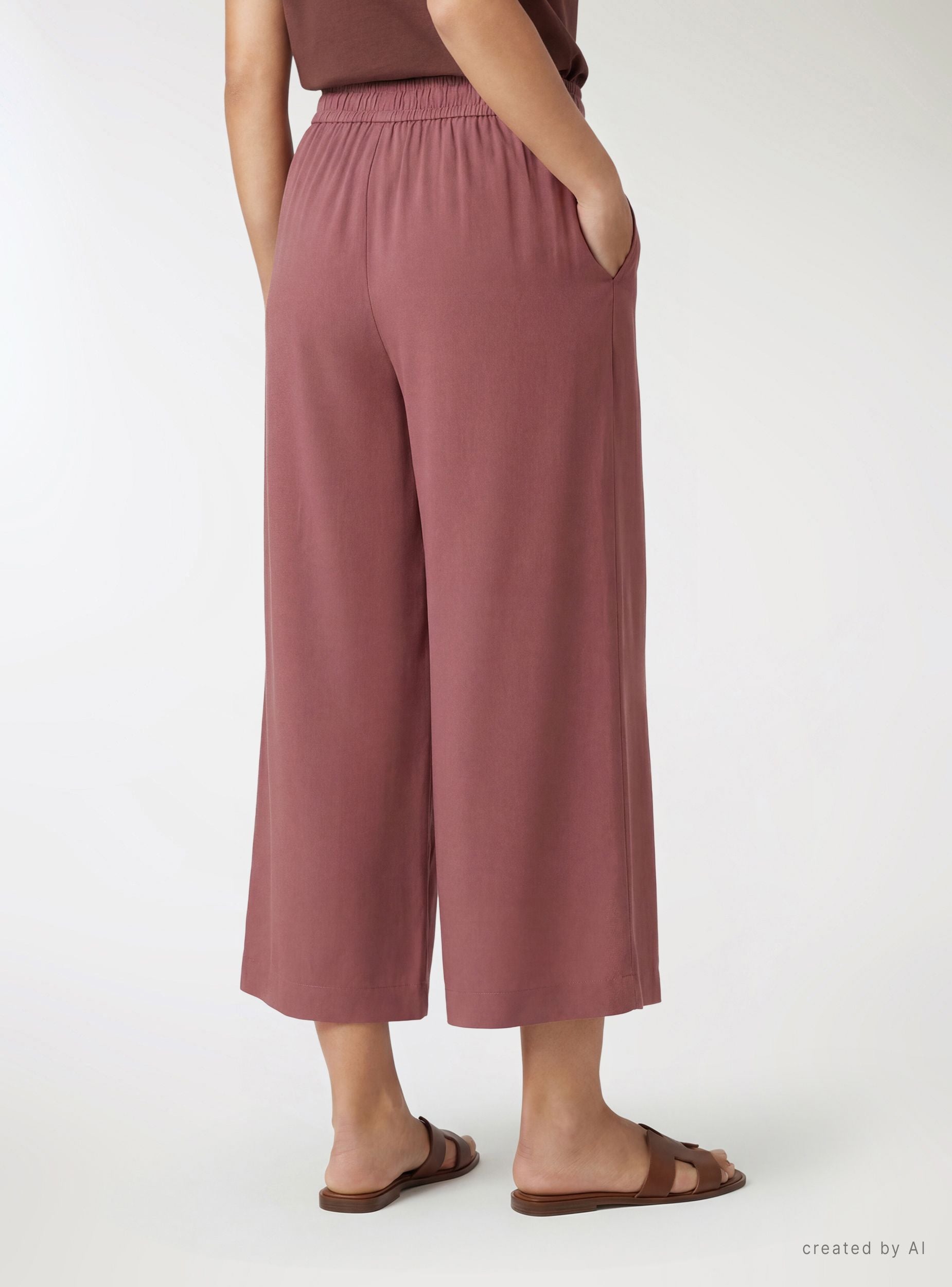 Dámské palazzo kalhoty v jednobarevném provedení, s crop délkou a širokými nohavicemi pro volný střih. Pas s elastickým pruhem zajišťuje pohodlí, ideální pro denní a volnočasové outfity. Kombinujte je s tričkem zastrčeným v pase nebo s měkkou košilí a sandály či teniskami pro upravený vzhled.Detaily