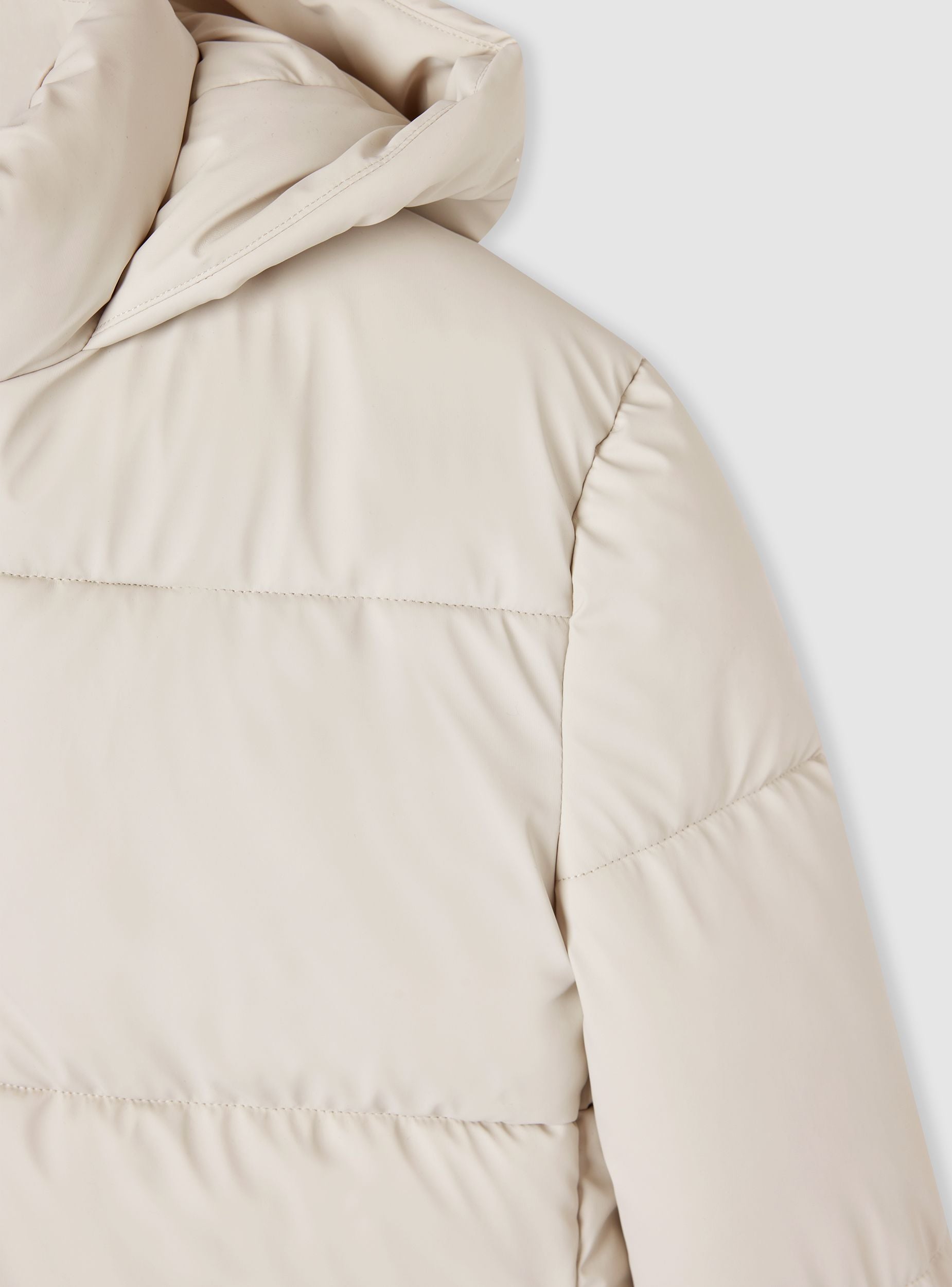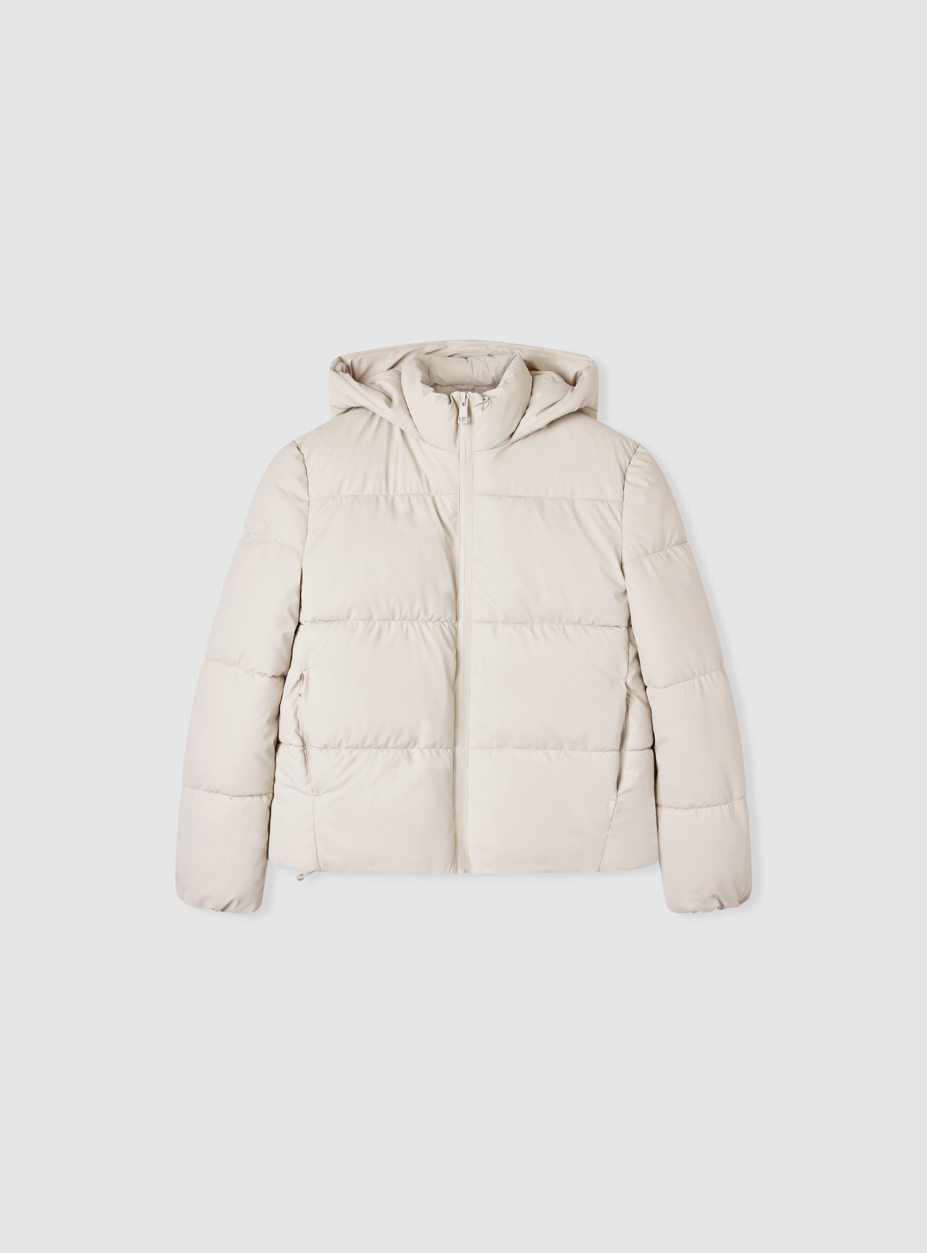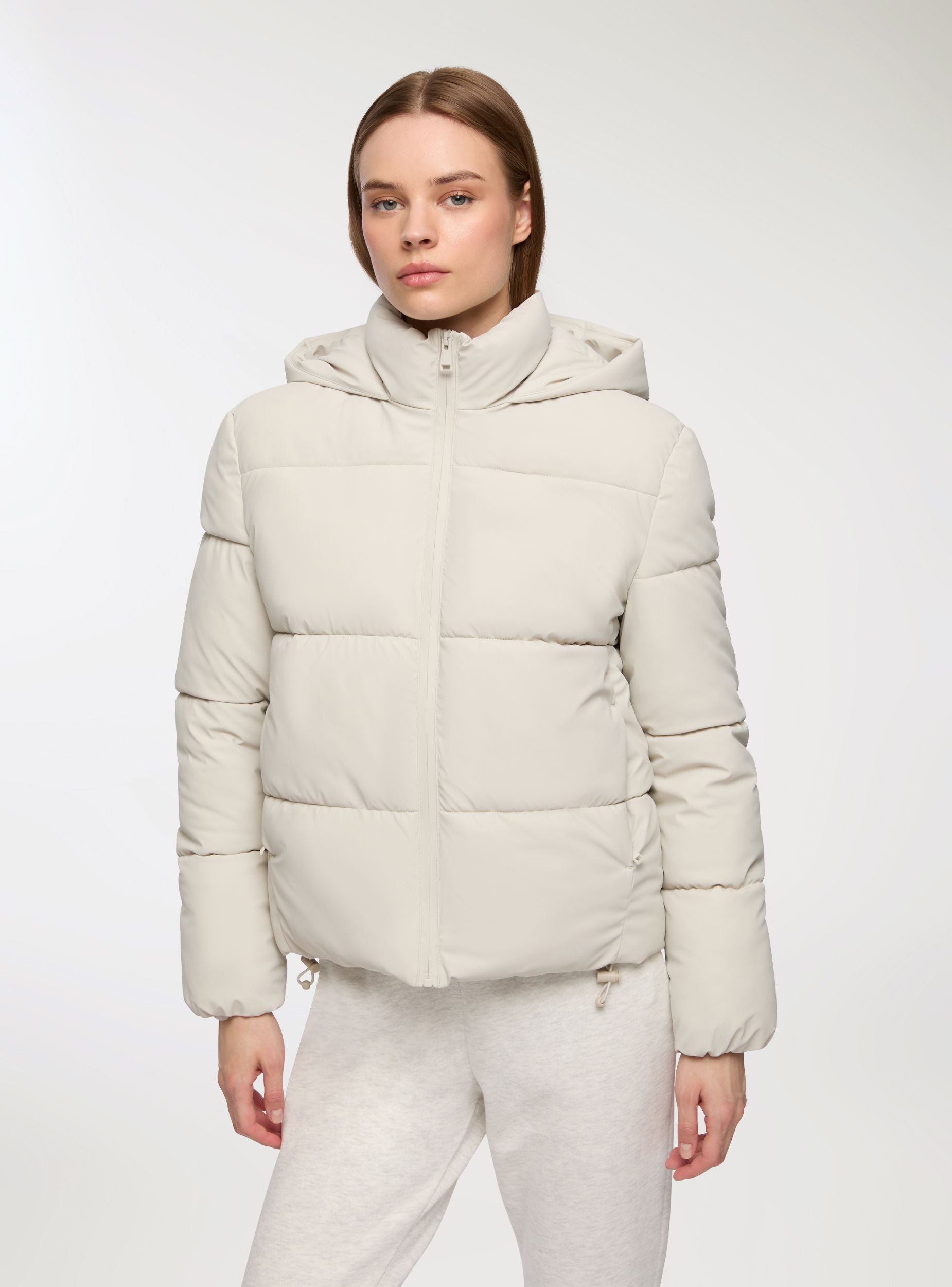 Dámská prošívaná bunda s kapucí, ideální pro stylové zvládnutí chladných dnů. Má zipové zapínání, boční kapsy na zip a stahování na spodním lemu, což zajišťuje pohodlné a praktické nošení. Perfektní pro ležérní a sportovní kombinace, vyniká moderním gumovým designem a funkčností. Univerzální kousek, který doplní tvůj zimní šatník.Detaily