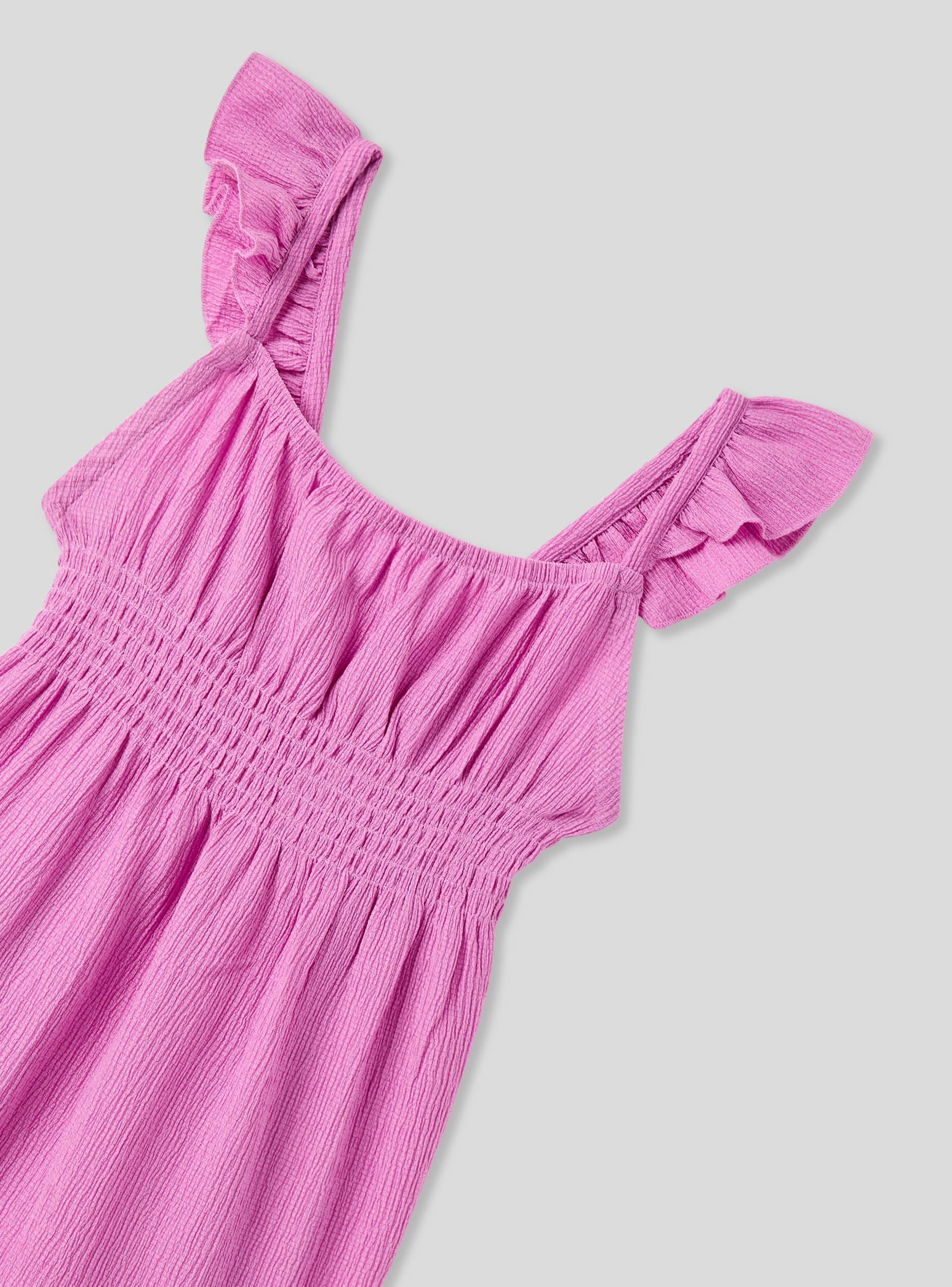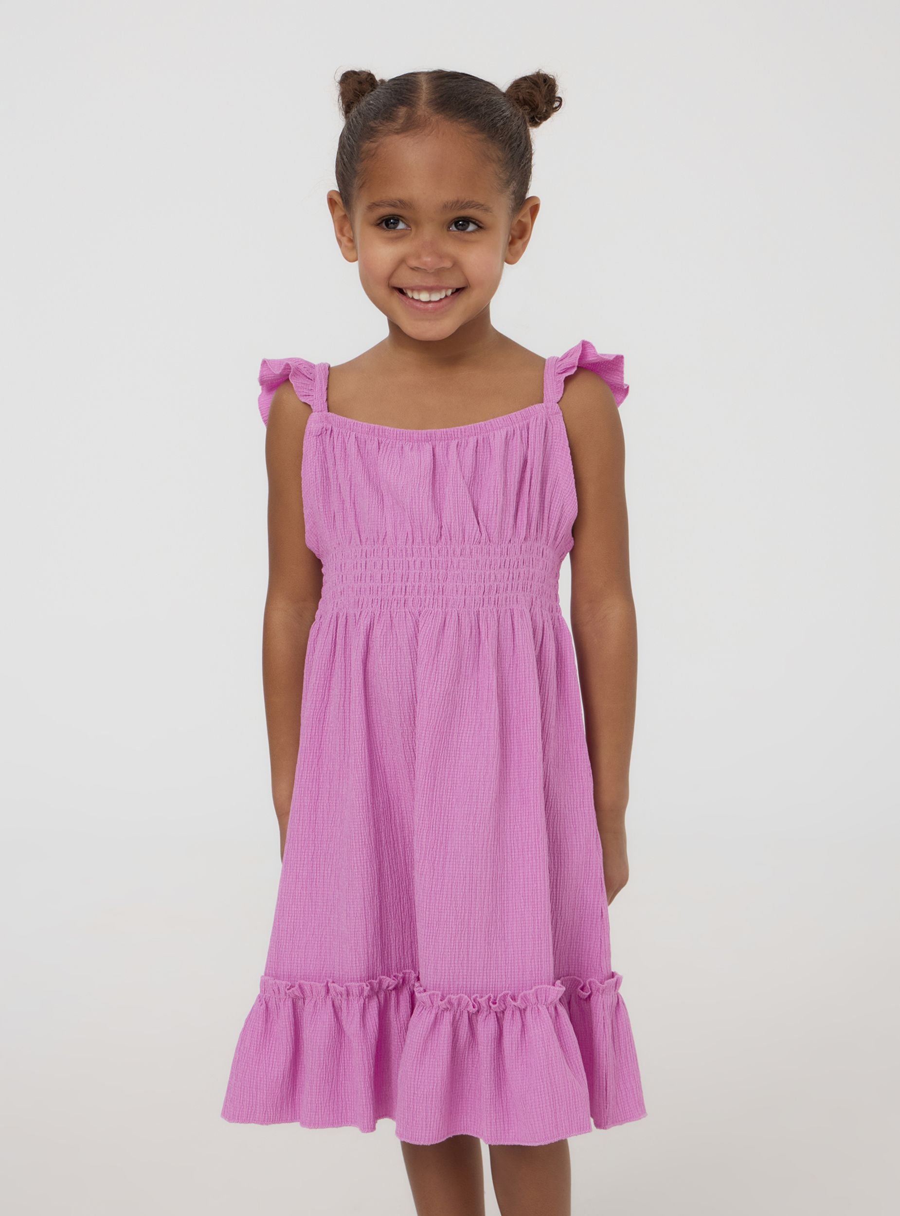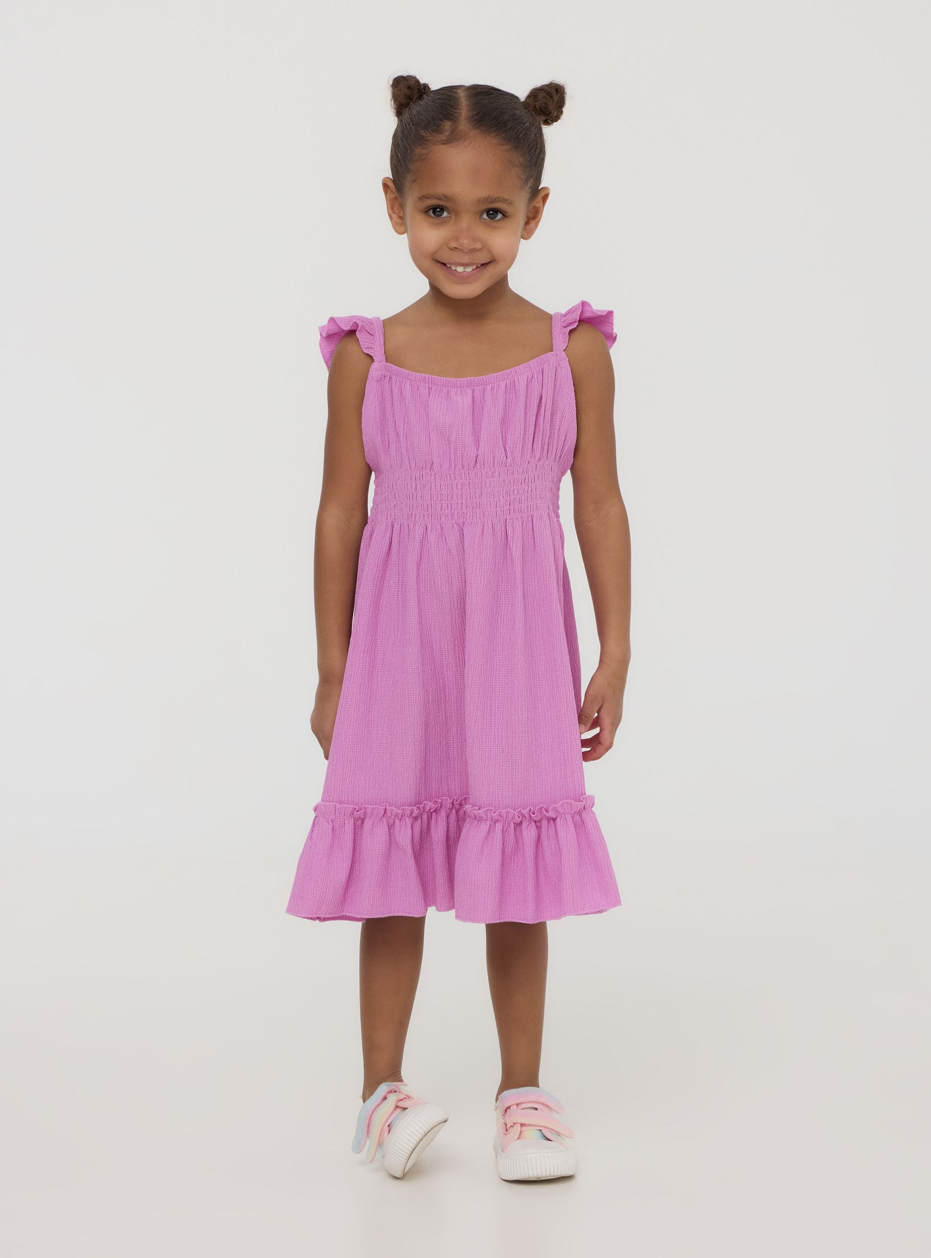 Perfektní dívčí šaty na hezké počasí, s živou jednobarevnou barvou a propracovanými detaily. Jemné řasení a smockový steh v pase dodávají kousku půvabný a pohodlný vzhled. Ideální pro každou příležitost, tyto šaty spojují styl a praktičnost, doprovázející dívky na jejich letních dobrodružstvích s nádechem elegance.Detaily