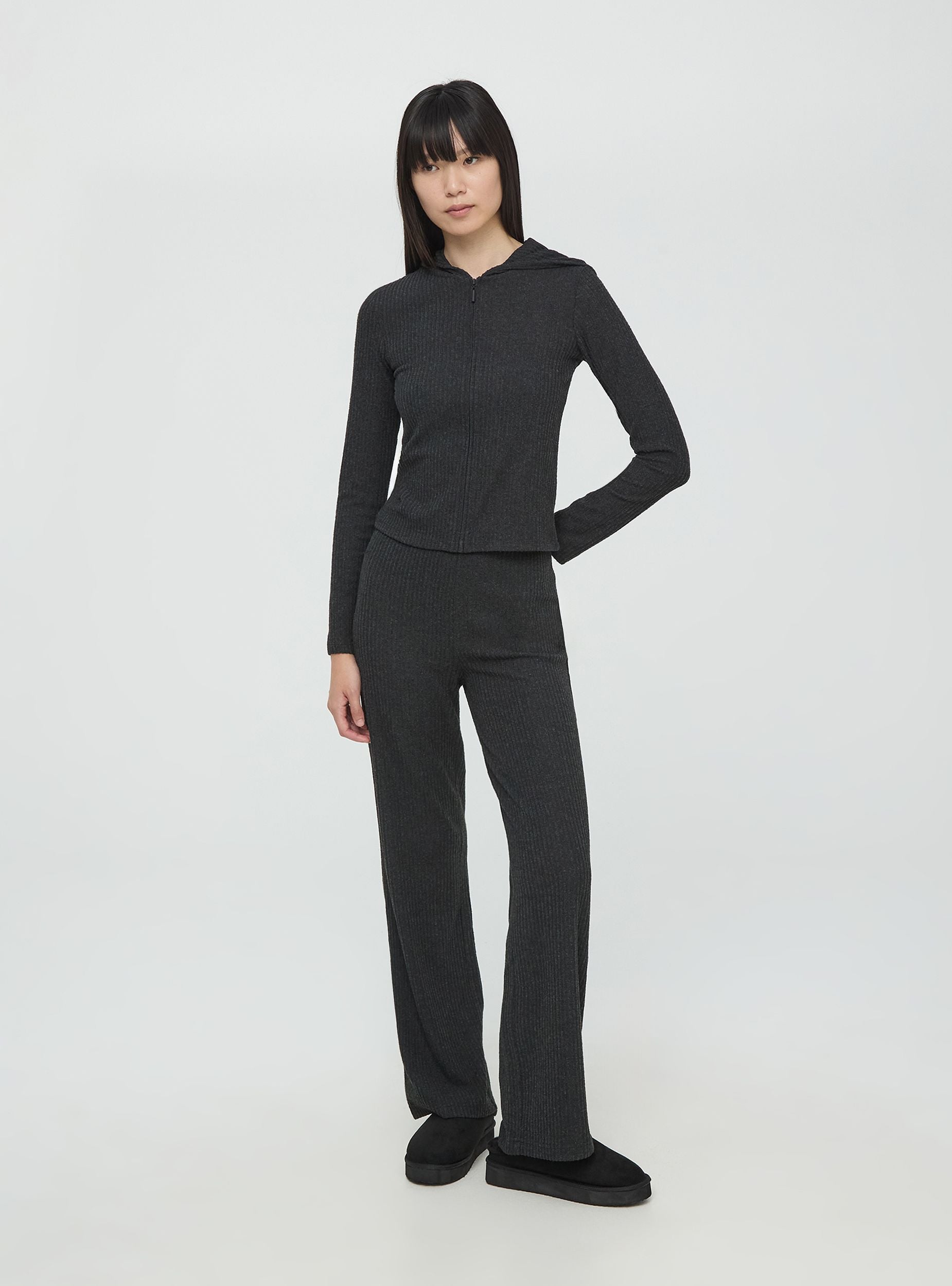 Dámský pletený svetr s dlouhými rukávy a kapucí. Přední zapínání na zip. Perfektní na volný čas a neformální příležitosti, tento pletený svetr se vyznačuje svou strukturou s žebrováním, která dodává nádech stylu. Základní kousek pro casual vzhled.Detaily
