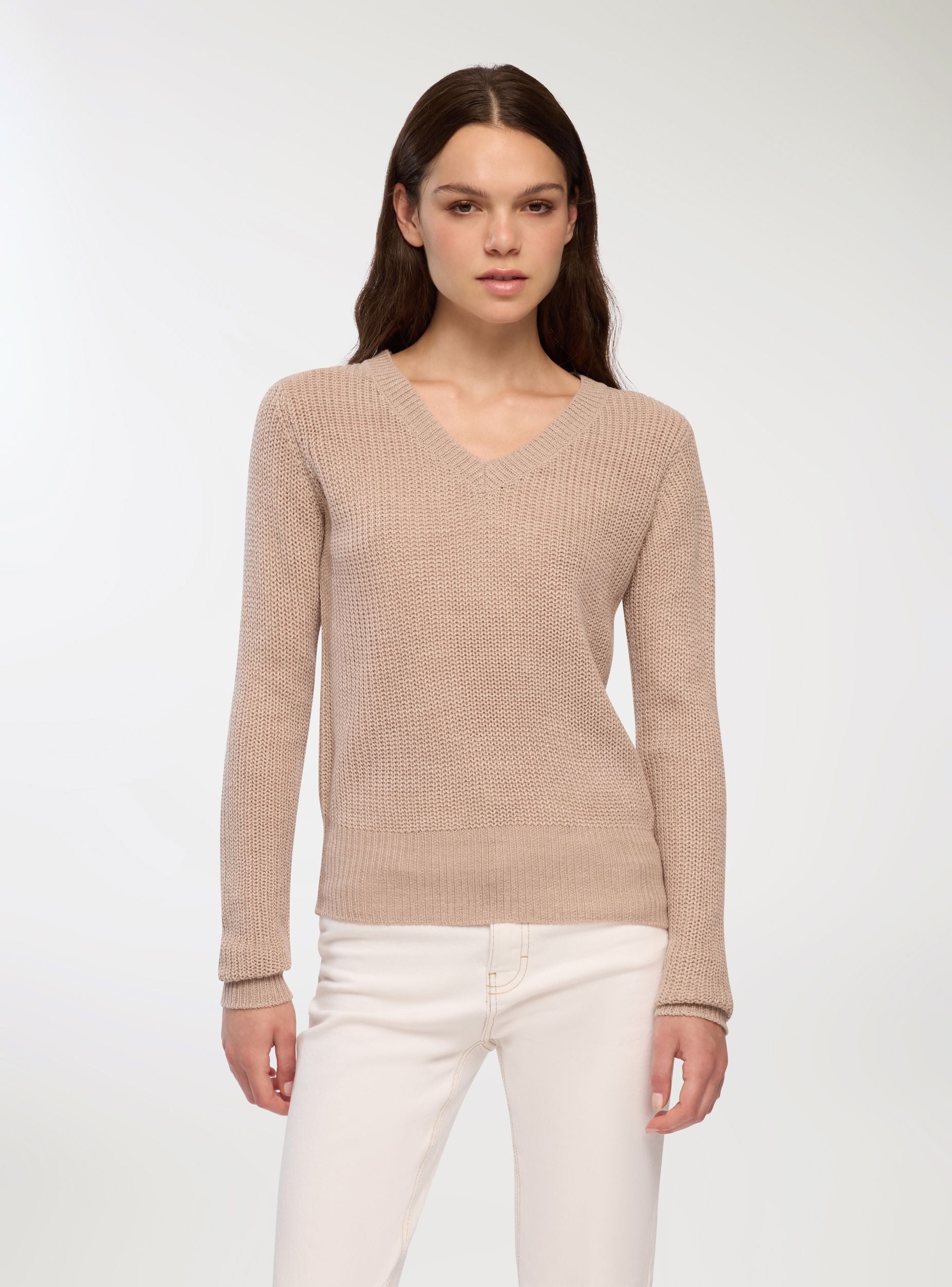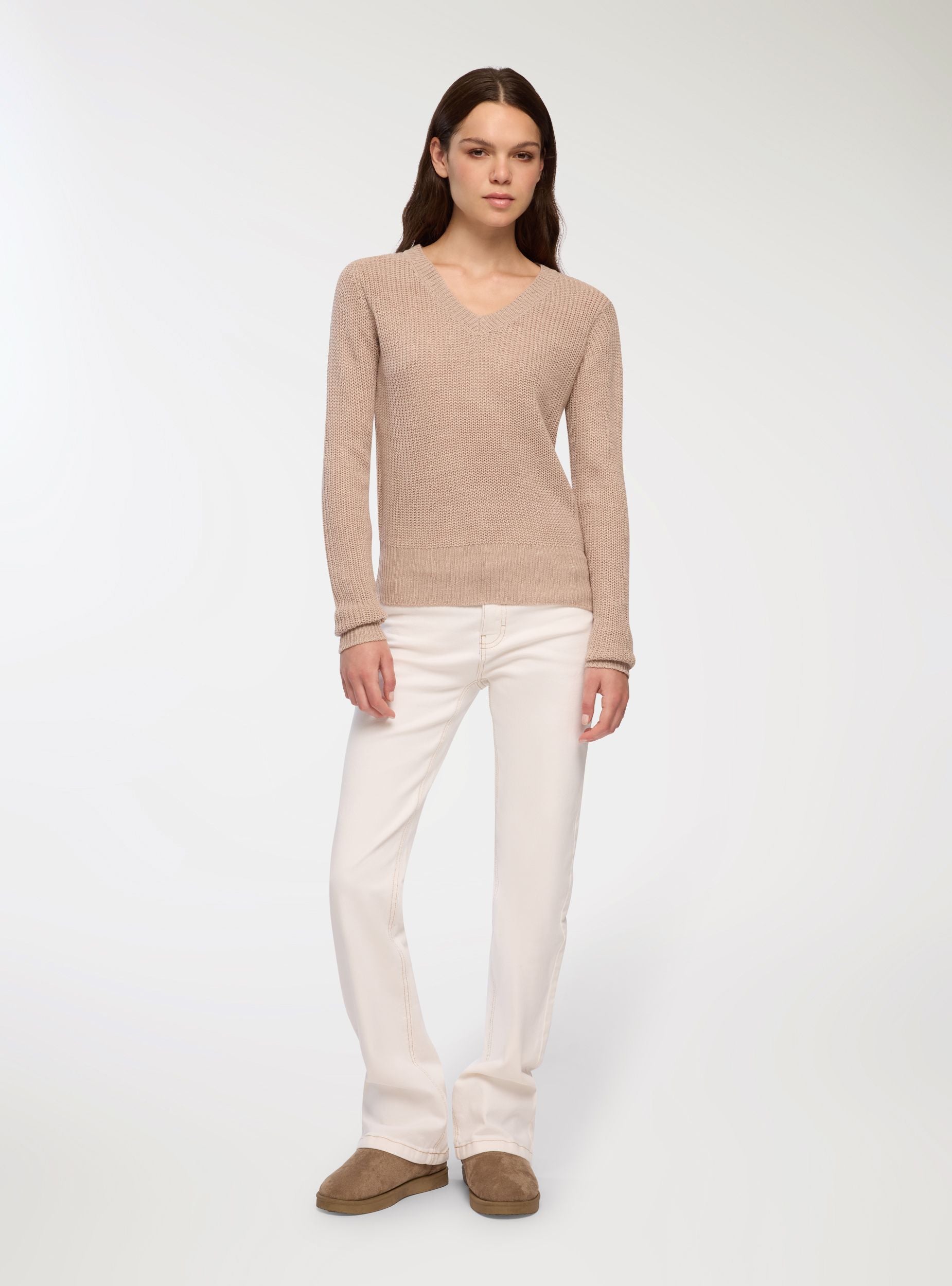 Dámský jednobarevný svetr s výstřihem do V, ideální pro stylové zvládnutí chladnějších měsíců. Design s anglickým žebrováním dodává kousku rafinovaný a strukturovaný efekt, ideální pro příležitostný, ale pečlivý vzhled. Pohodlný střih a dlouhé rukávy pro maximální komfort během dne. Lze nosit na džíny nebo elegantní kalhoty, je to všestranný kousek pro kancelář nebo volný čas.Detaily