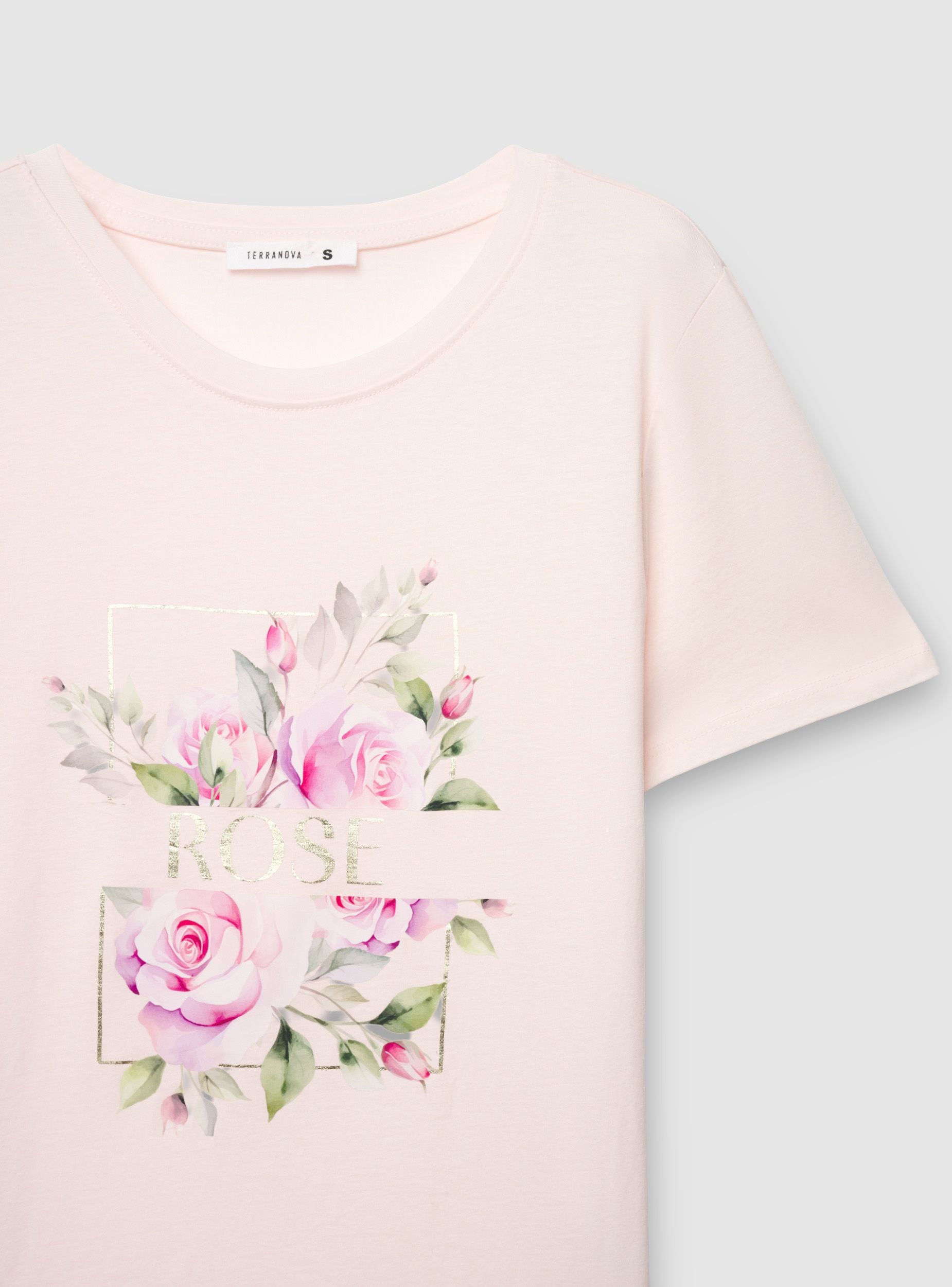 Dámské tričko s kulatým výstřihem a krátkými rukávy, zdobené na přední straně květinovým potiskem s nápisem ve třpytivém efektu. Regular střih, ideální pro ležérní vzhled s džíny nebo sukněmi a perfektní pod kardigan nebo lehké bundy. Vhodné pro každodenní nošení. Design s květinovým potiskem, který dodá vašim outfitům romantický nádech.Detaily