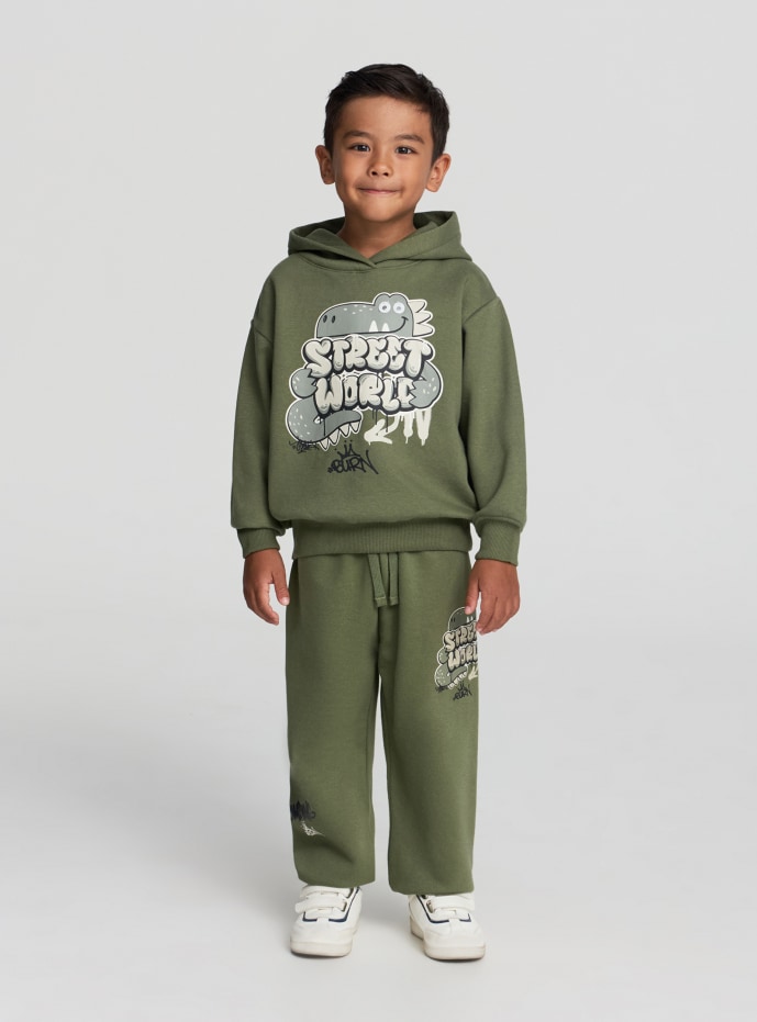 Dětská teplá mikina s kapucí, ideální pro ležérní a módní vzhled. Na přední straně má poutavý grafický potisk ve stylu graffiti, který skvěle dodá každodenním outfitům originální nádech. Pohodlný střih a design s kapucí ji činí vhodnou pro chladnější dny nebo venkovní aktivity. Snadno se kombinuje s džíny nebo sportovními kalhotami pro všestranný a praktický vzhled.