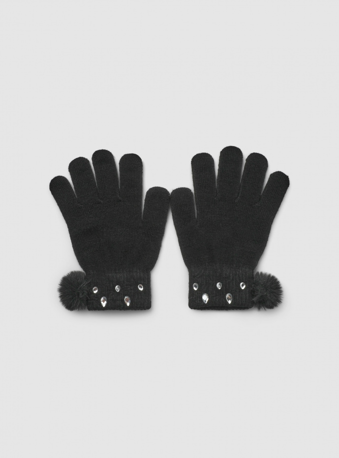 Dívčí rukavice ideální pro ochranu rukou před chladem se stylem. Mají design s dekorativními bambulkami a třpytivými aplikacemi na manžetě, které dodávají nádech elegance. Perfektní pro doplnění zimních neformálních outfitů nebo pro zvláštní příležitosti. Pohodlný střih a měkký materiál zaručují komfort při nošení.