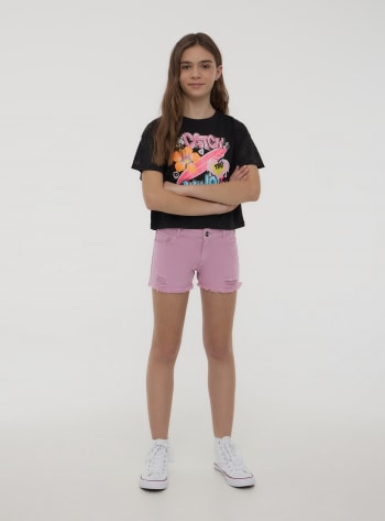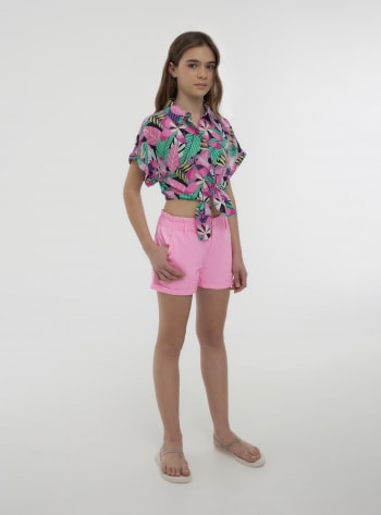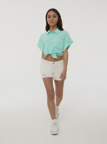 Dívčí šortky ideální na volný čas a letní dny. Design paperbag dodává moderní styl, obohacený o praktické zapínání na zip a knoflík. Přední a zadní kapsy zvyšují funkčnost, zatímco jednobarevný vzhled je činí univerzálními pro jakékoli kombinace.
