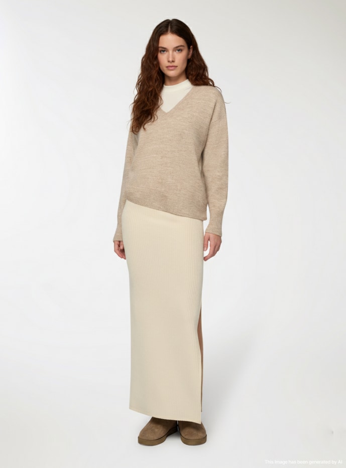 Dámský svetr s výstřihem do V a volným střihem. Ideální pro ležérní a všestranný vzhled, skvěle se hodí k džínům nebo kalhotám pro pohodlný a módní outfit. Dlouhé rukávy a jednoduchý design ji činí vhodnou pro různé příležitosti, od volného času po pracovní dny v kanceláři. Perfektní pro ty, kdo hledají praktický a stylový kousek.