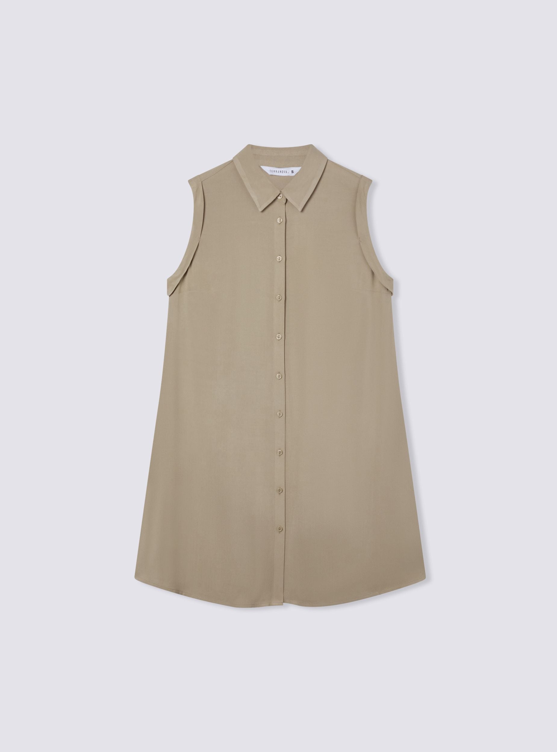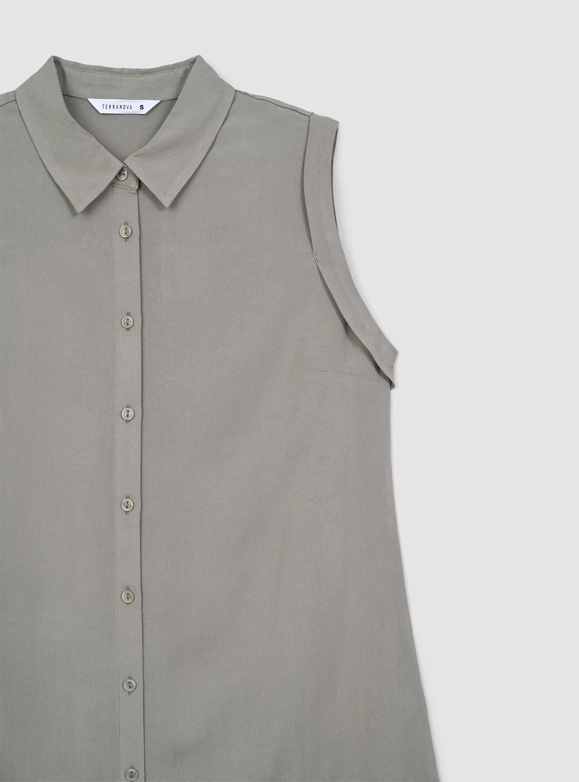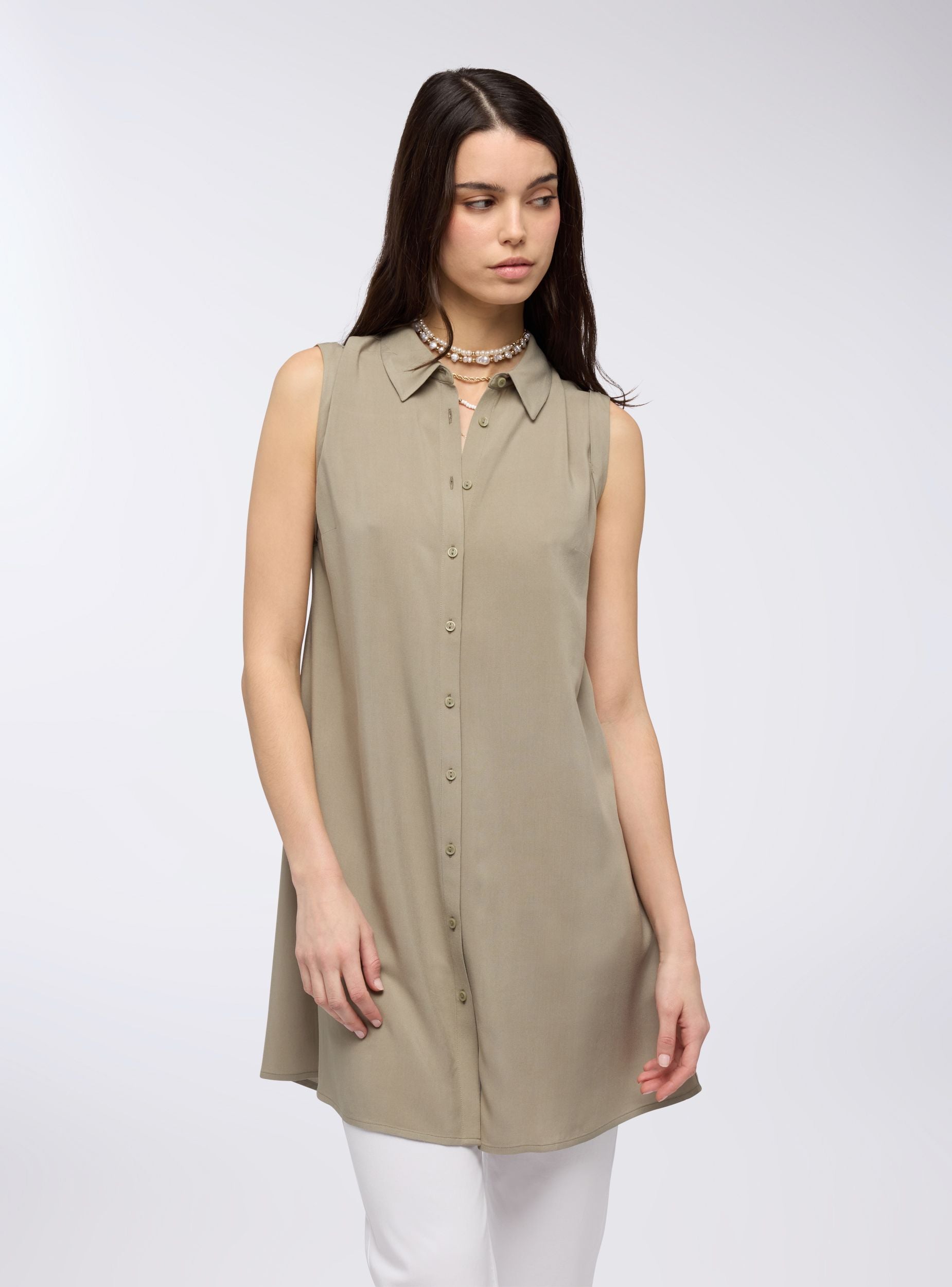 Ärmelloses Maxi-Hemd in Uni-Farbe - Kaki