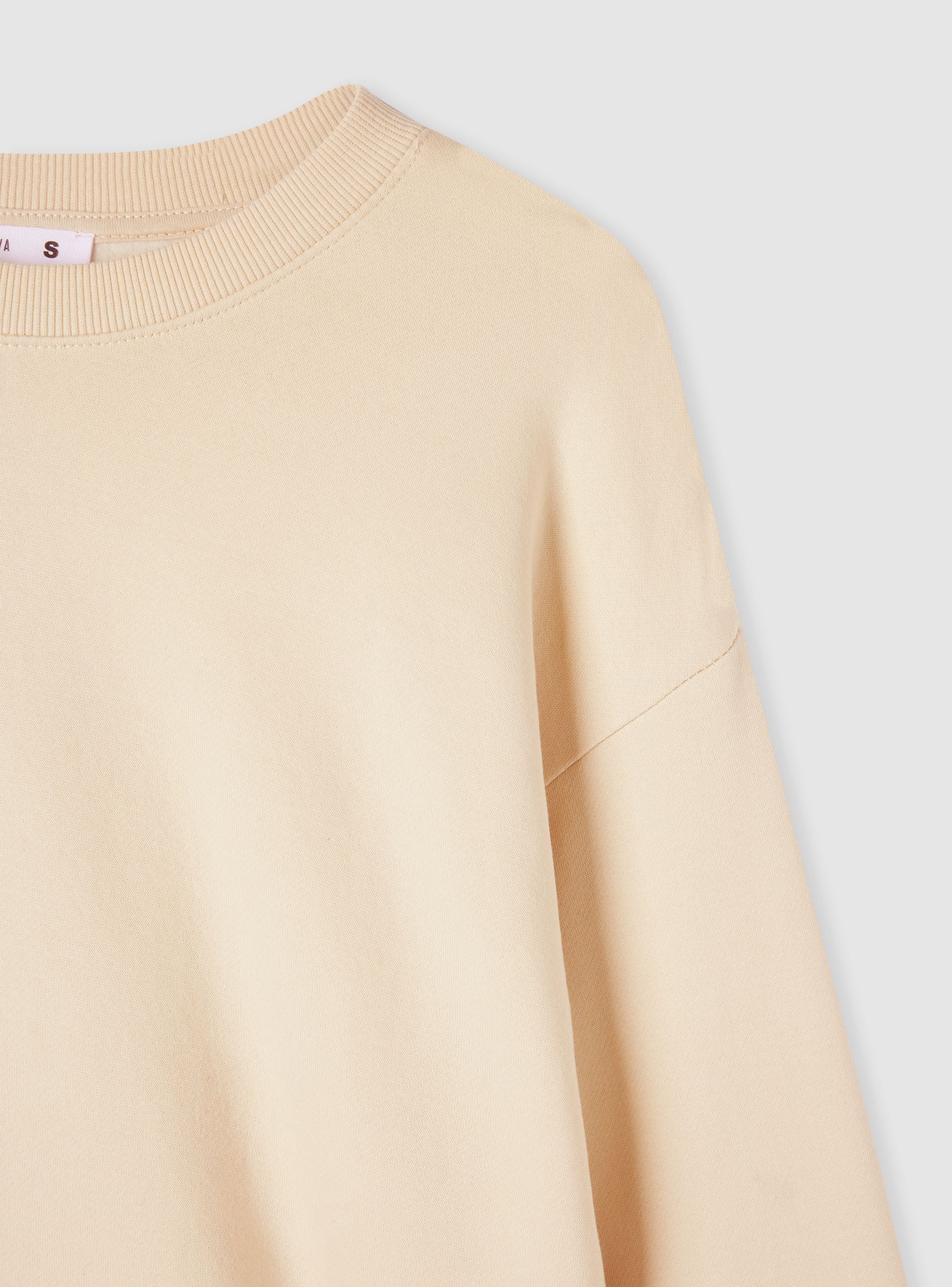 Damen Sweatshirt aus schwerem Material, perfekt für die kälteren Tage. Einfarbiges Modell ohne Kapuze und ohne Reißverschluss, mit langen Ärmeln und Rippabschlüssen an Kragen, Ärmeln und Saum. Ein Basic- und vielseitiges Kleidungsstück, ideal für die Freizeit oder für einen lässigen und bequemen Look.Details