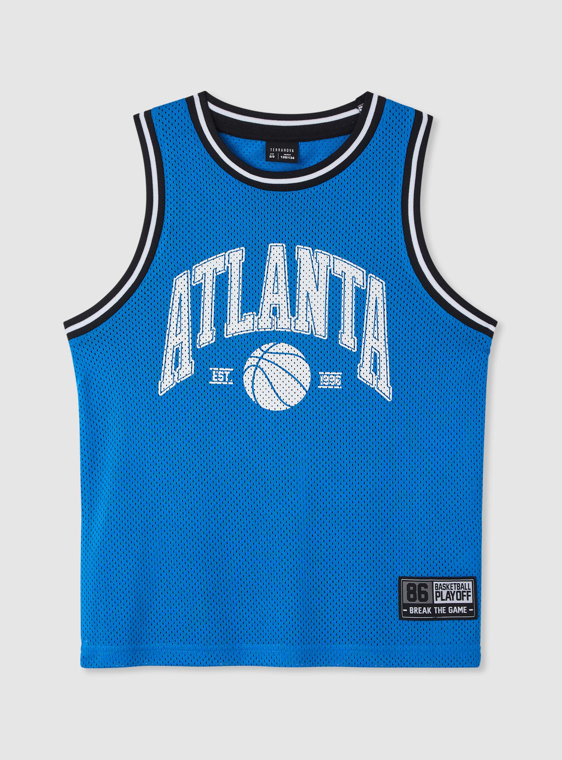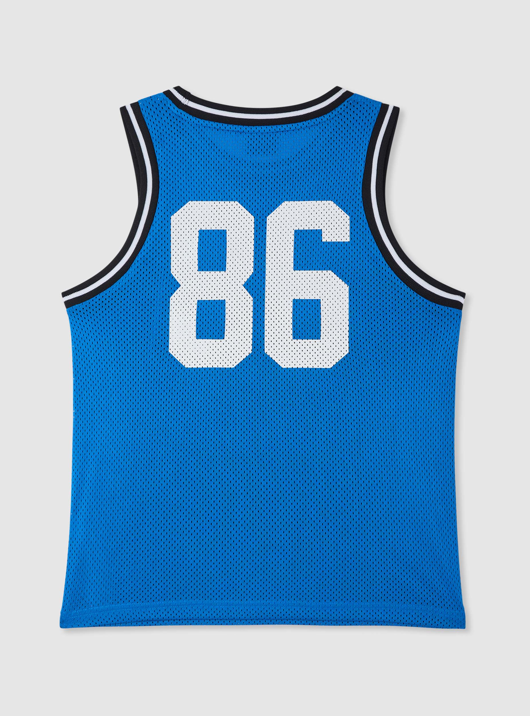 Kinder-Basketball-Top, perfekt für Sport und Freizeit. Ärmelloses Modell mit rundem Ausschnitt und gestreiften Einfassungen, entworfen für eine bequeme Passform. Der Aufdruck mit Schriftzug und Ball auf der Vorderseite sowie die Nummer auf der Rückseite verleihen einen Streetstyle-Touch, der sich leicht mit Shorts, Jeans oder Jogginghosen kombinieren lässt. Aufgenähter Patch am Saum.Details