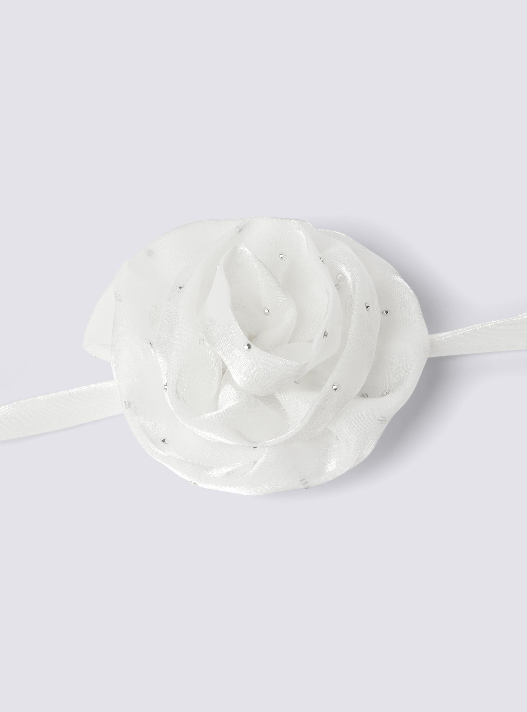 Halskette Choker für Damen mit elegantem und originellem Design, perfekt um jedem Look eine markante Note zu verleihen. Das Modell ist mit einer raffinierten Blume verziert, die mit Strass geschmückt ist und dem Accessoire Glanz und Charakter verleiht. Die weichen und verstellbaren Bänder sorgen für einen bequemen und anpassbaren Sitz, der sich perfekt am Hals anpasst. Ideal für Liebhaber romantischer und anspruchsvoller Details, ist dieser Choker der perfekte Begleiter, um elegante Outfits zu vervollständigen oder einem lässigen Look einen glamourösen Twist zu verleihen.Details