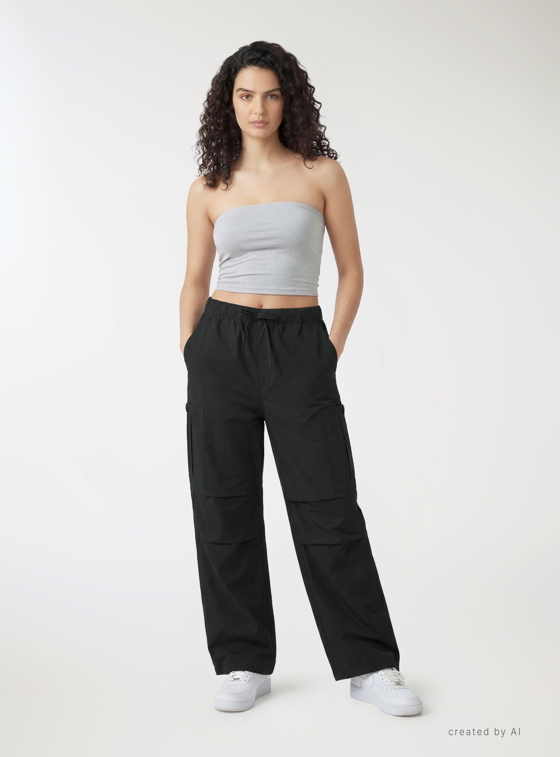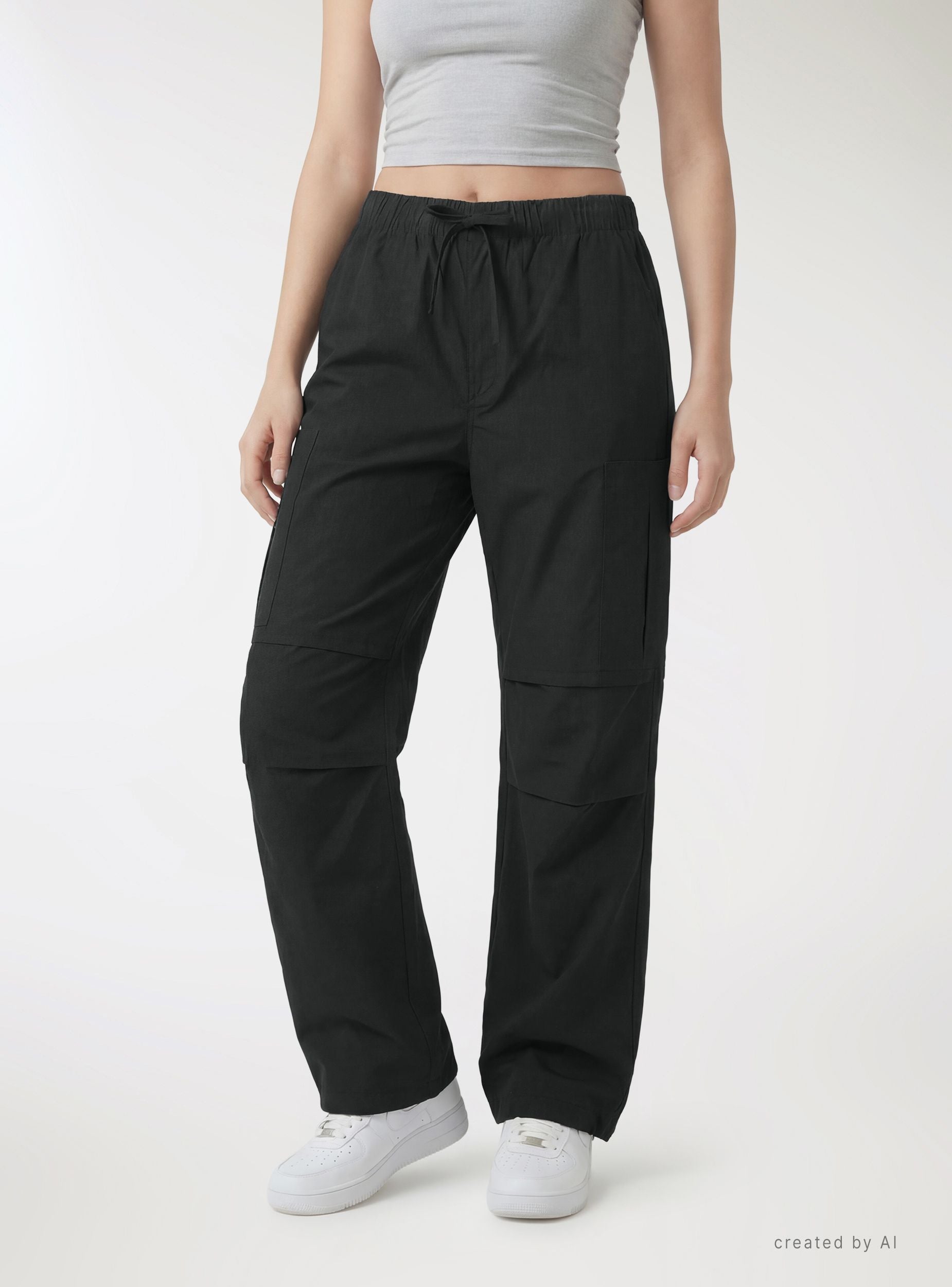 Lange Damen-Cargohosen in Uni-Farbe, perfekt für einen urbanen Look und die Freizeit. Der elastische Bund mit Kordelzug bietet Komfort und eine verstellbare Passform. Design mit aufgesetzten Seitentaschen und einer Gesäßtasche, weiter Beinverlauf und geradem Saum für einfache Kombinationen mit Sneakers, Sandalen oder engen Oberteilen an Tagen in der Stadt oder auf Reisen.Details